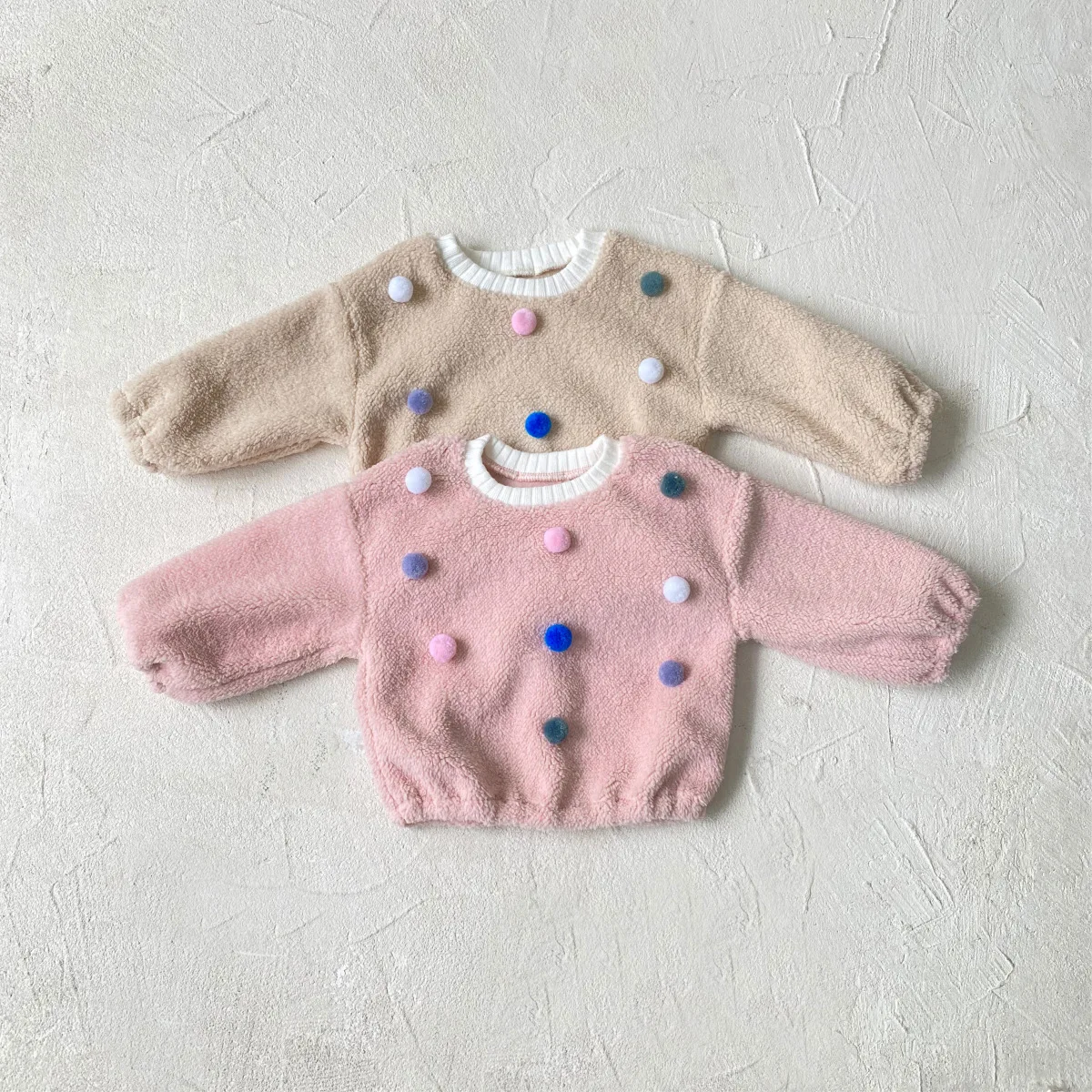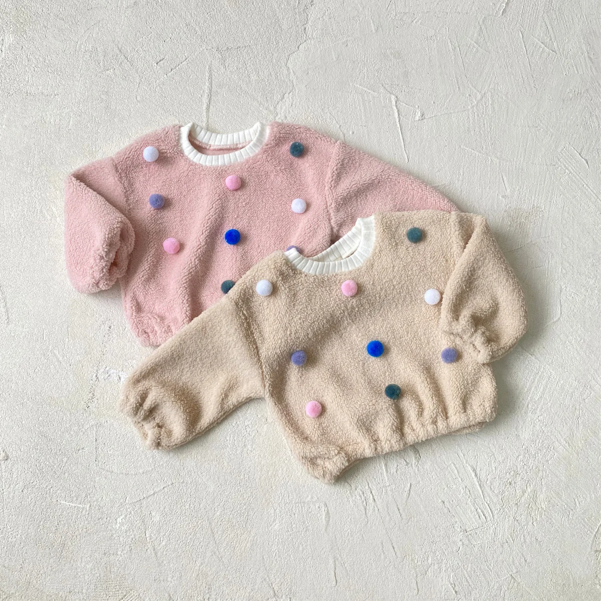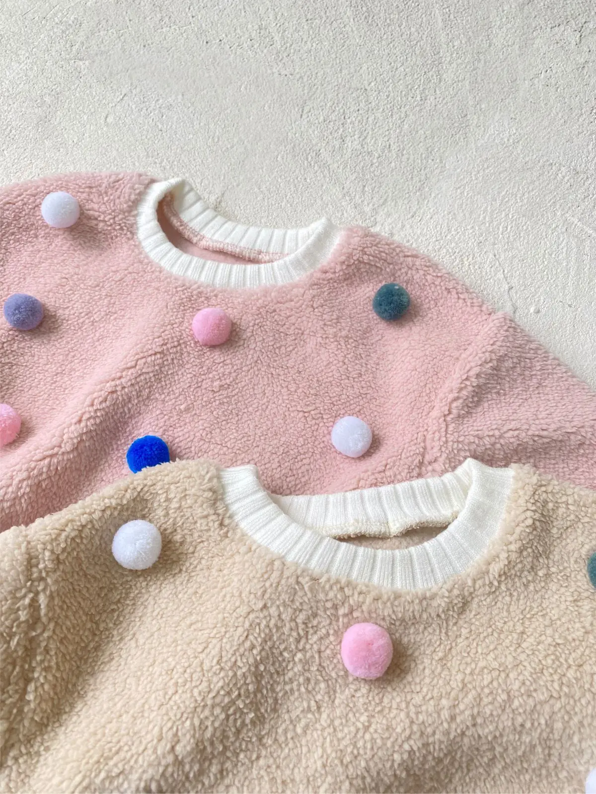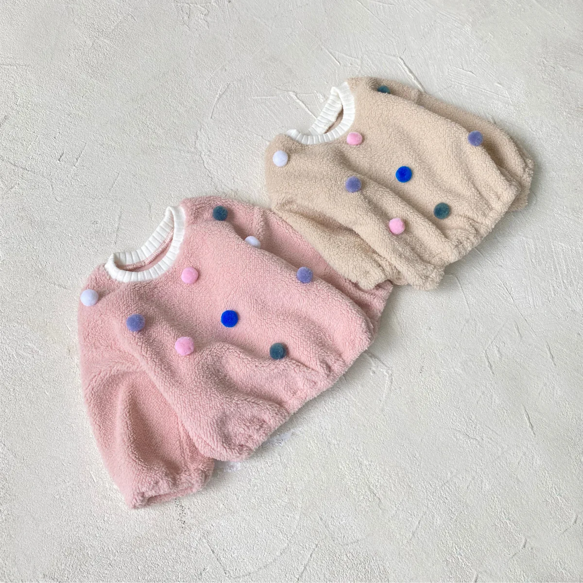 #ベビー服 #ボアフリース #カラフルぽんぽん #水玉模様 #冬用トップス #韓国子供服 #長袖プルオーバー
