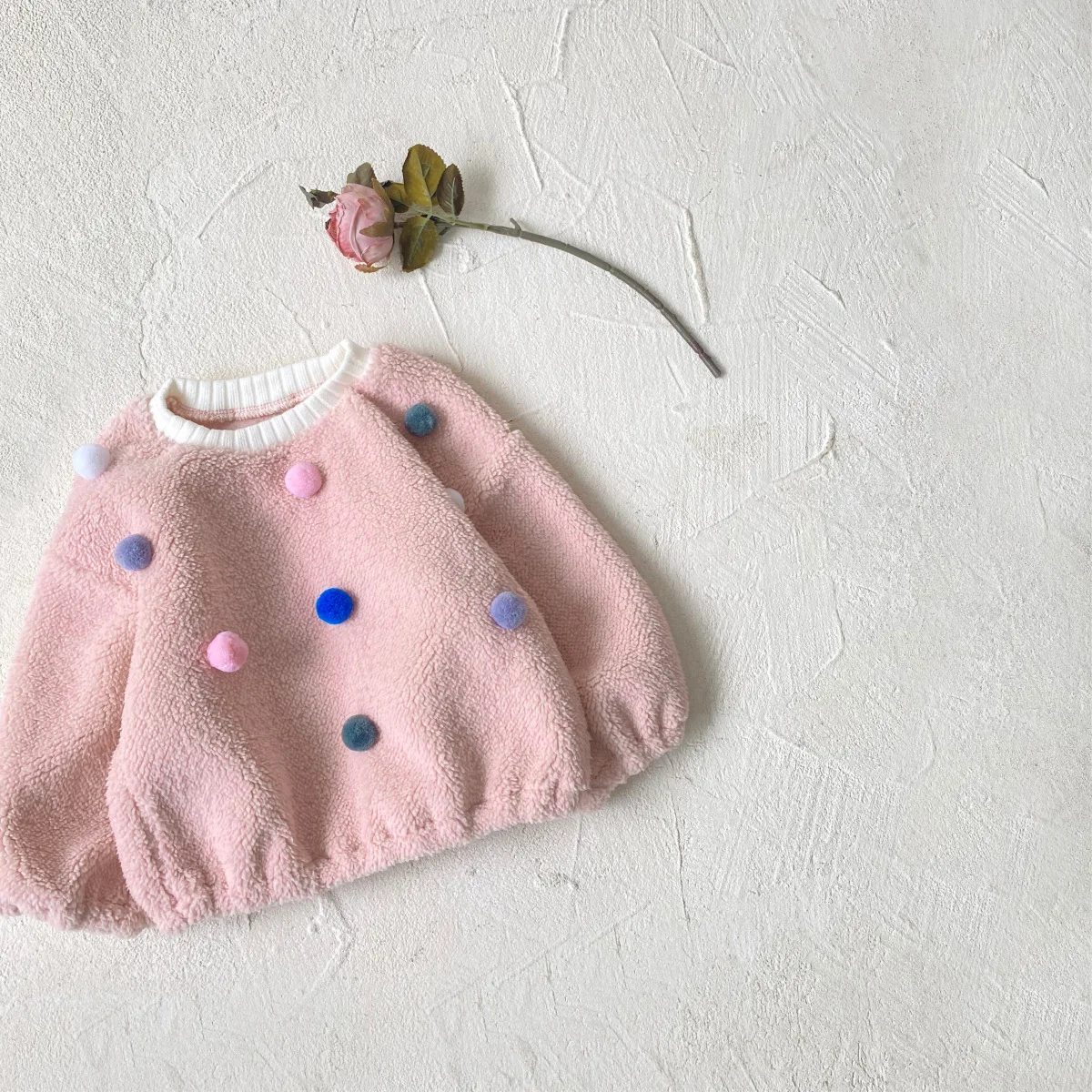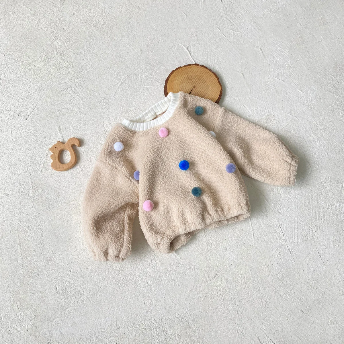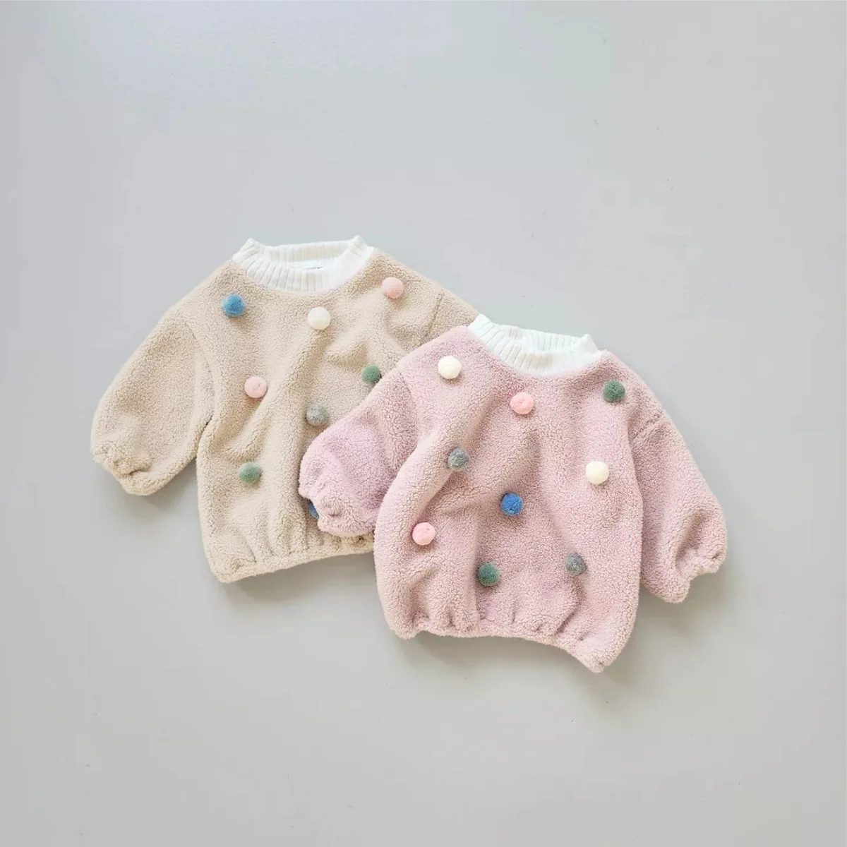 #ベビー服 #ボアフリース #カラフルぽんぽん #水玉模様 #冬用トップス #韓国子供服 #長袖プルオーバー