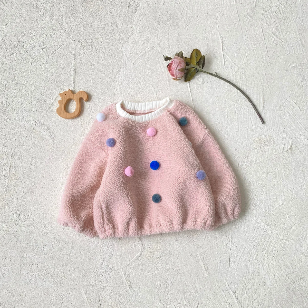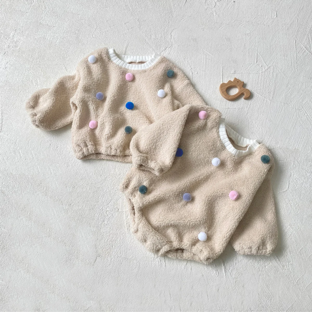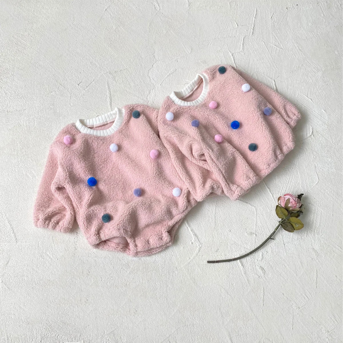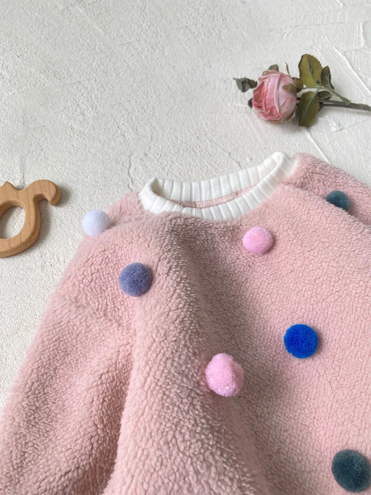 #ベビー服 #ボアフリース #カラフルぽんぽん #水玉模様 #冬用トップス #韓国子供服 #長袖プルオーバー