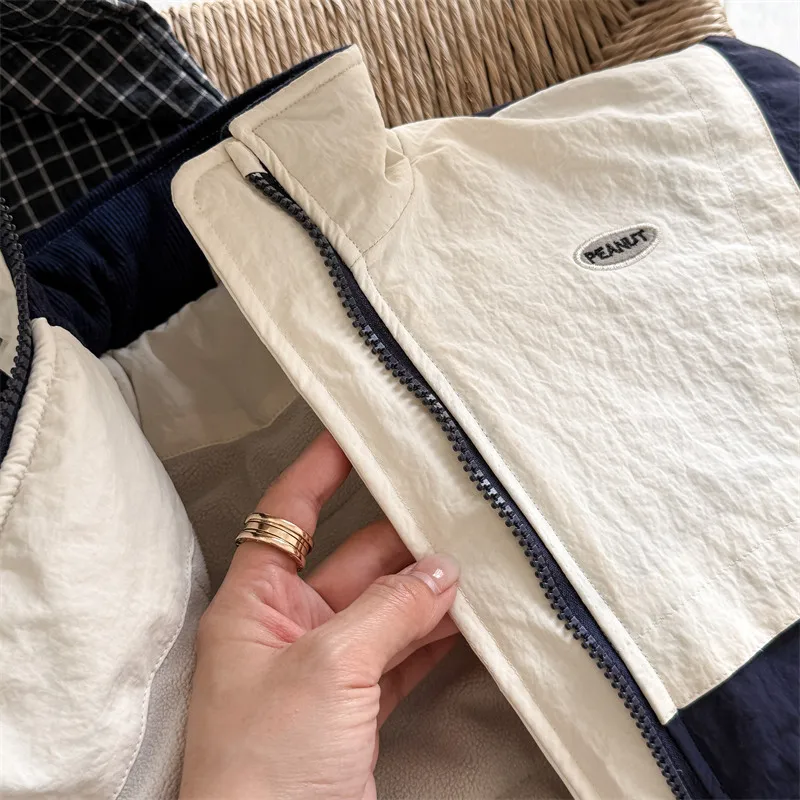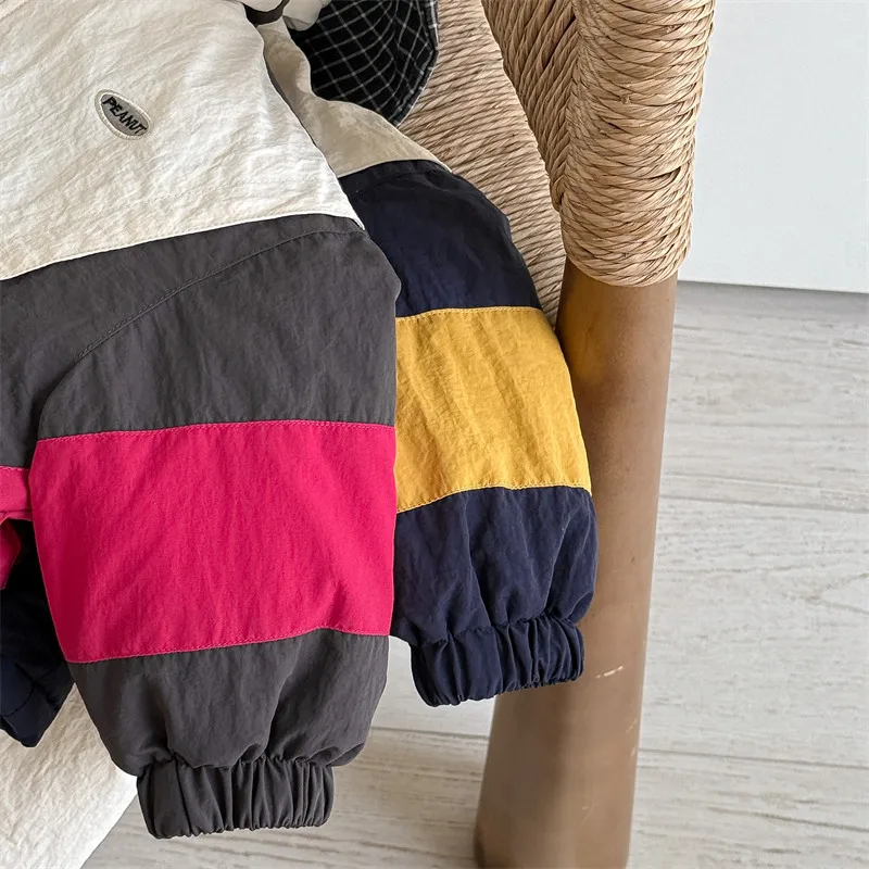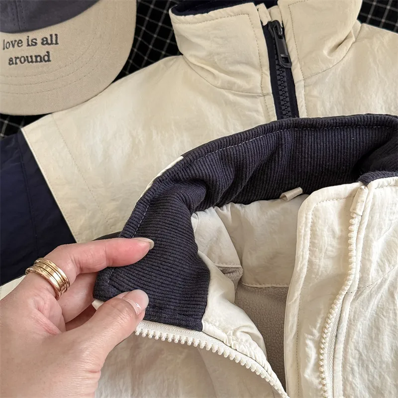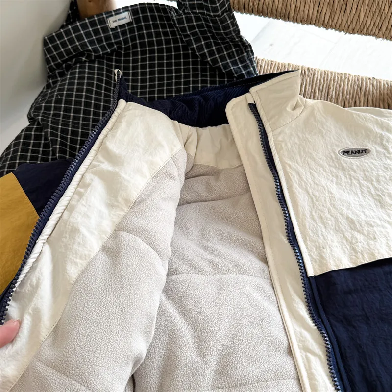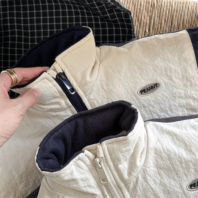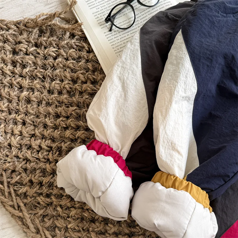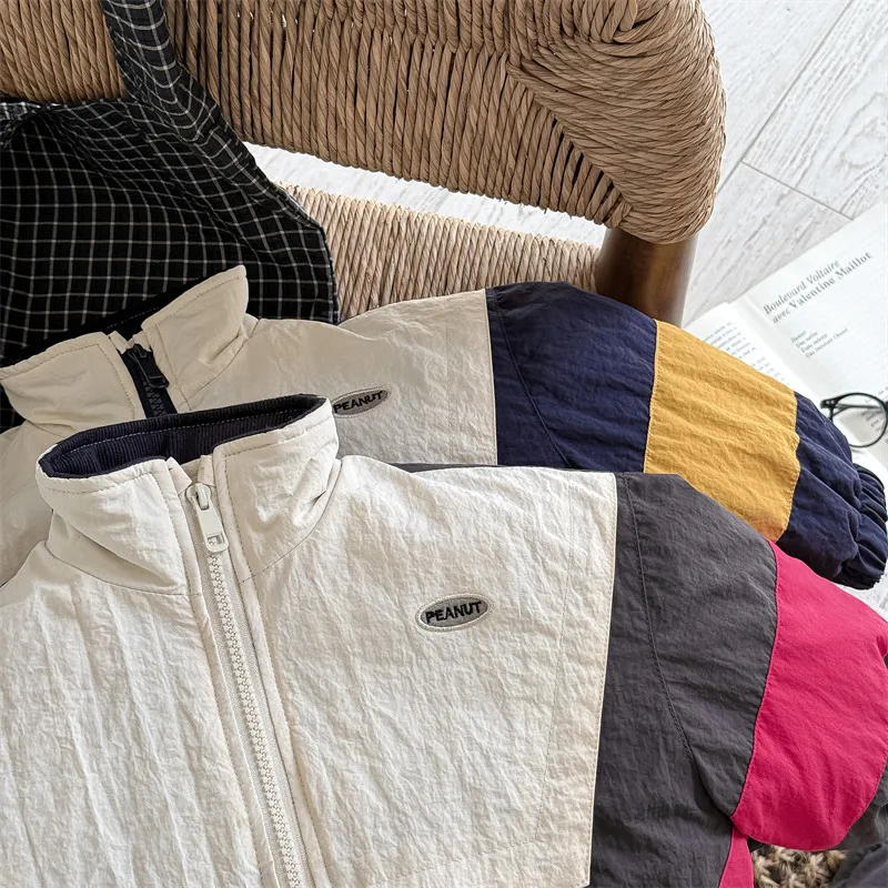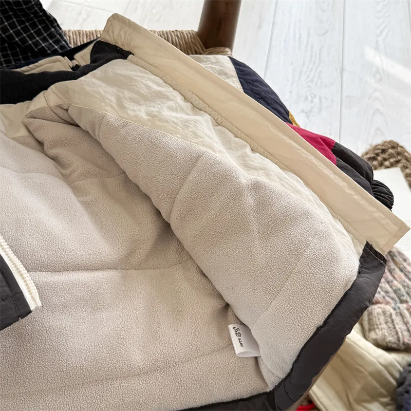 パッチワークデザインのパデッドスタンドカラージップアップジャケットとスポーツロングパンツの2点セットは、冬の寒さからお子様をしっかり守るスタイリッシュなアイテムです。ジャケットは厚手の裏フリース素材を使用し、保温性が高く、快適な着心地を実現しています。ジップアップデザインにより、着脱も簡単で、重ね着にも最適です。ロングパンツは動きやすく、アクティブなお子様にぴったりなスタイルです。このセットはデイリーから特別な日まで幅広く対応し、暖かさとおしゃれを両立させたコーディネートを楽しめる一着です。