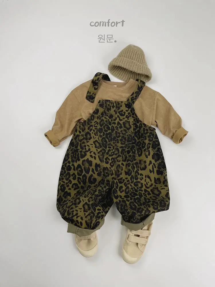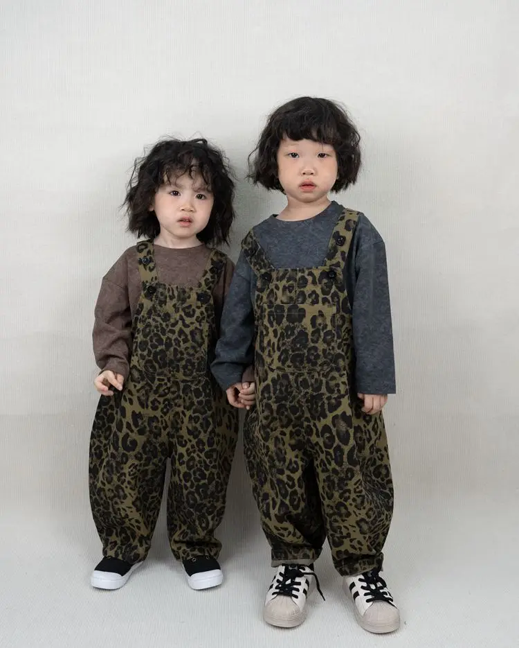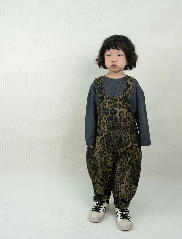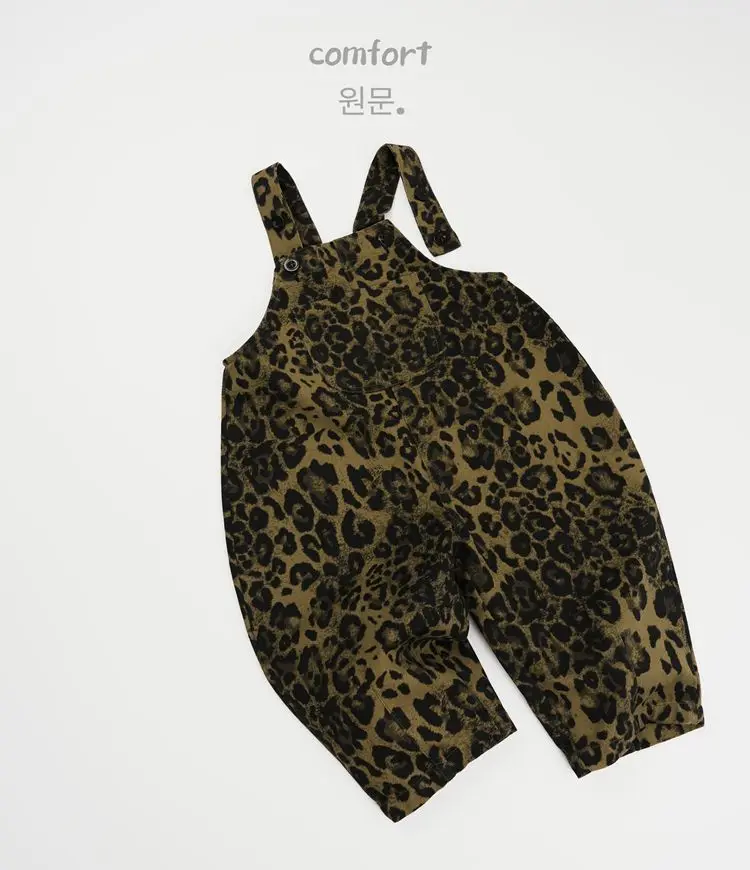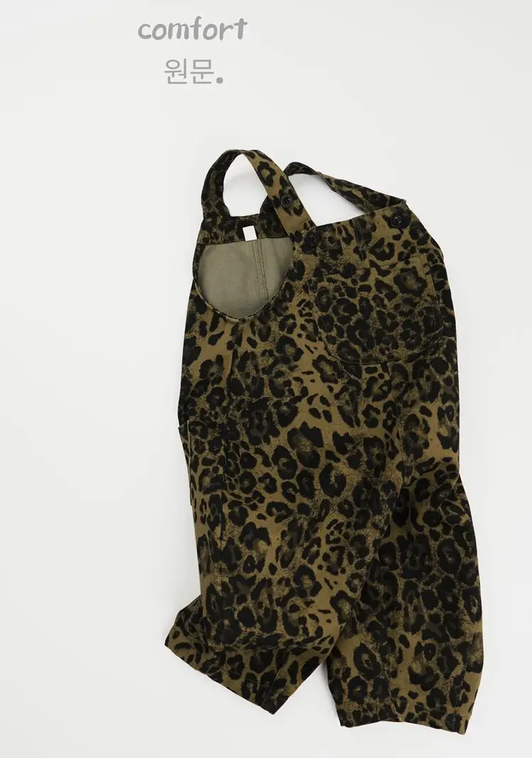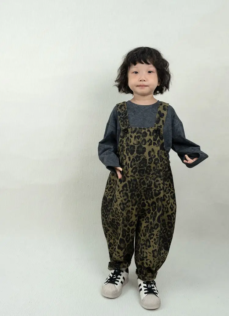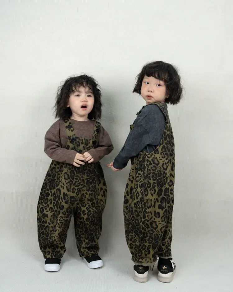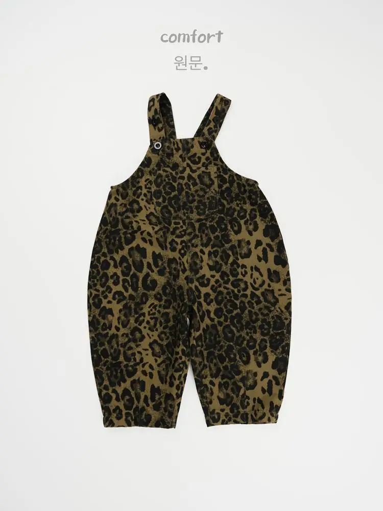 キッズオーバーオール レオパードヒョウ柄プリントサスペンダーサロペットパンツ【mh0008529】