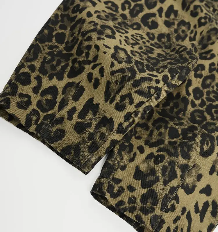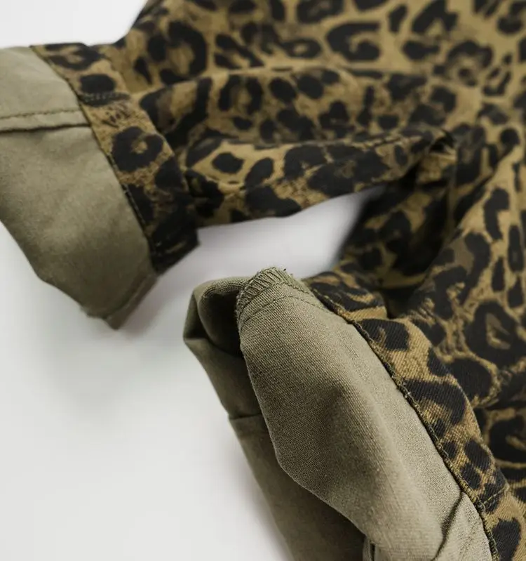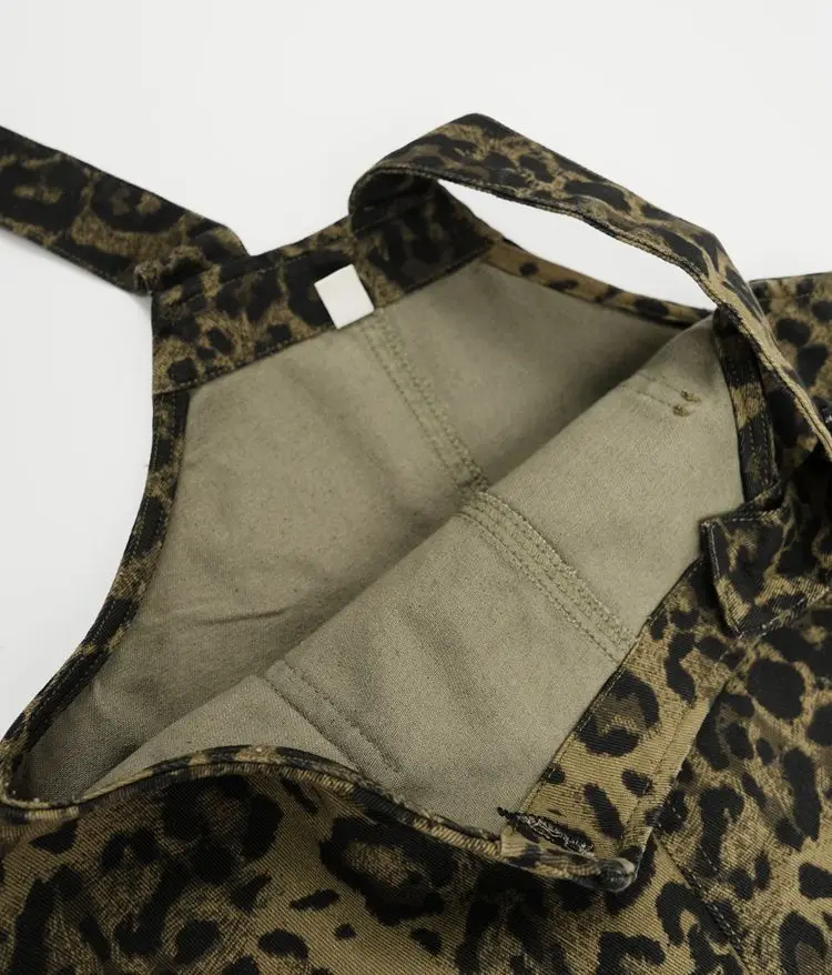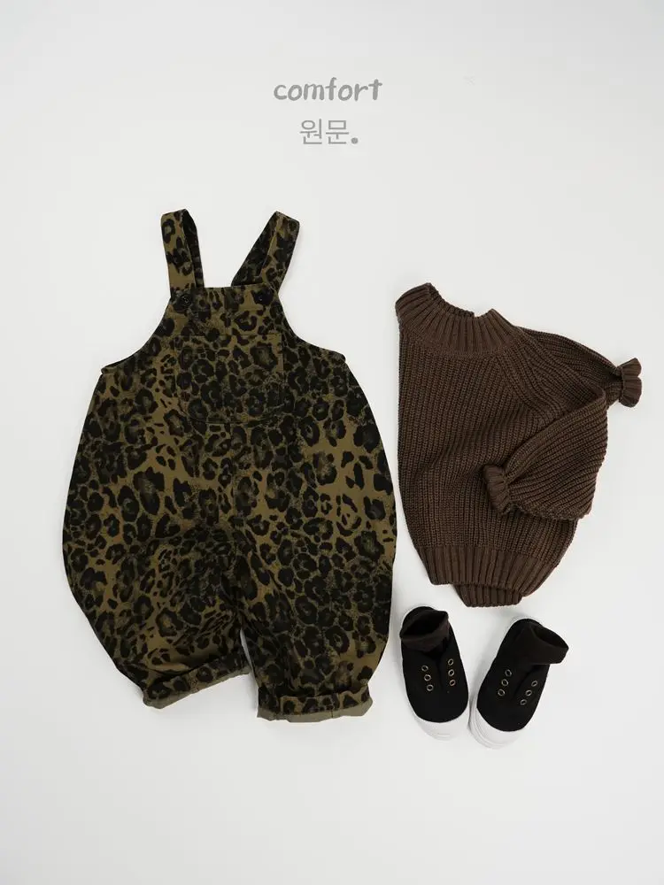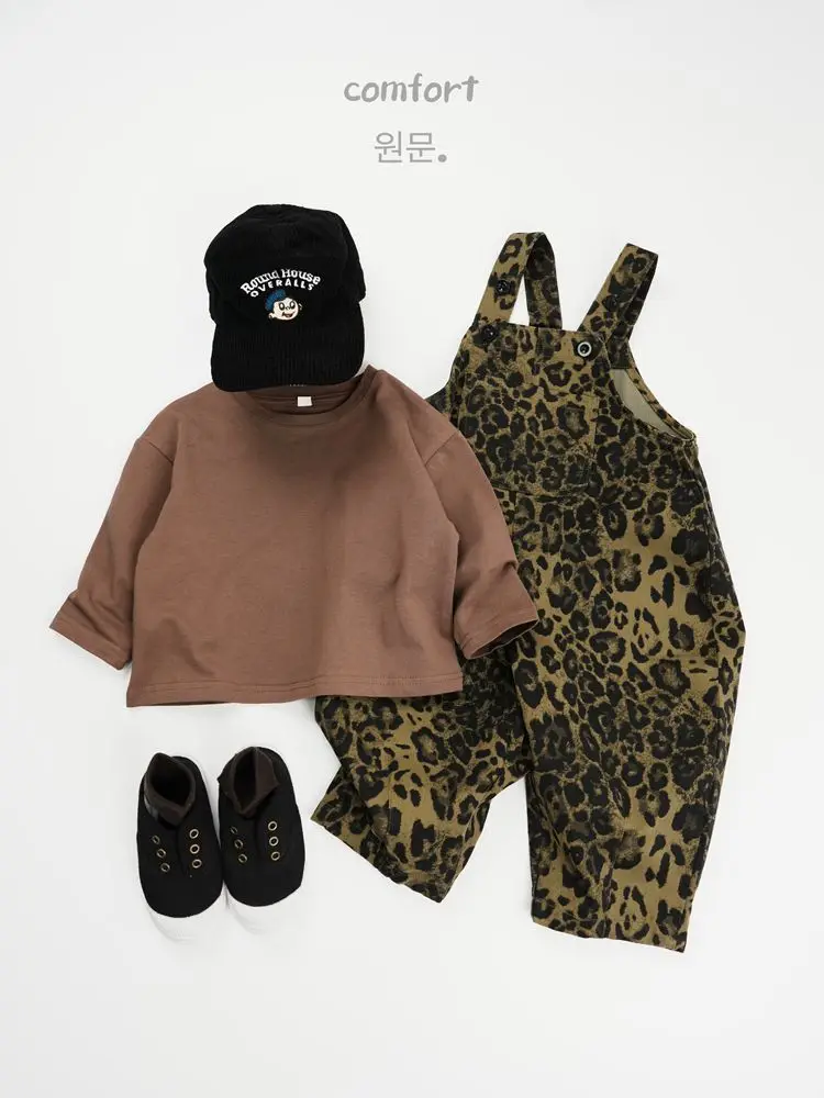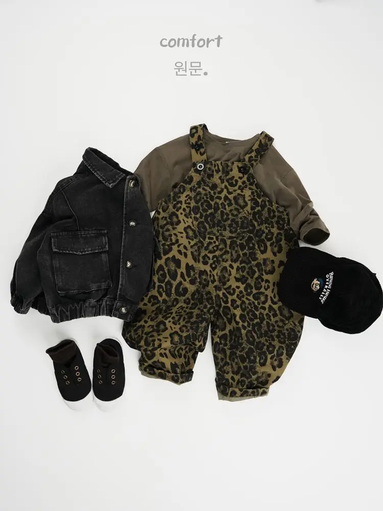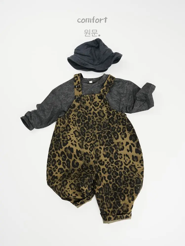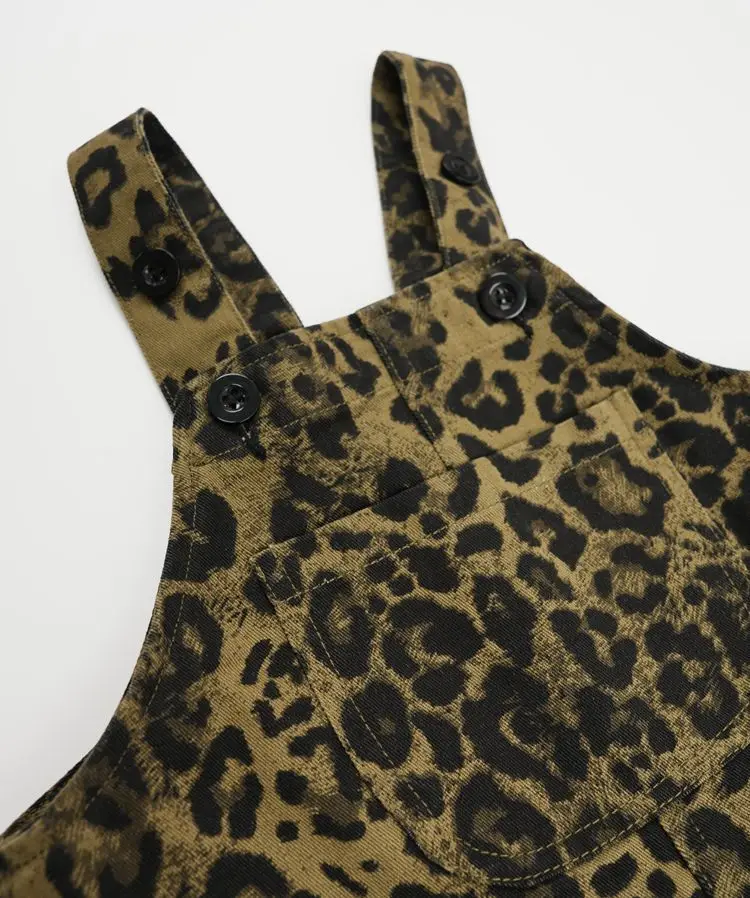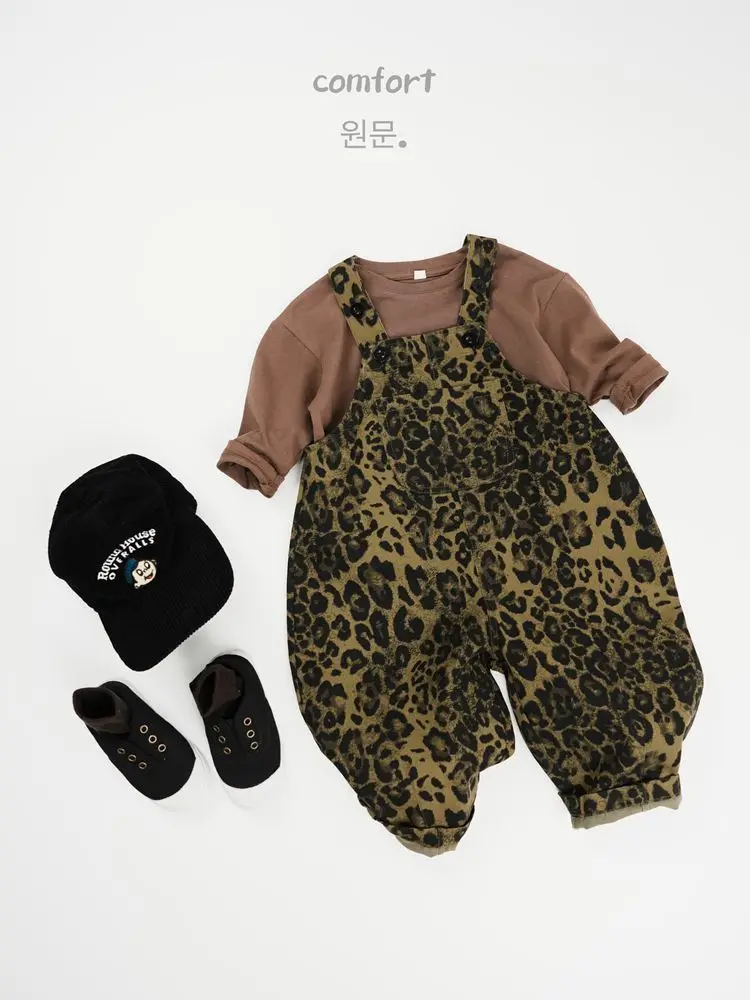 キッズオーバーオール レオパードヒョウ柄プリントサスペンダーサロペットパンツ【mh0008529】