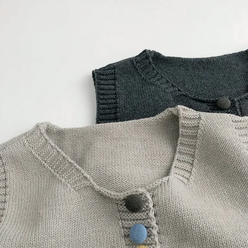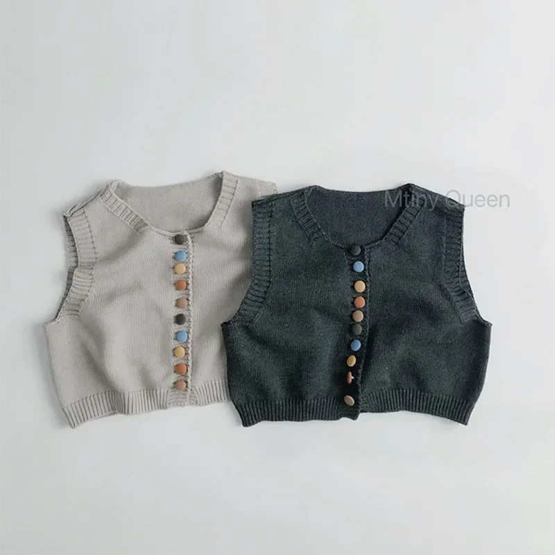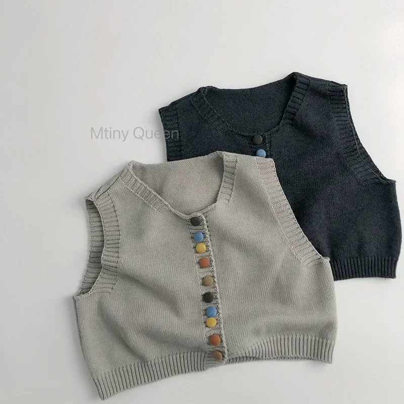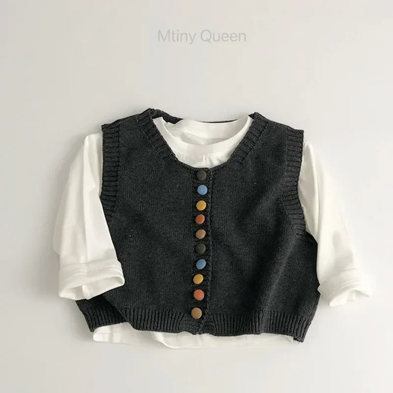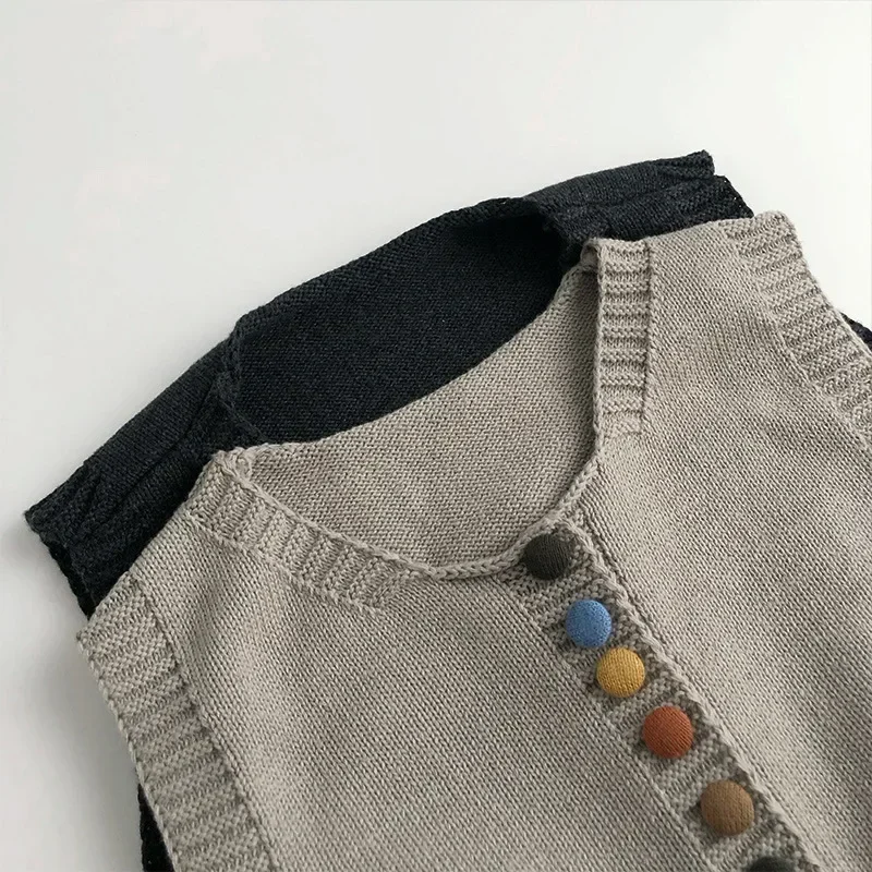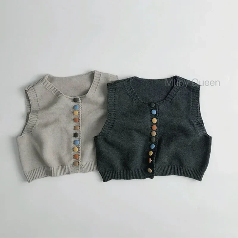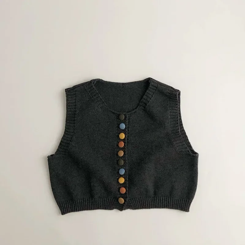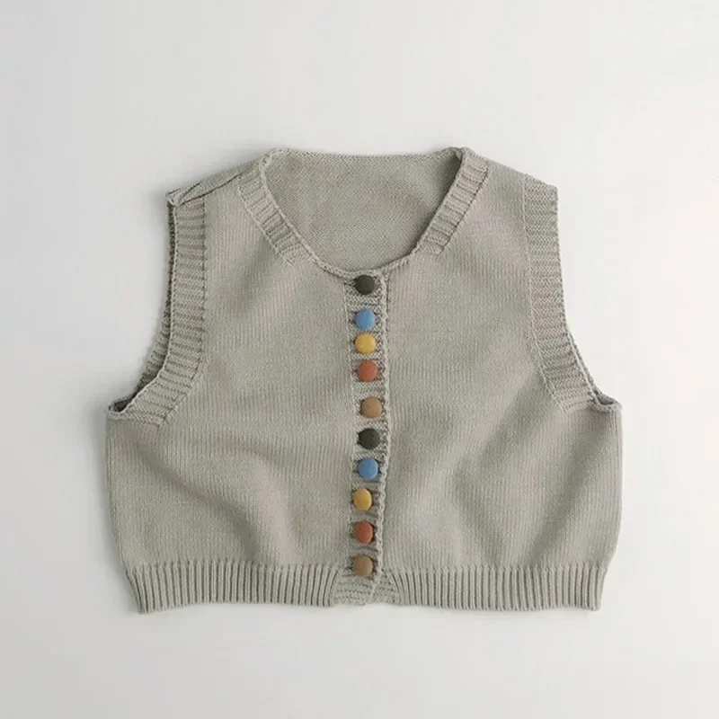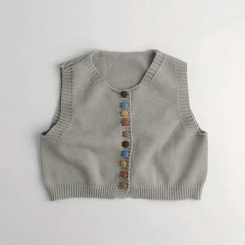 #キッズベスト #ニットジレ #カラフルボタン #カジュアルスタイル #コットン素材 #子供服