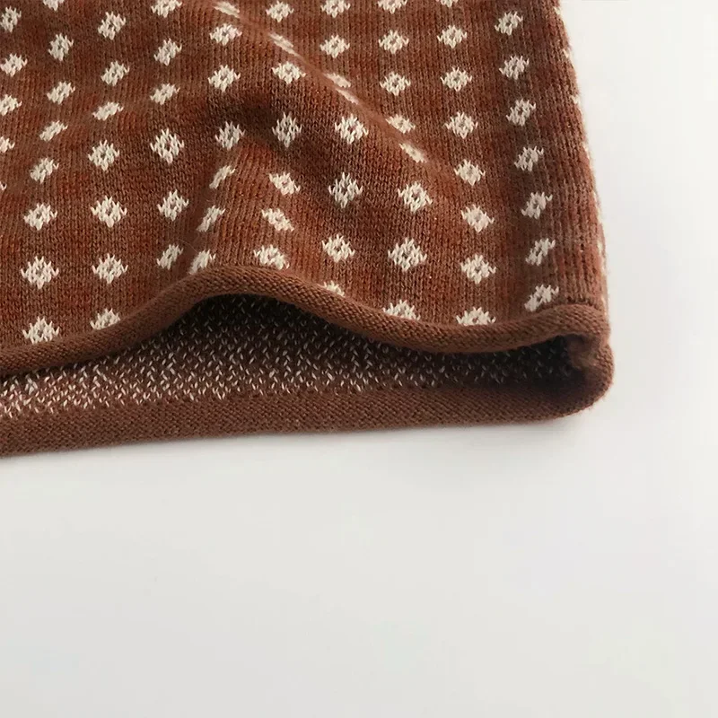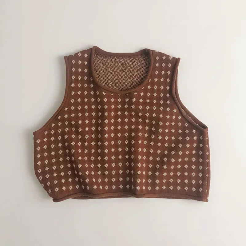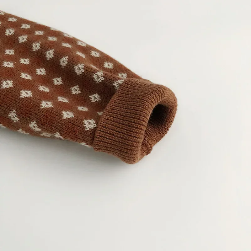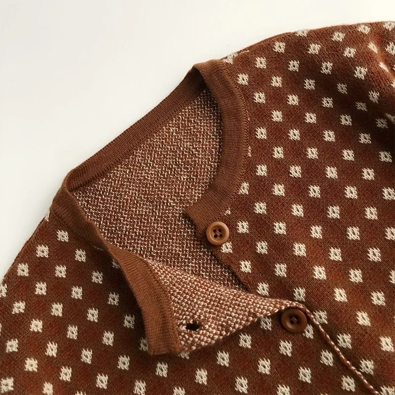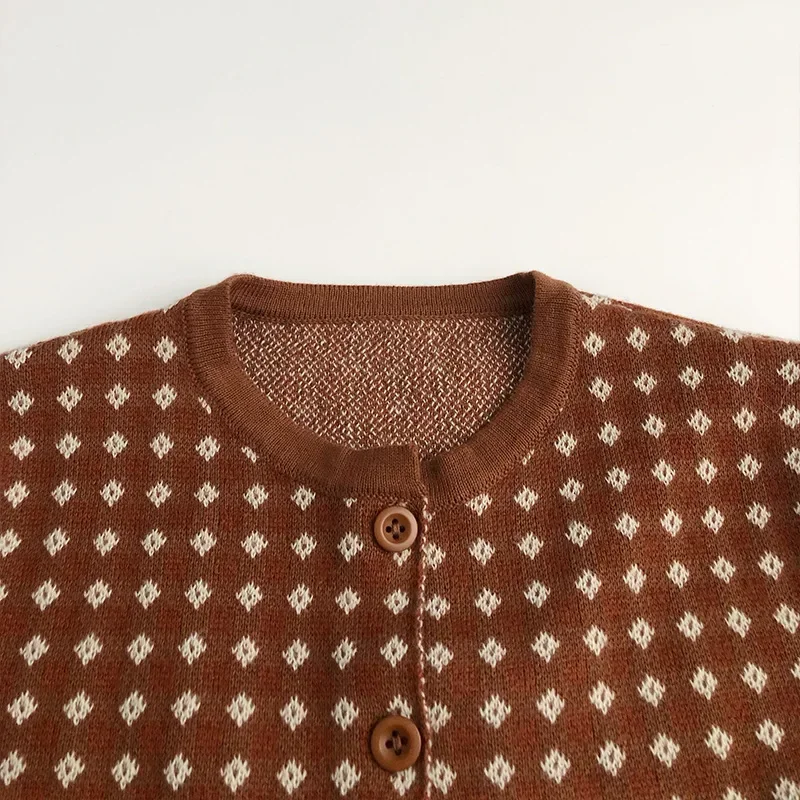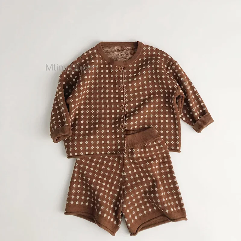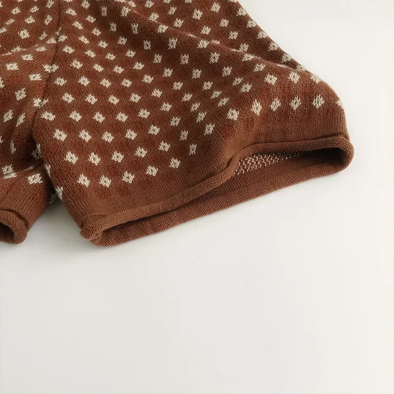 チェック柄のニットセットアップです。レトロデザインのベストに、柔らかなニットジャケット、そしてニットショーツの3点セットのコーディネートで、おしゃれで快適なスタイルを演出します。特に、個性的なチェック柄が目を引き、シーズンを問わず活躍できるアイテムです。コーディネートに迷うことなく、簡単におしゃれを楽しむことができます。柔らかな素材を使用しているため、お子様の肌にも優しく、リラックスした着心地が魅力。普段使いや特別なお出かけにぴったりの一着です。