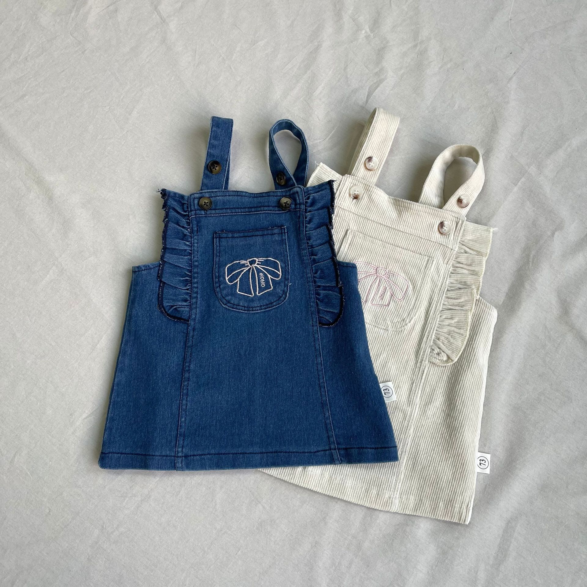 #ベビースカート #ジャンパースカート #リボン刺繍 #サスペンダー #調節可能 #可愛い #カジュアルコーデ #重ね着