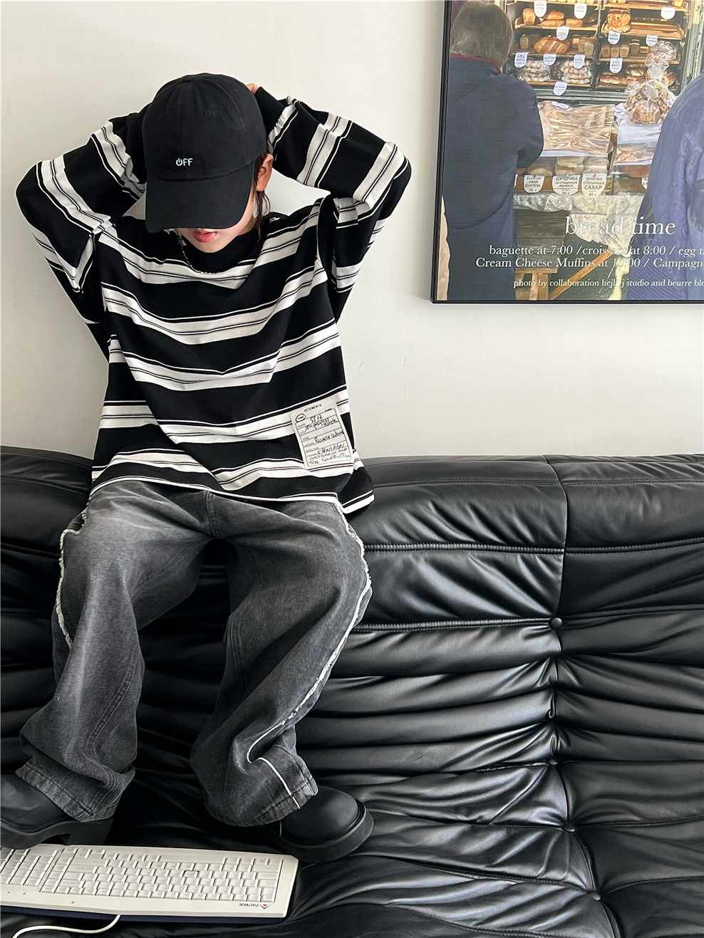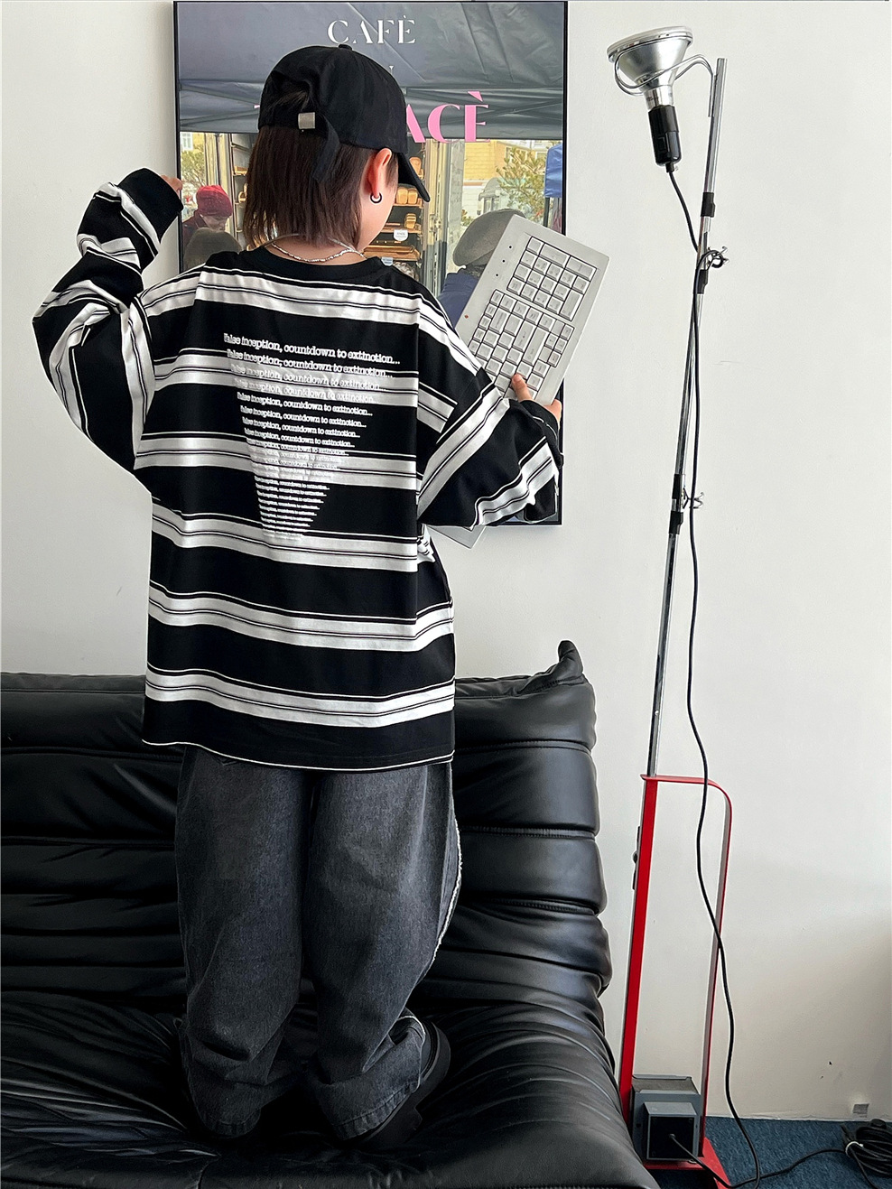 クラシックなボーダーデザインが魅力のキッズ長袖Tシャツです。シンプルながらも存在感のあるデザインで、カジュアルなコーディネートにぴったり。柔らかな素材を使用しており、動きやすく快適な着心地を提供します。デニムやスカート、ワイドパンツなど幅広いアイテムと相性が良く、季節を問わず活躍する万能トップスです。シンプルながらもおしゃれな一枚で、デイリーコーデに取り入れやすいアイテムです。
