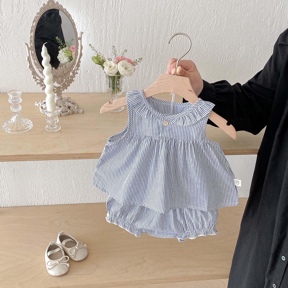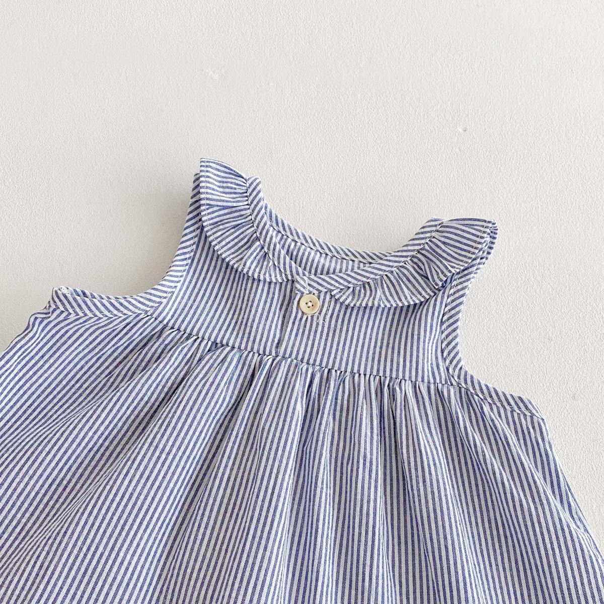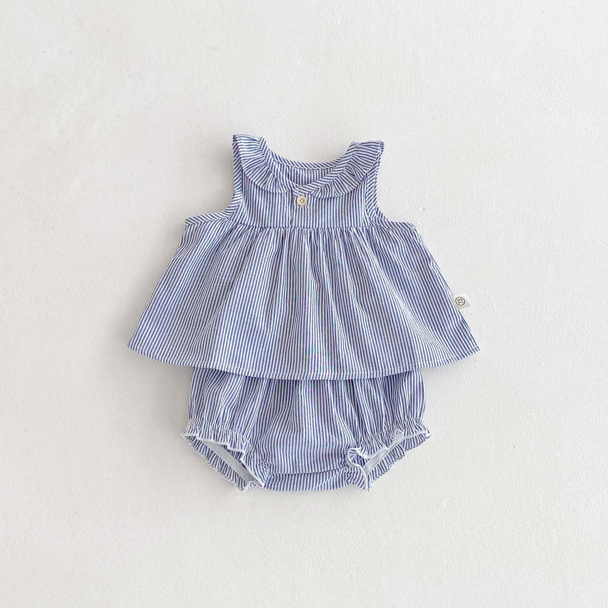 #ベビー服 #女の子ベビー #ノースリーブブラウス #ストライプ #丸襟 #ブルマパンツ #フリル #夏物ベビー #ベビーコーデ #セットアップ
