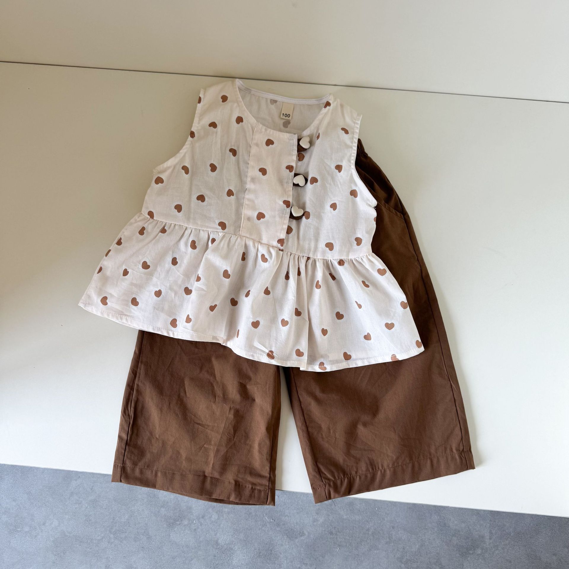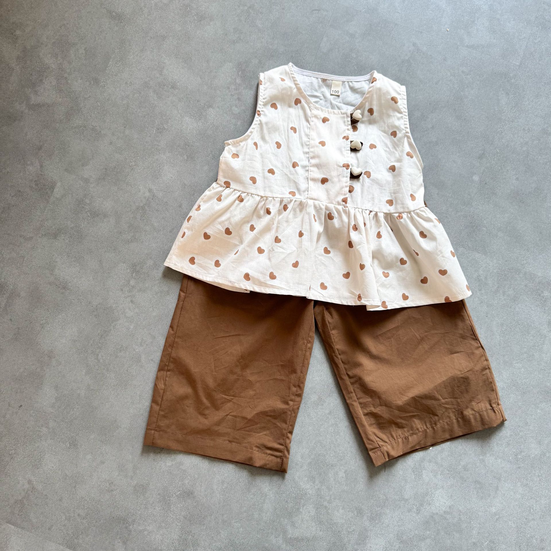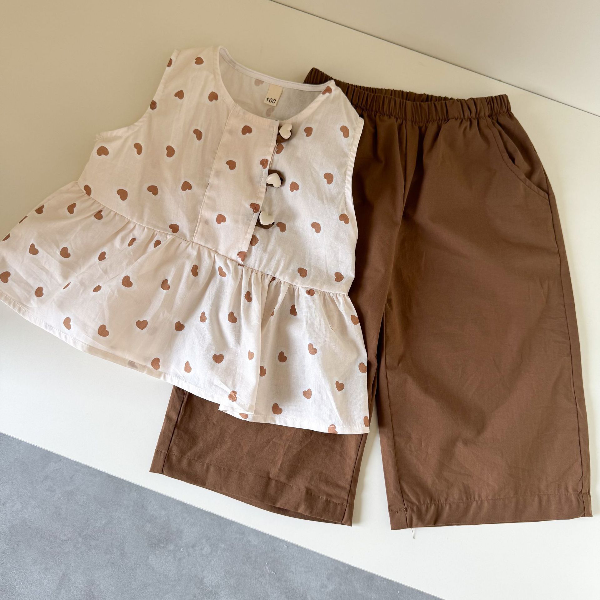 #キッズセットアップ #子供服 #男女兼用 #ハートプリント #半袖シャツ #ノースリーブブラウス #コットンウェア