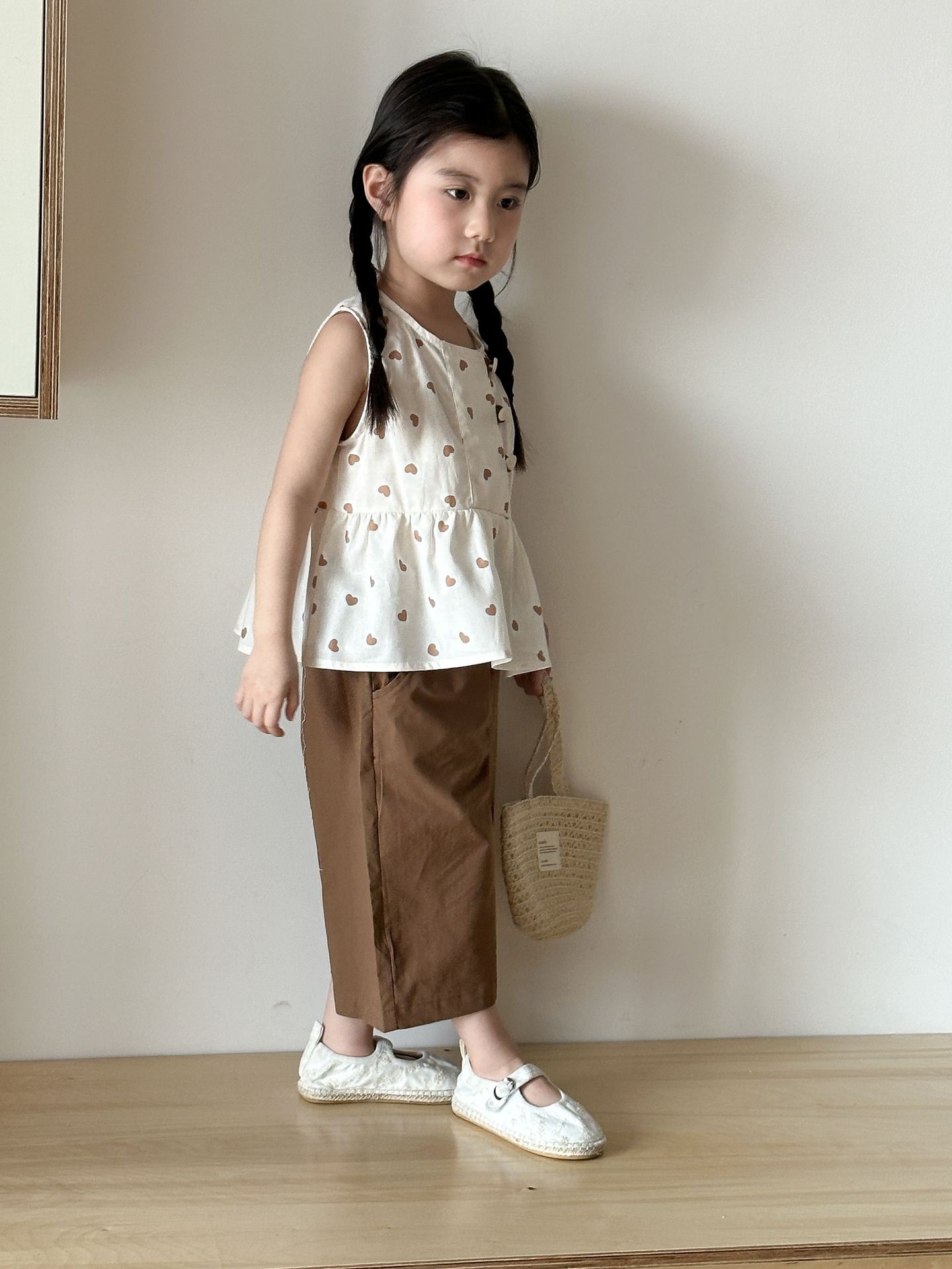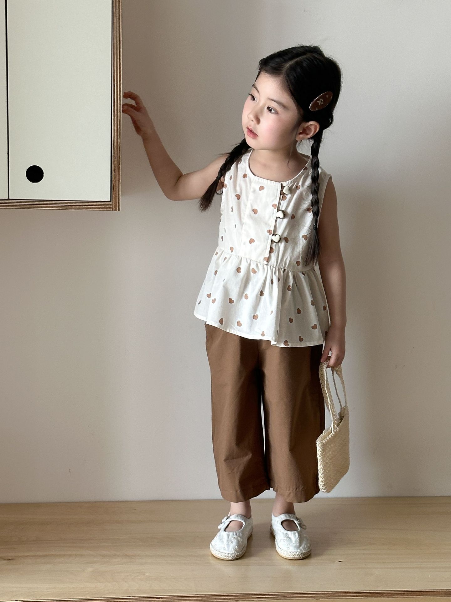 ハートプリントガールズノースリーブブラウス+ロングパンツ/ボーイズ半袖シャツ+ショートパンツ セットアップ 2点セット【mh0009831】