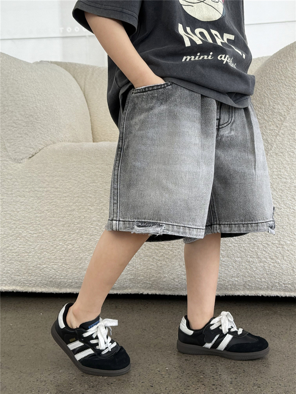 #キッズパンツ #子供服 #デニムパンツ #ハーフパンツ #ダメージデニム #ユニセックス #夏服