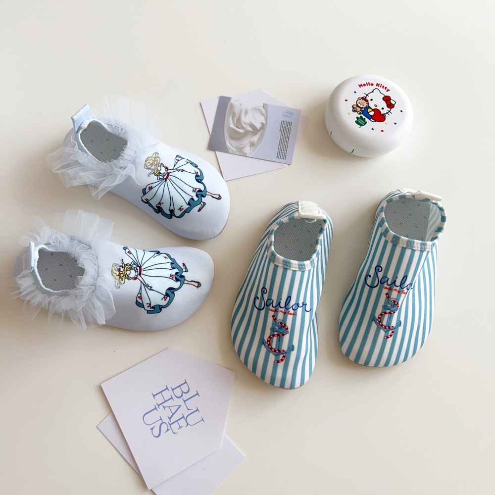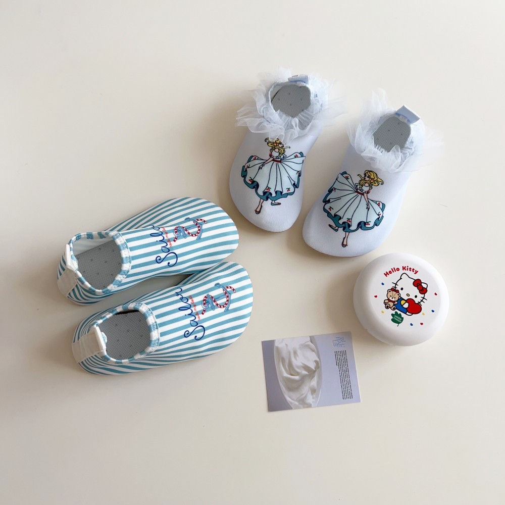 デザインは、爽やかなストライプ柄と、可愛らしいガールプリントの2種類をご用意。男の子にも女の子にもお似合いのユニセックスデザインです。水公園での水遊びや、シュノーケリング、川遊び、ビーチでのスイミングなど、あらゆる水辺のアクティビティに大活躍します。まるで靴下を履いているかのような感覚で、お子さんの足元を快適に守ってくれるでしょう。