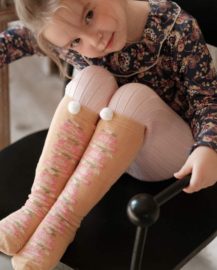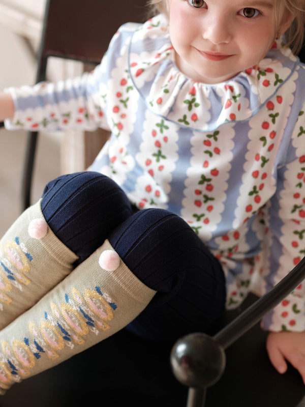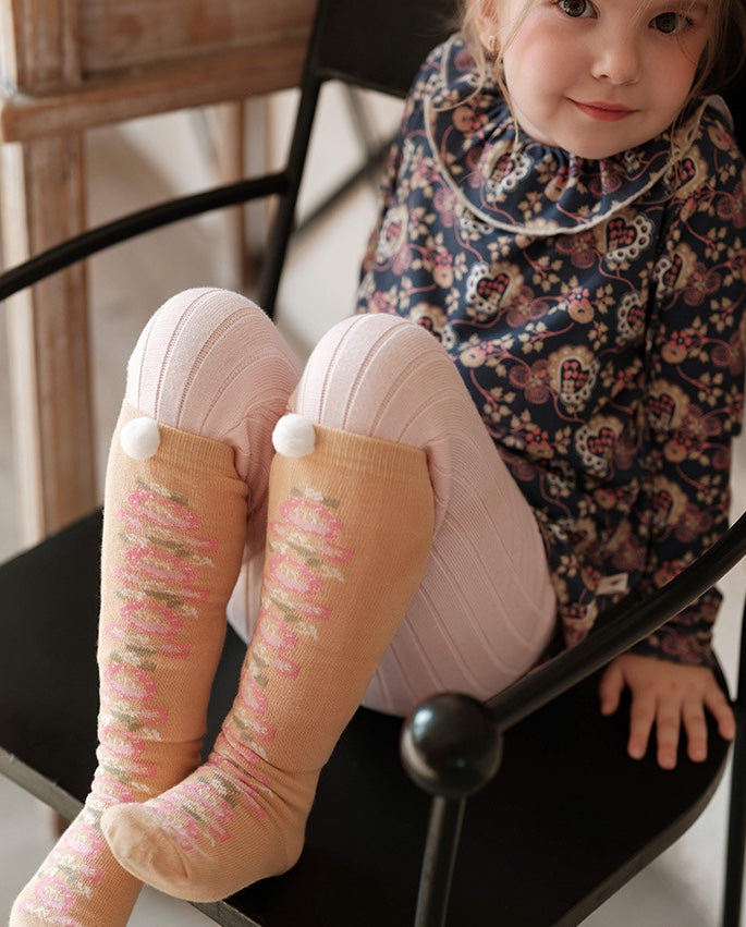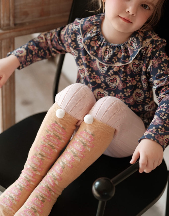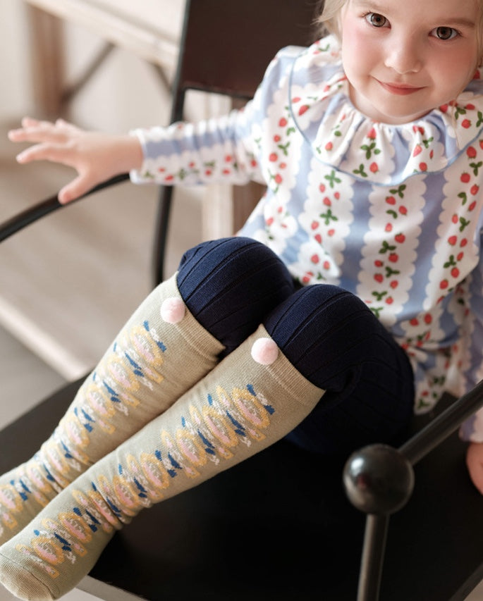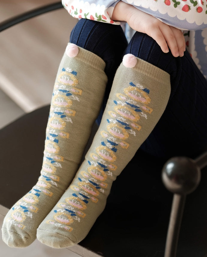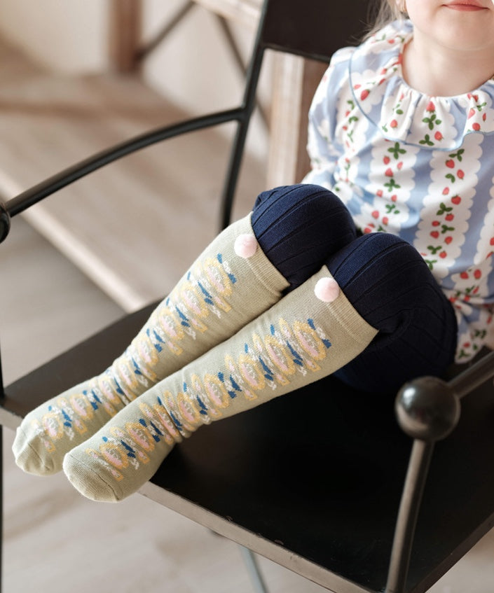 ハイソックス ニュアンスカラー ポンポン 靴下 キッズ コットン【mh0011562】