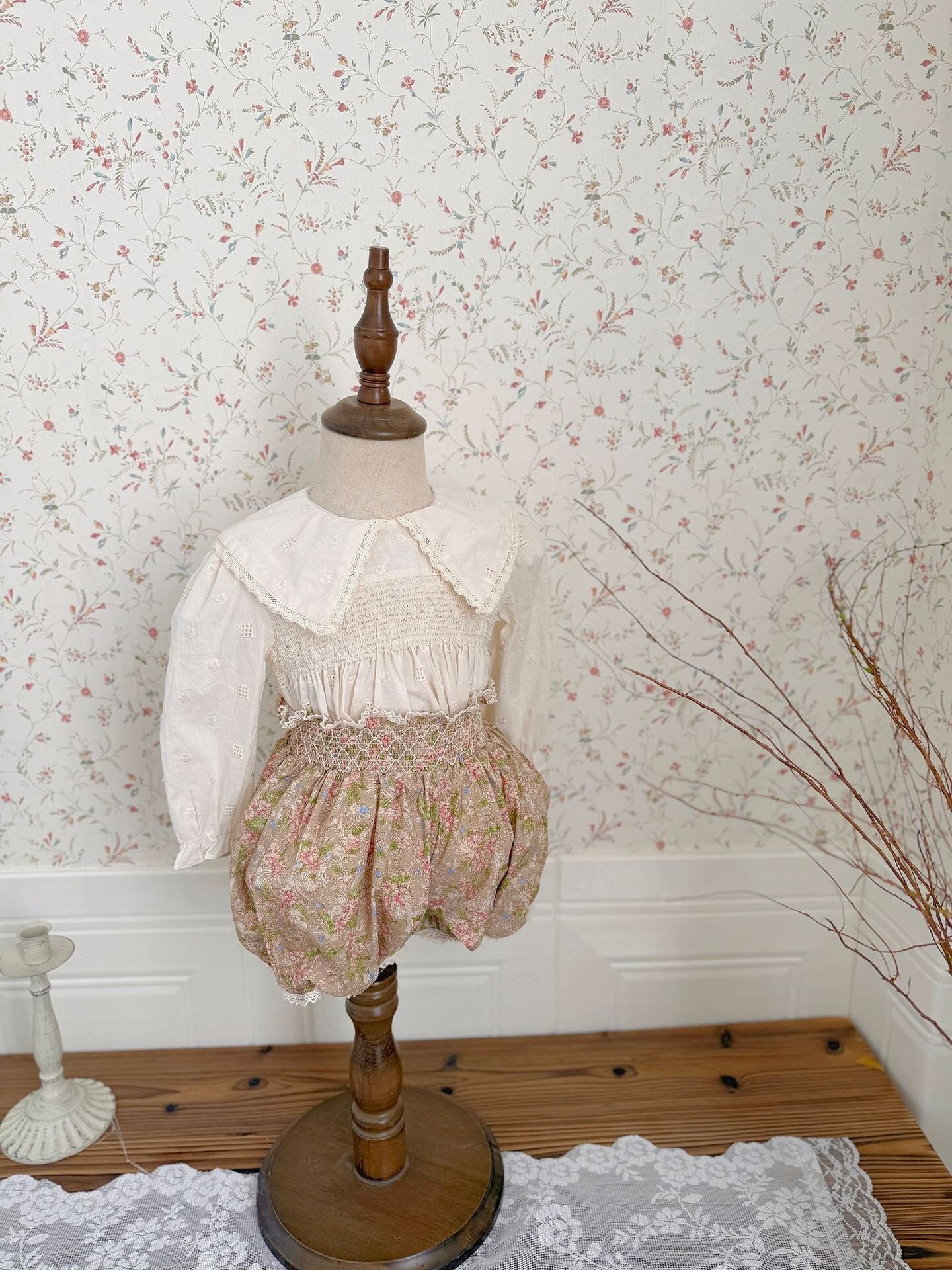 アンティークのような温もり。繊細な刺繍とスモッキングが彩る、可憐なドールブラウス
