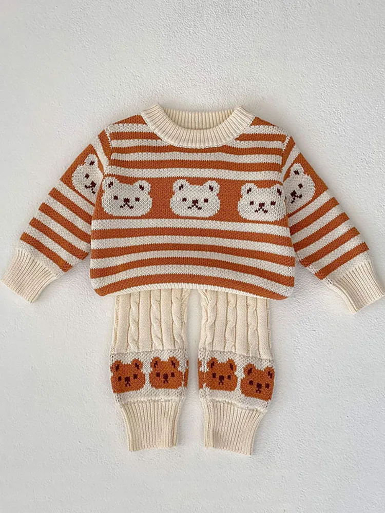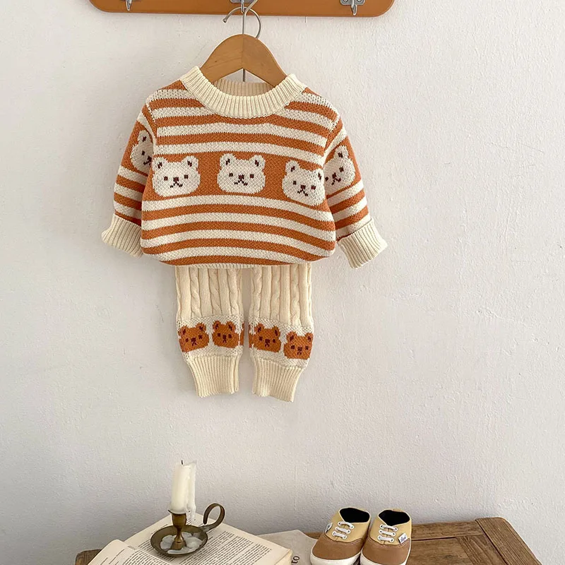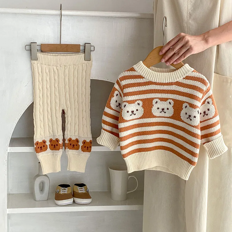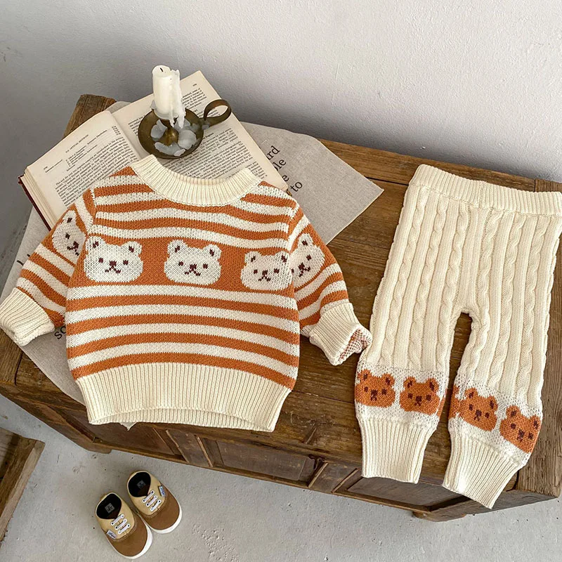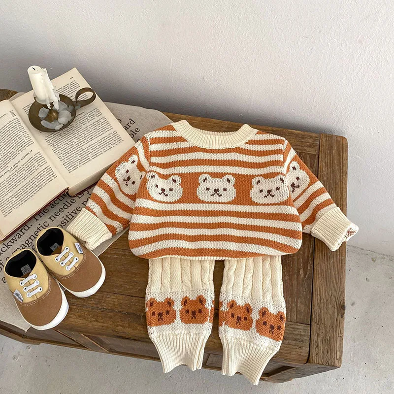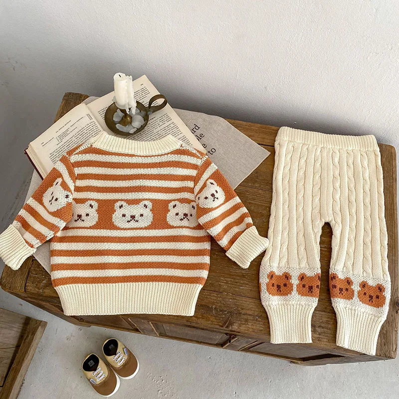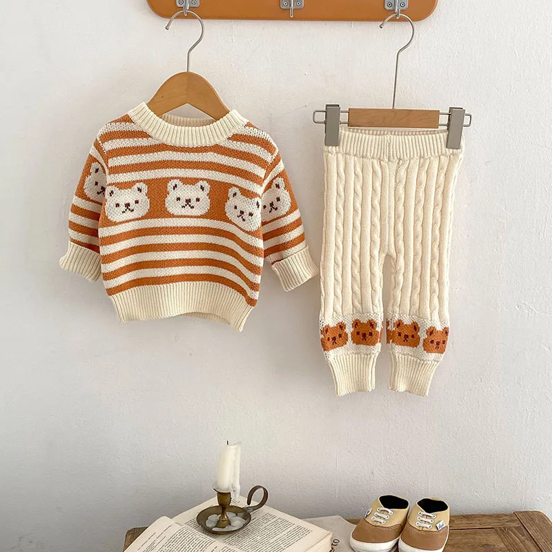 ベビートップス ボトムス ボーダーニットセーター ニットレギンスパンツ ベアくま