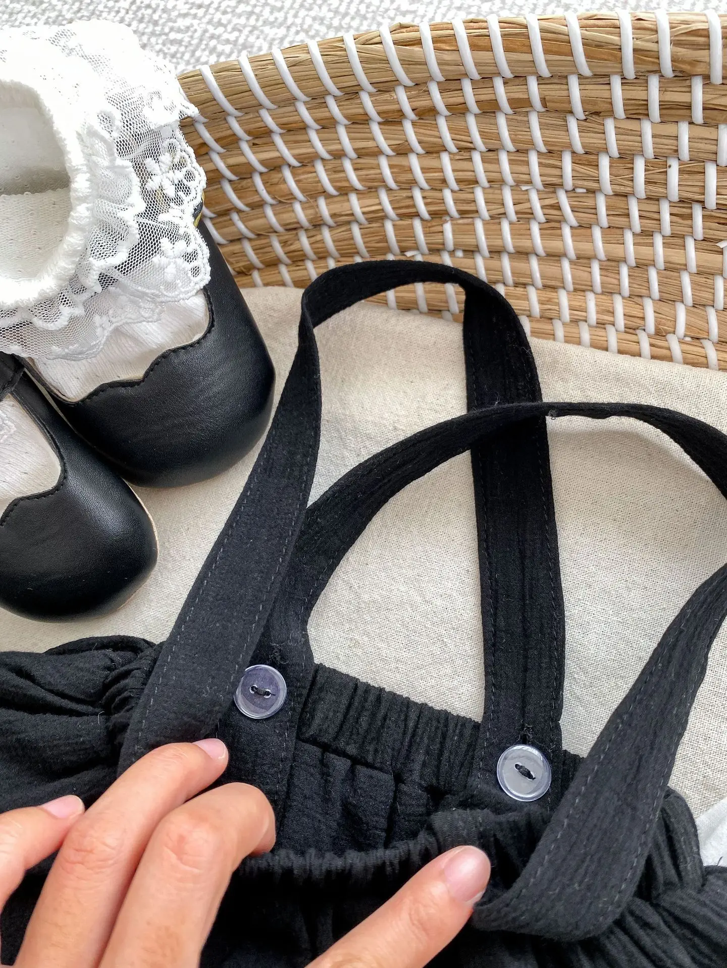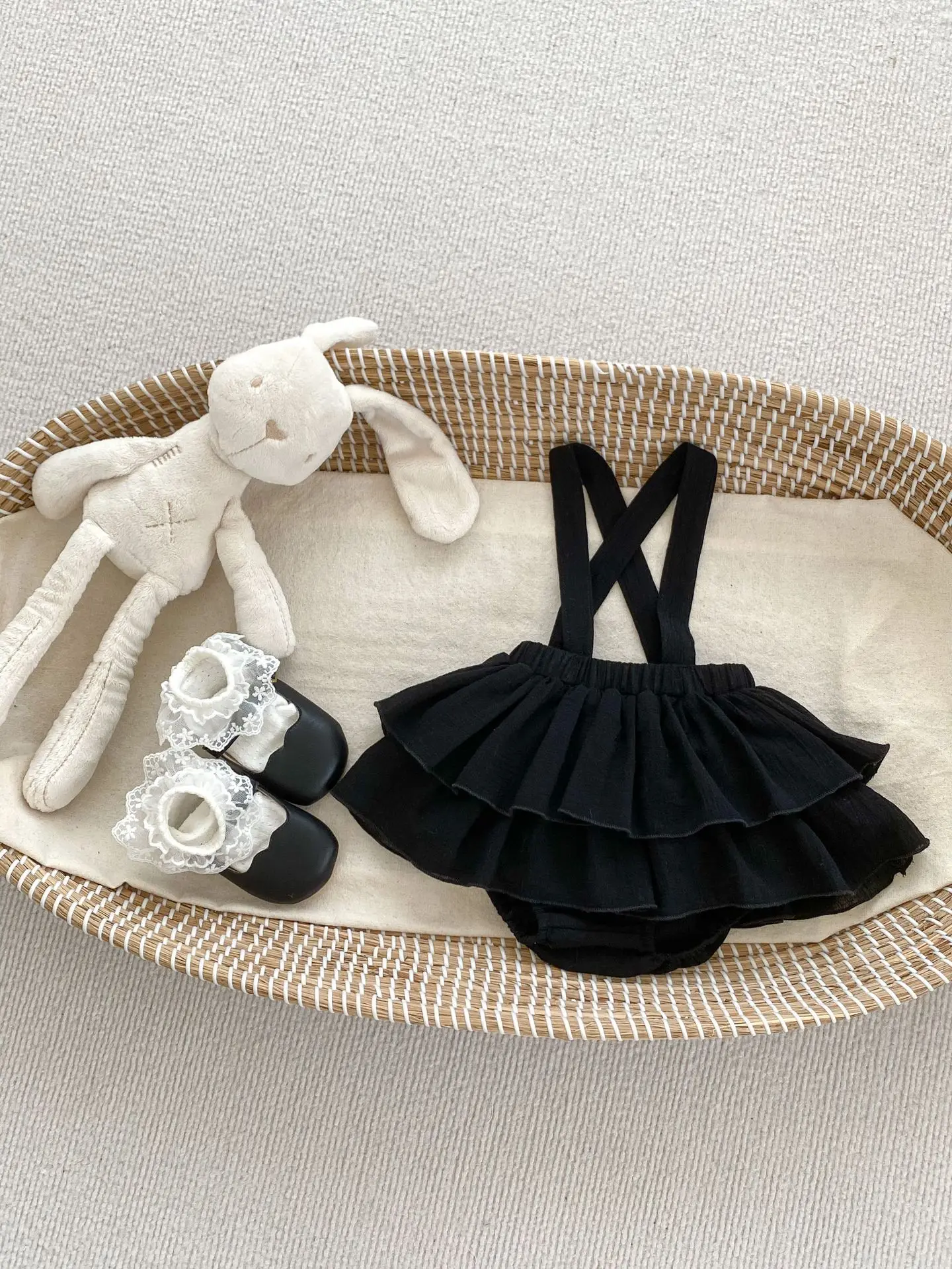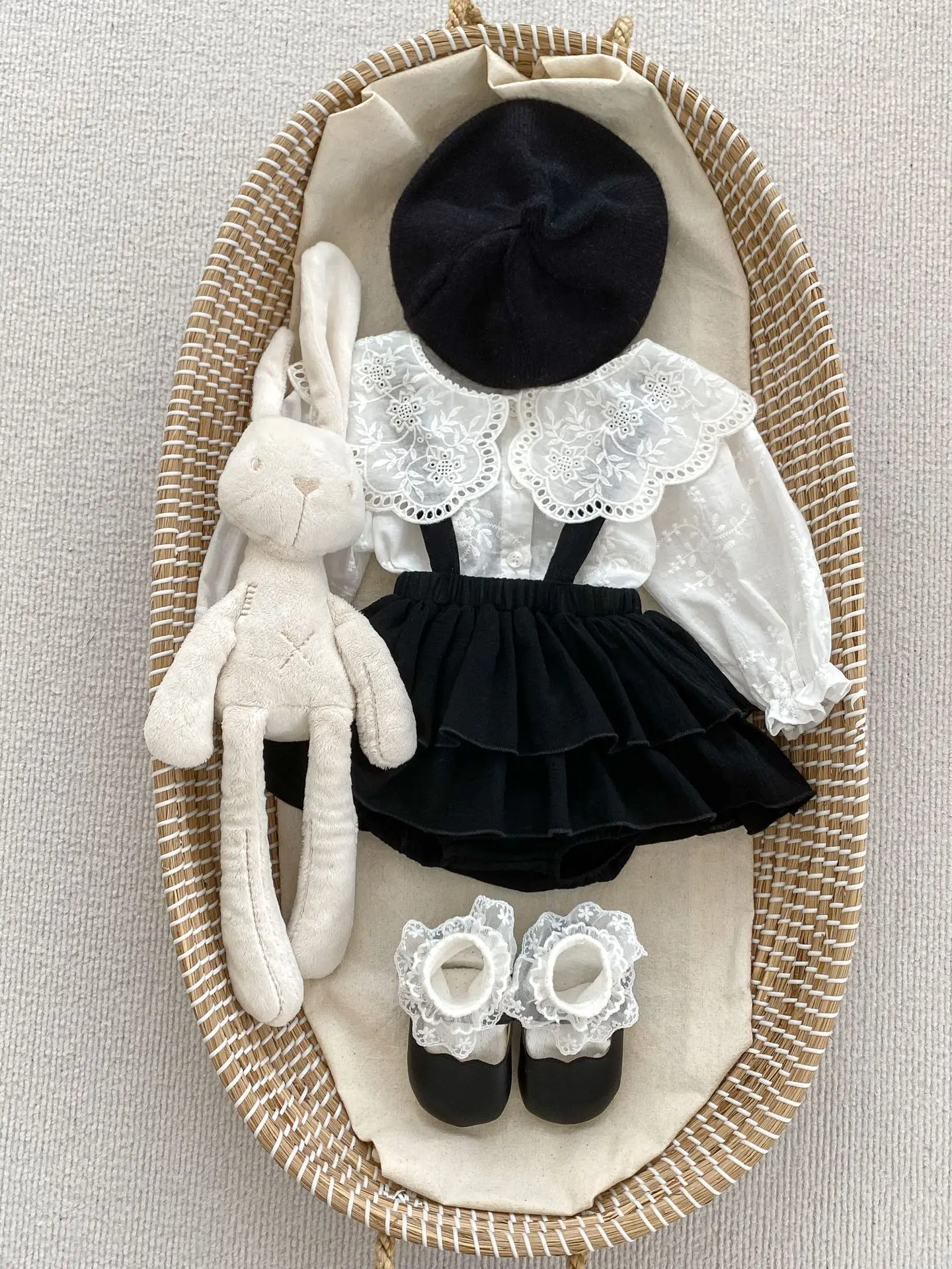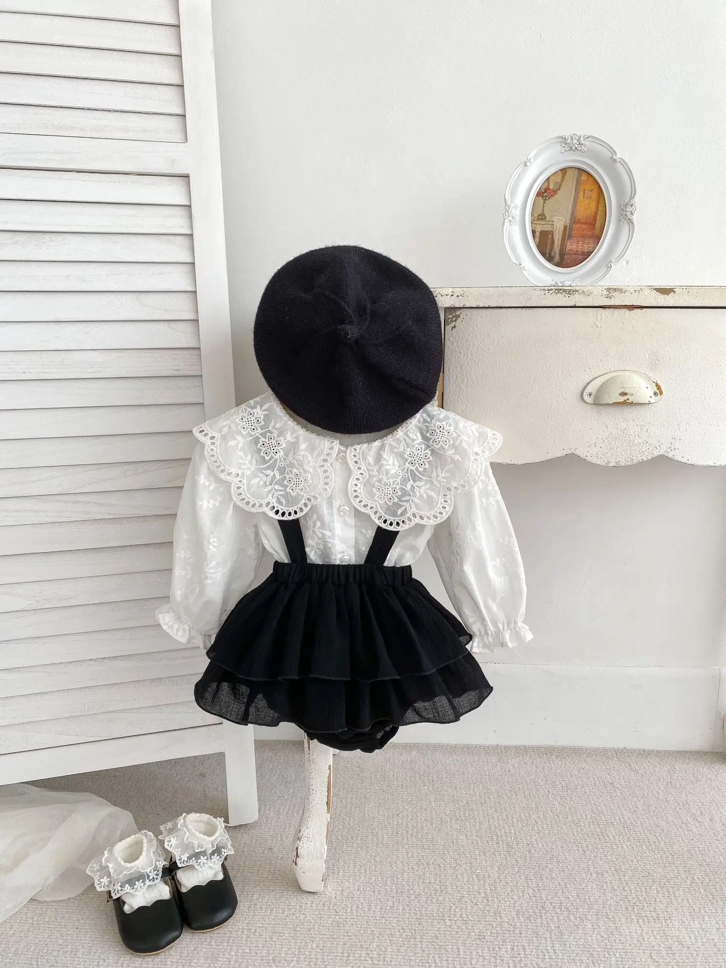 ベビートップス/サスペンダーブルマ 長袖レース襟ブラウス/サスペンダーフリルスカートブルマ