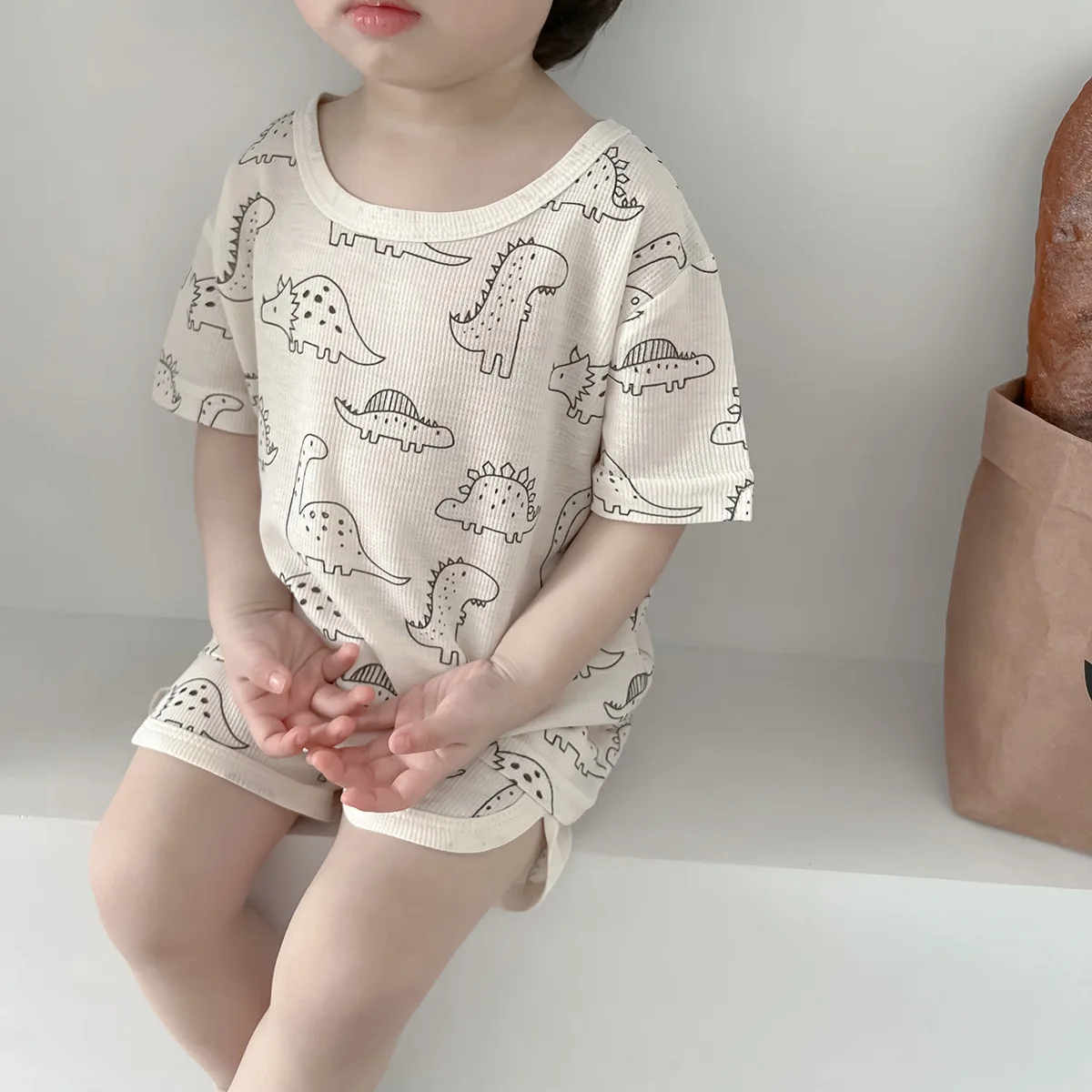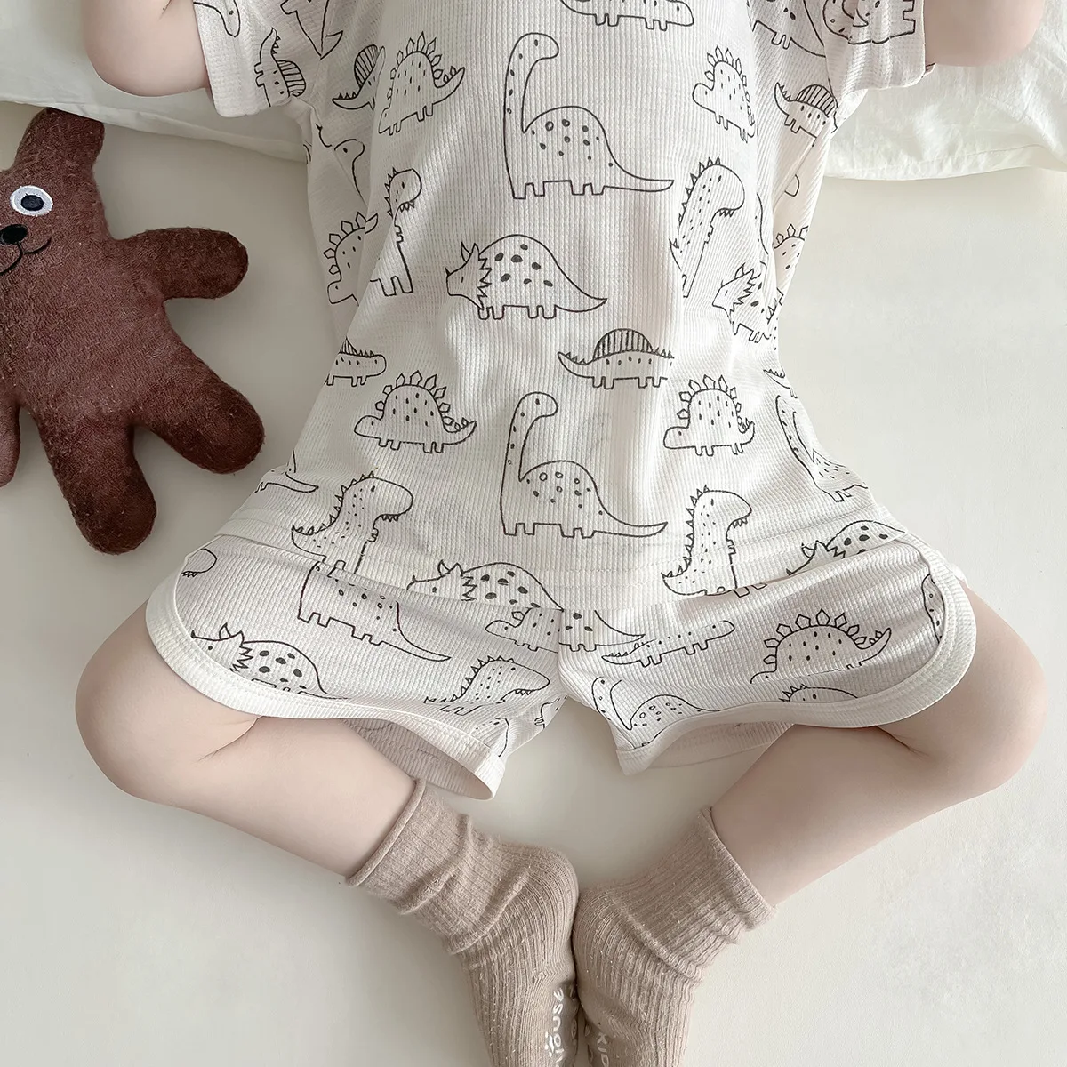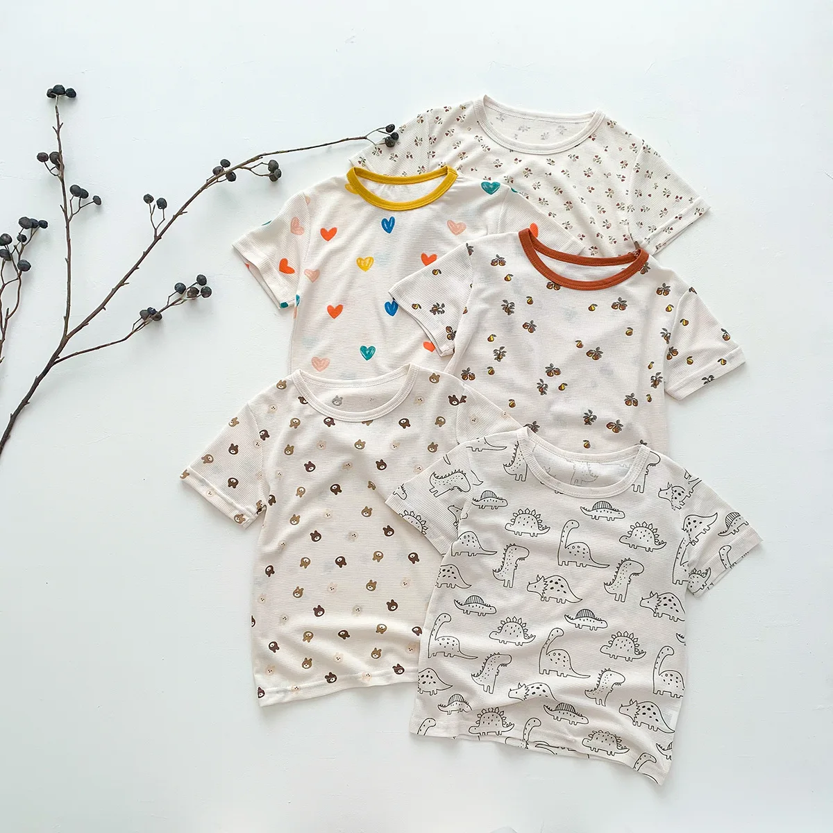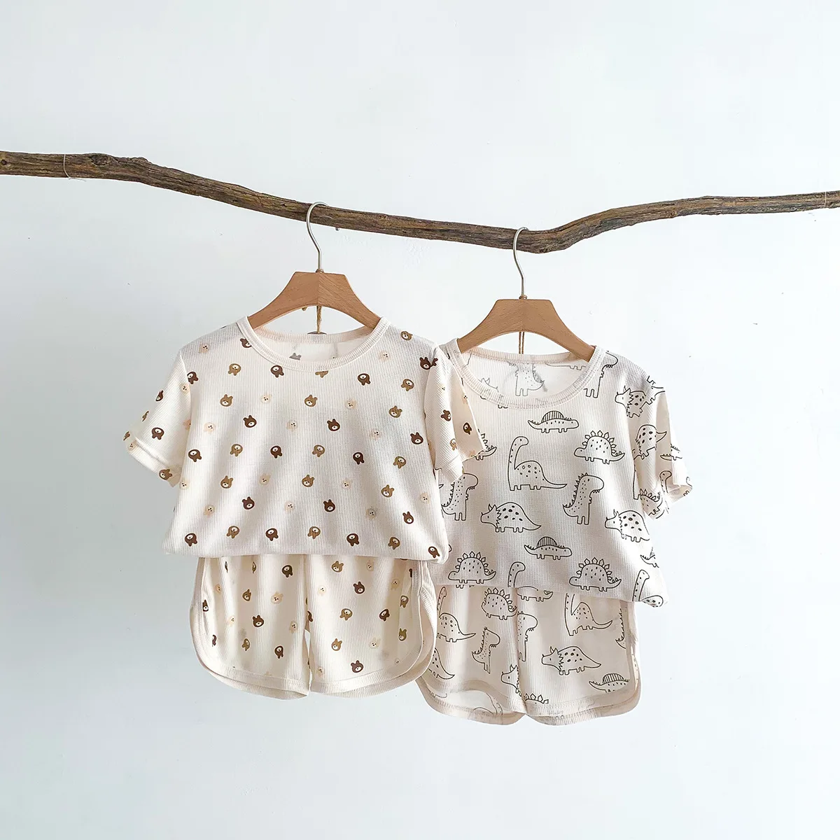 キッズ 半袖 プリント セットアップ パジャマ Tシャツ ショートパンツ フラワー 恐竜 ダイナソー くま ベア【mh0001165】