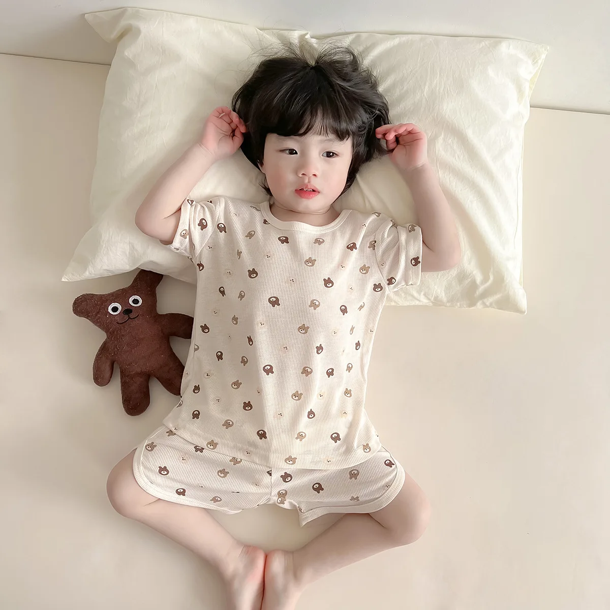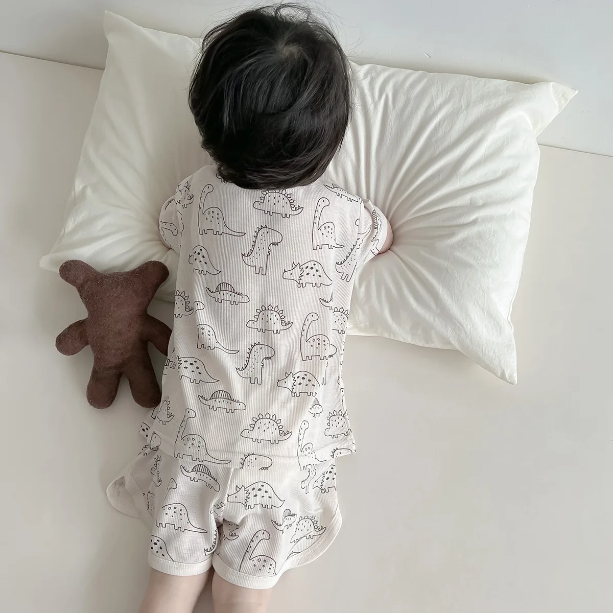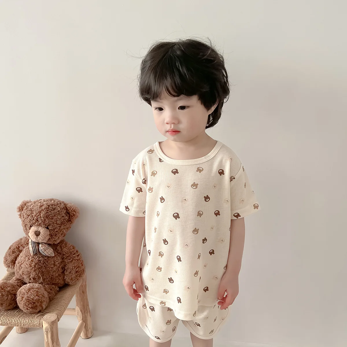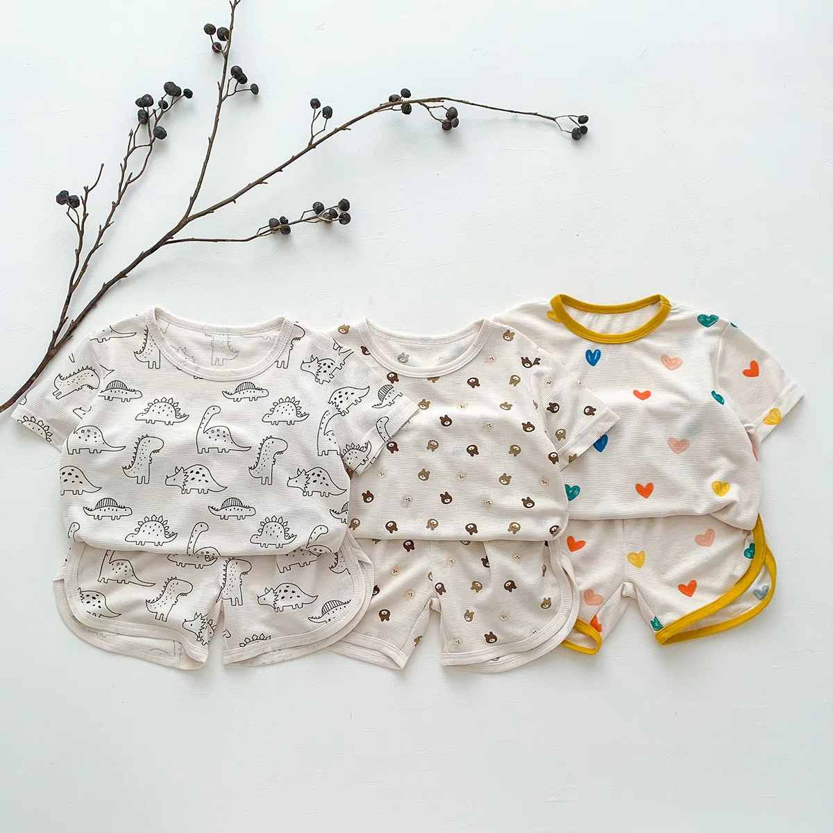 キッズ 半袖 プリント セットアップ パジャマ Tシャツ ショートパンツ フラワー 恐竜 ダイナソー くま ベア【mh0001165】
