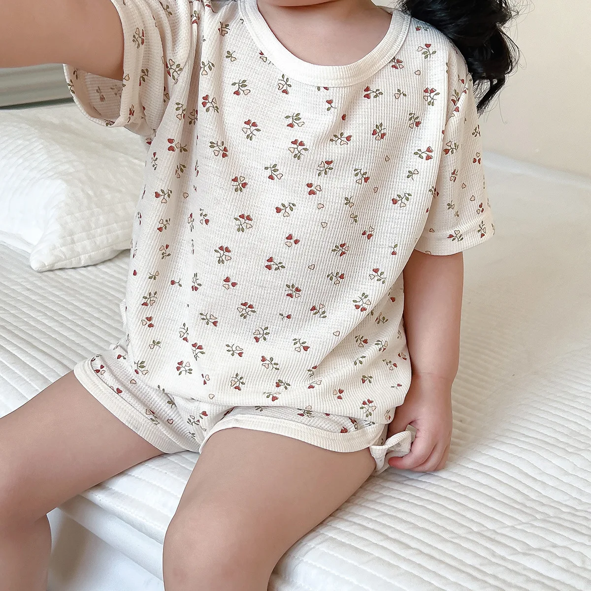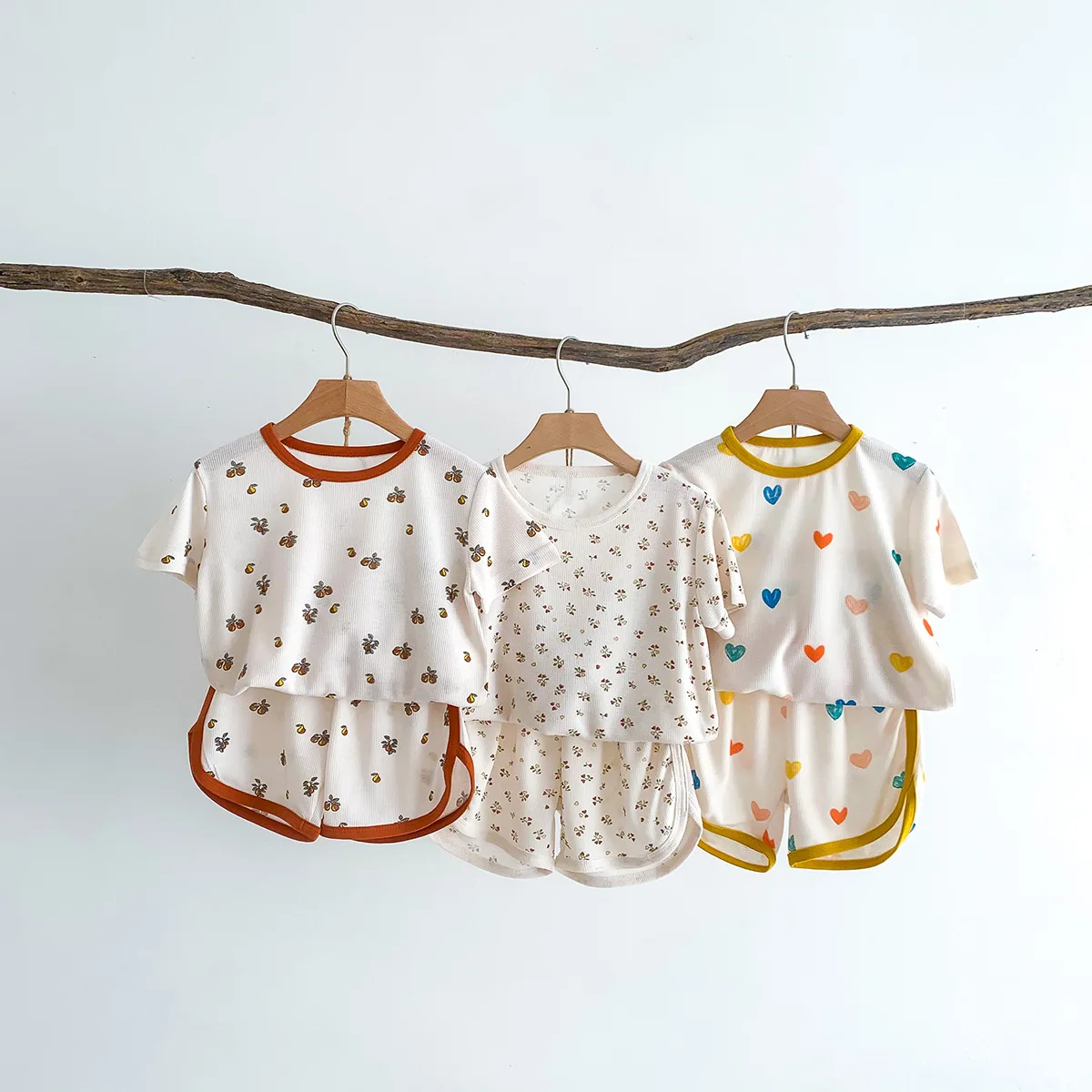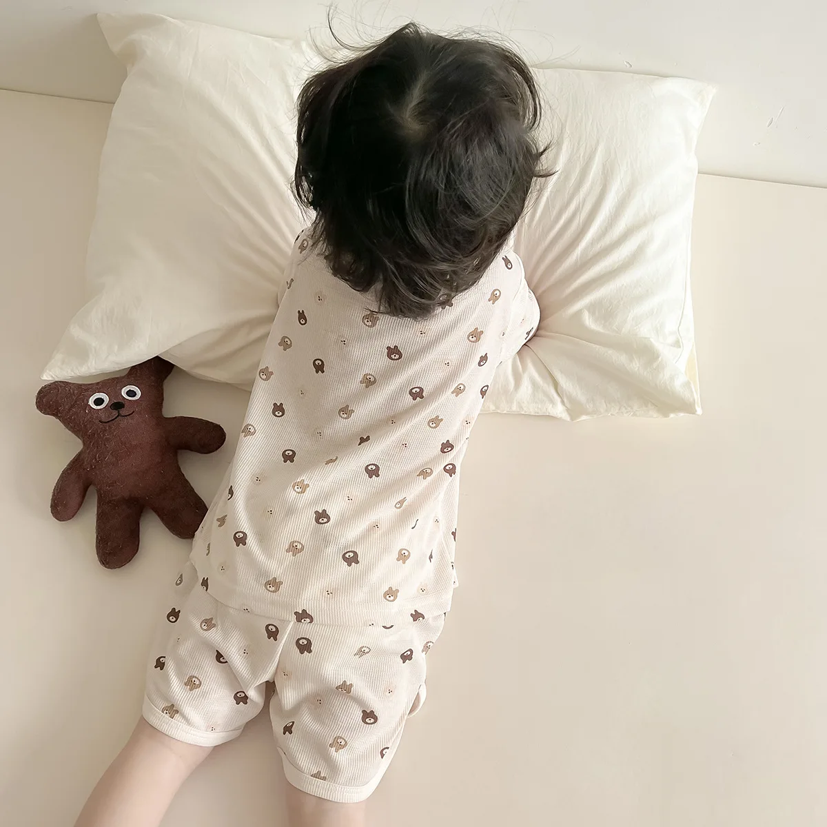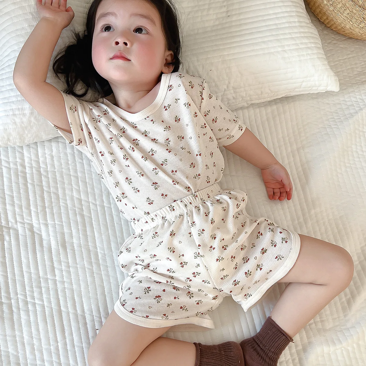 キッズ 半袖 プリント セットアップ パジャマ Tシャツ ショートパンツ フラワー 恐竜 ダイナソー くま ベア【mh0001165】