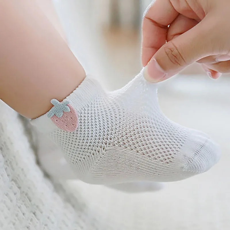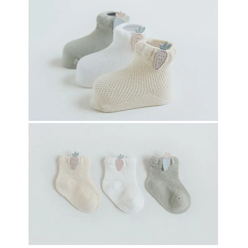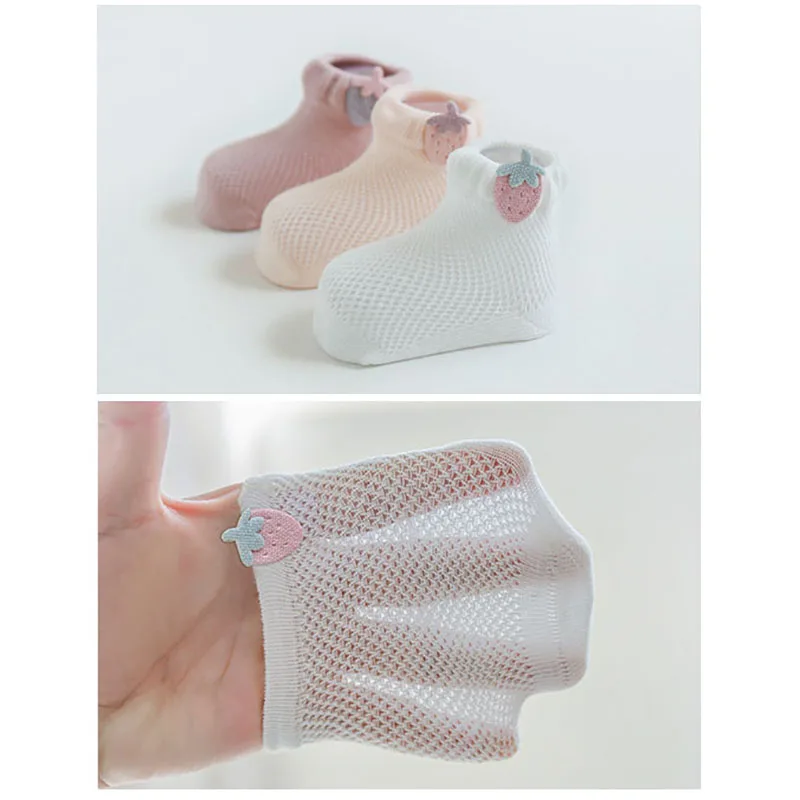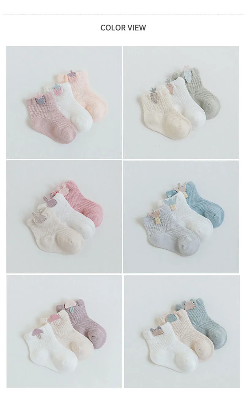 ベビー キッズ メッシュ サマー ショート ソックス 靴下 3足 セット うさぎ くま いちご【mh0001446】