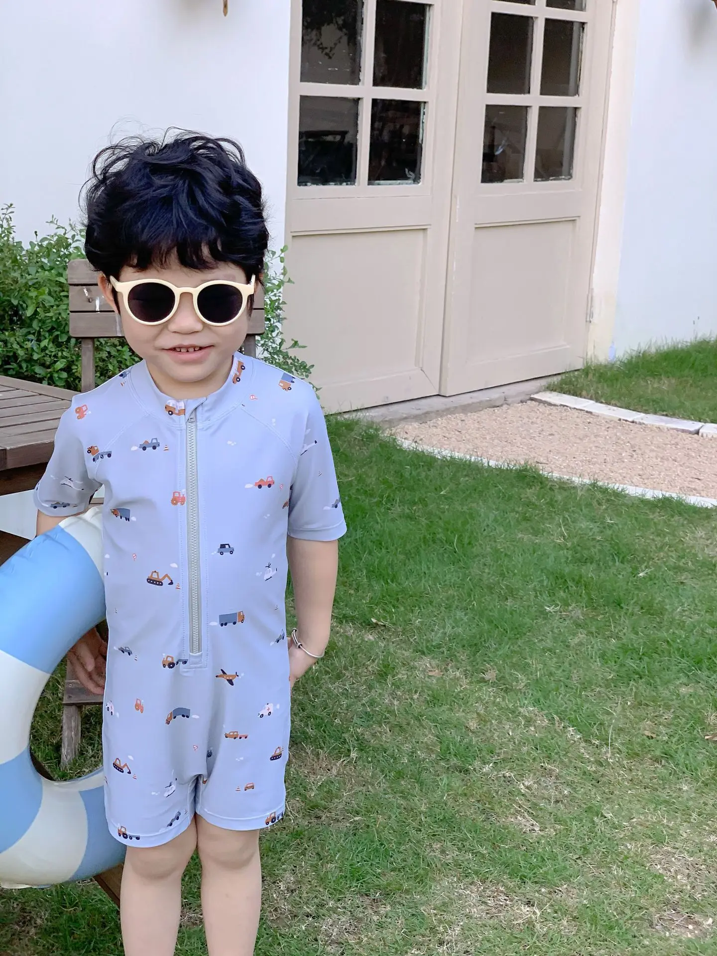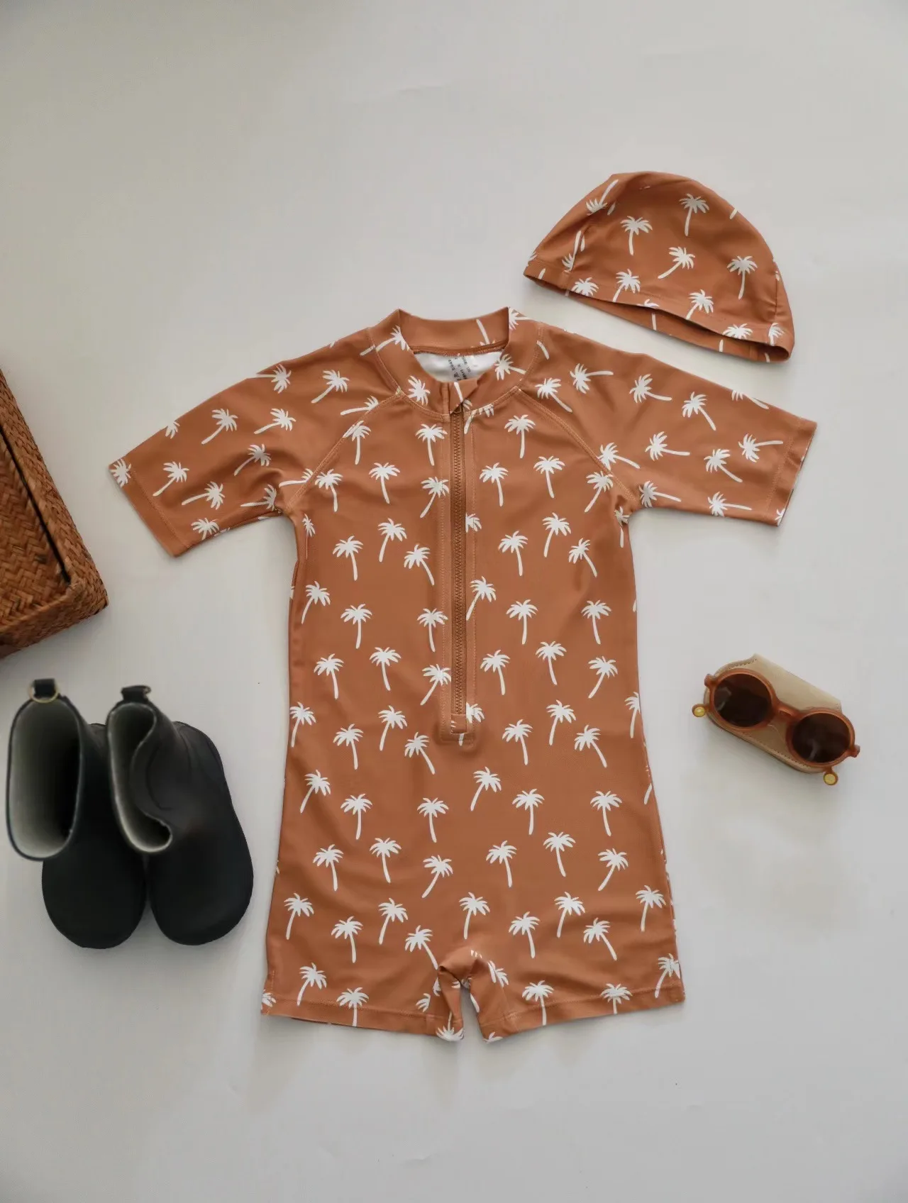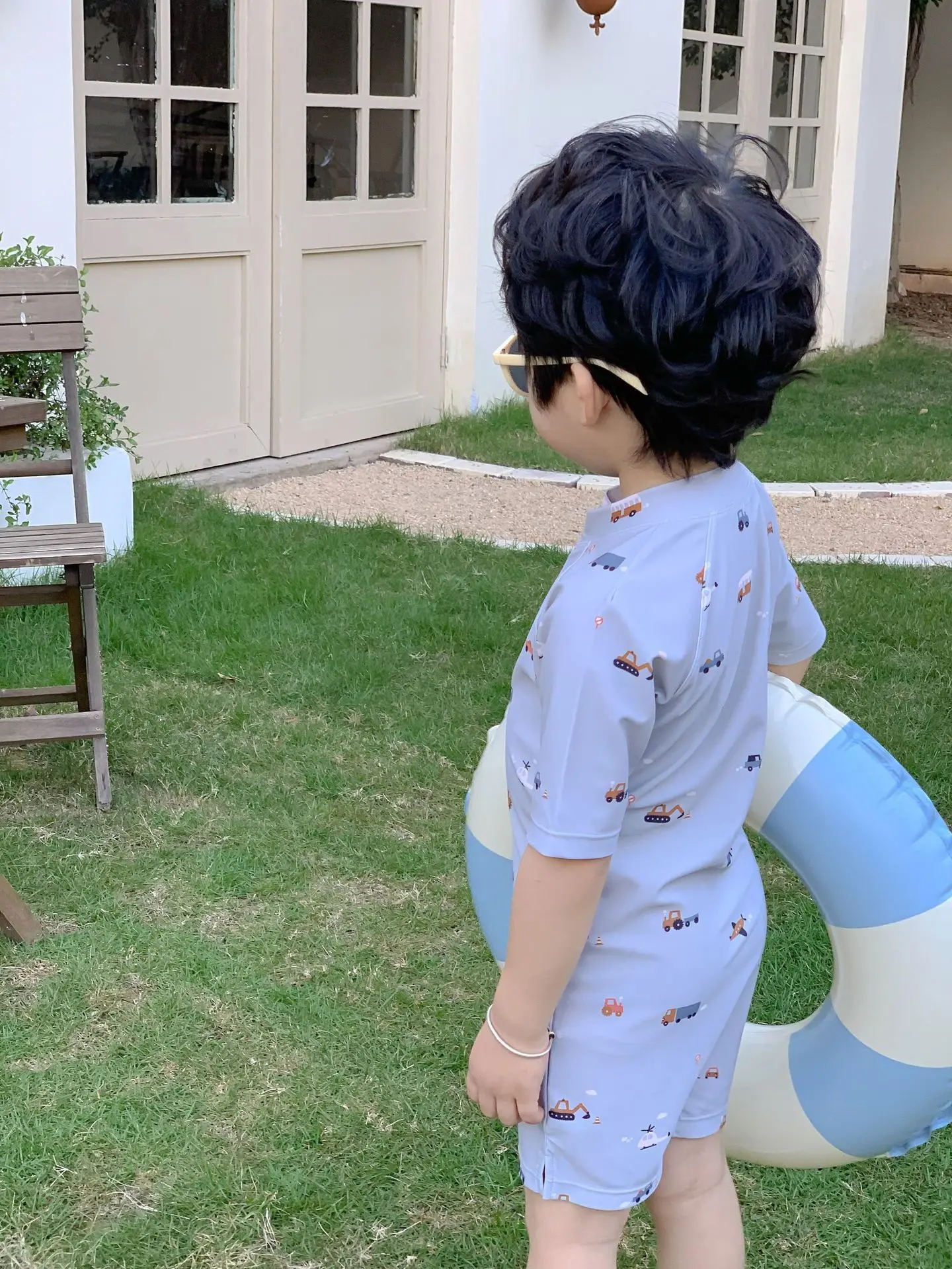 キッズ ボーイズ 水着 セット 長袖 トップス パンツ ラッシュガード スイムウェア 帽子 セット【mh0001541】