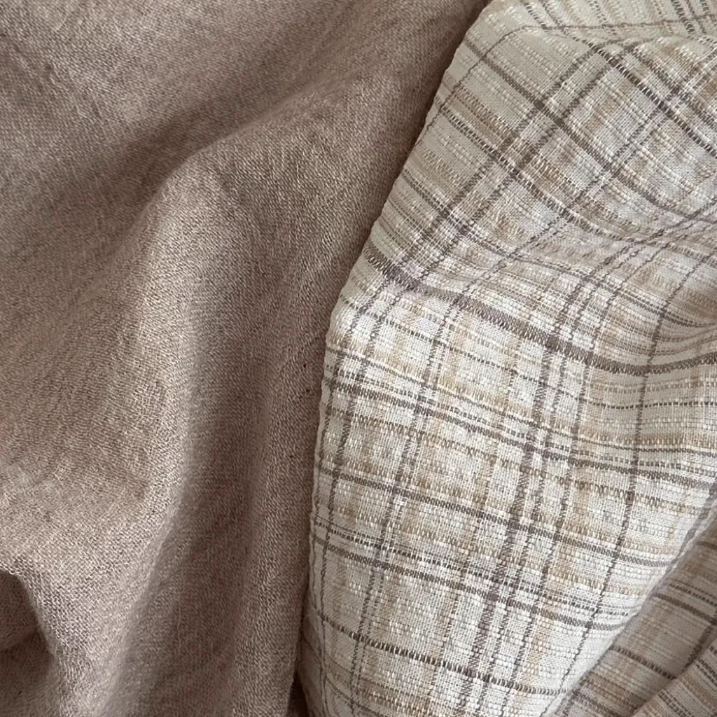 *生地素材組成については、100%などの数値表記のないものは、基本的には混紡・混載で、記載はメイン素材となるとお考えください。また、詳細の組成率につきましては問い合わせいただきましたら、できる限りお調べいたしますが、日本基準での検査は行なっておりませんので、不明な場合や正確確実な回答が出来かねる場合が多々ございますのでご了承ください。