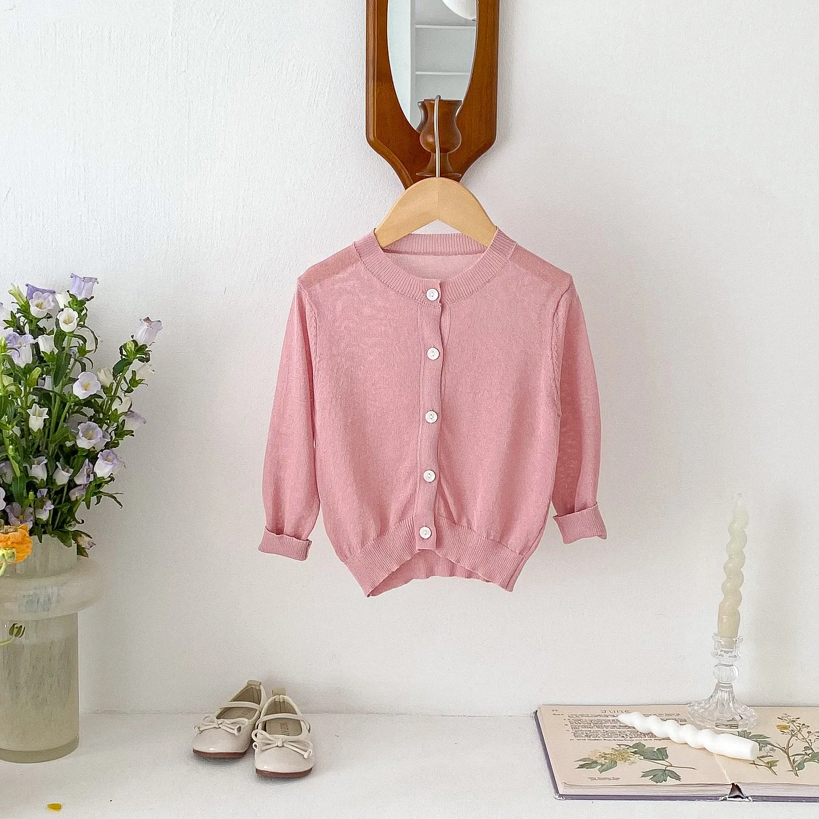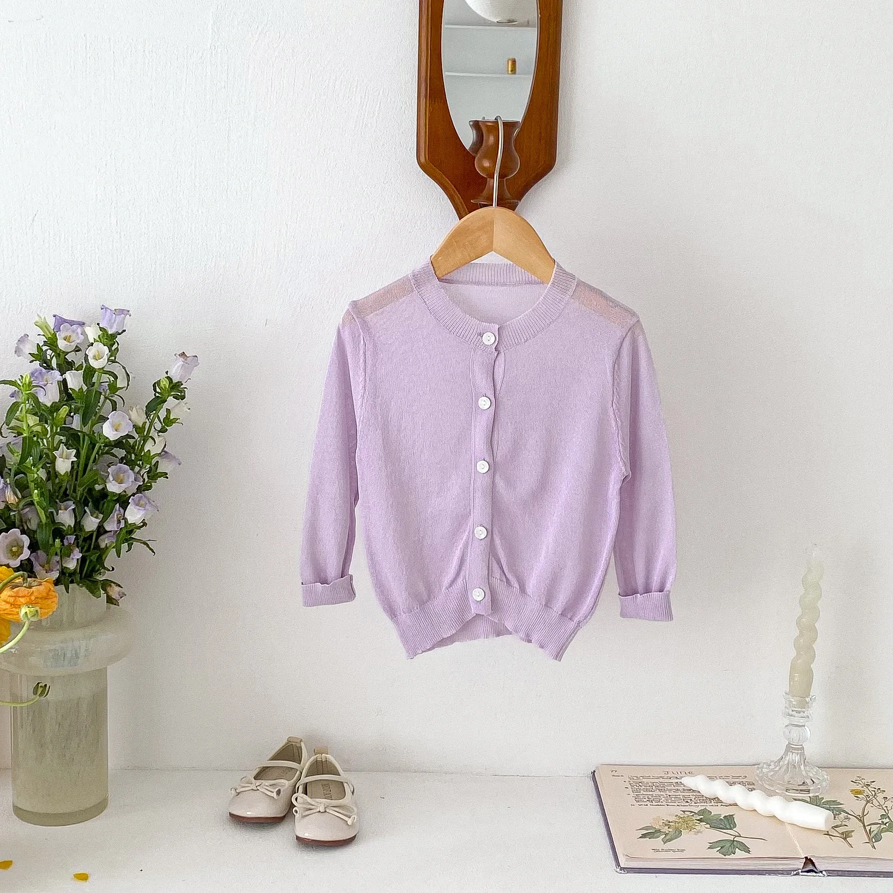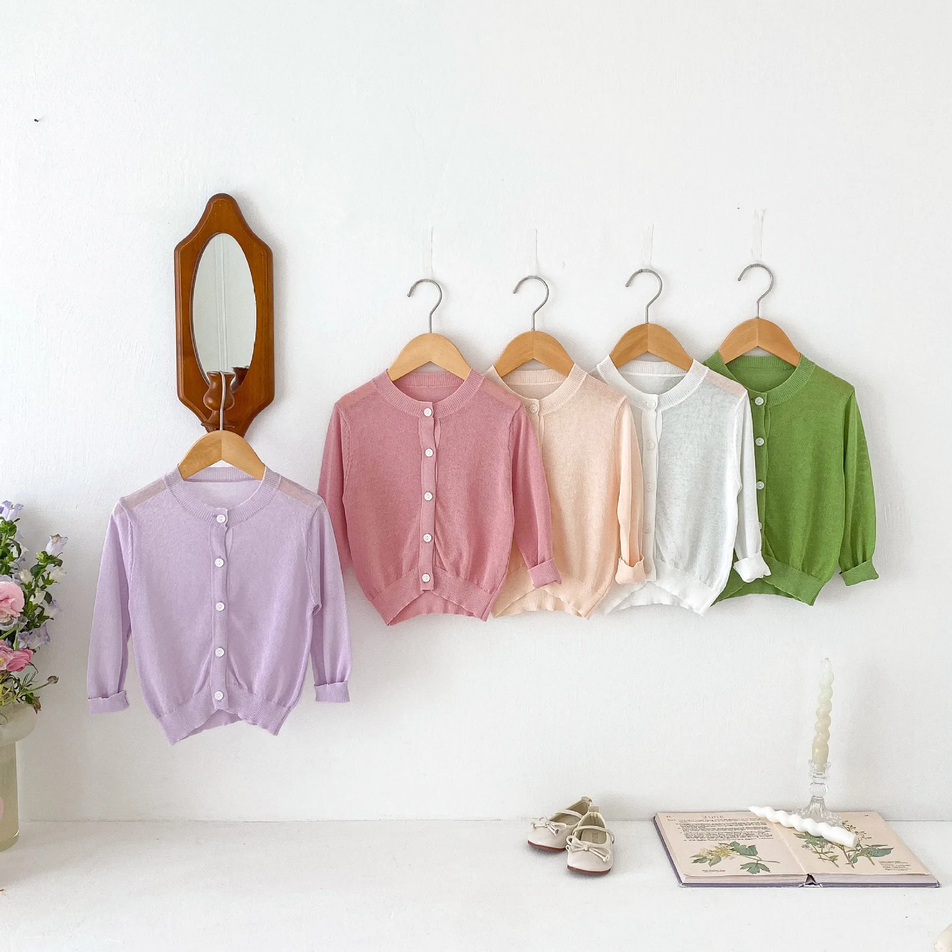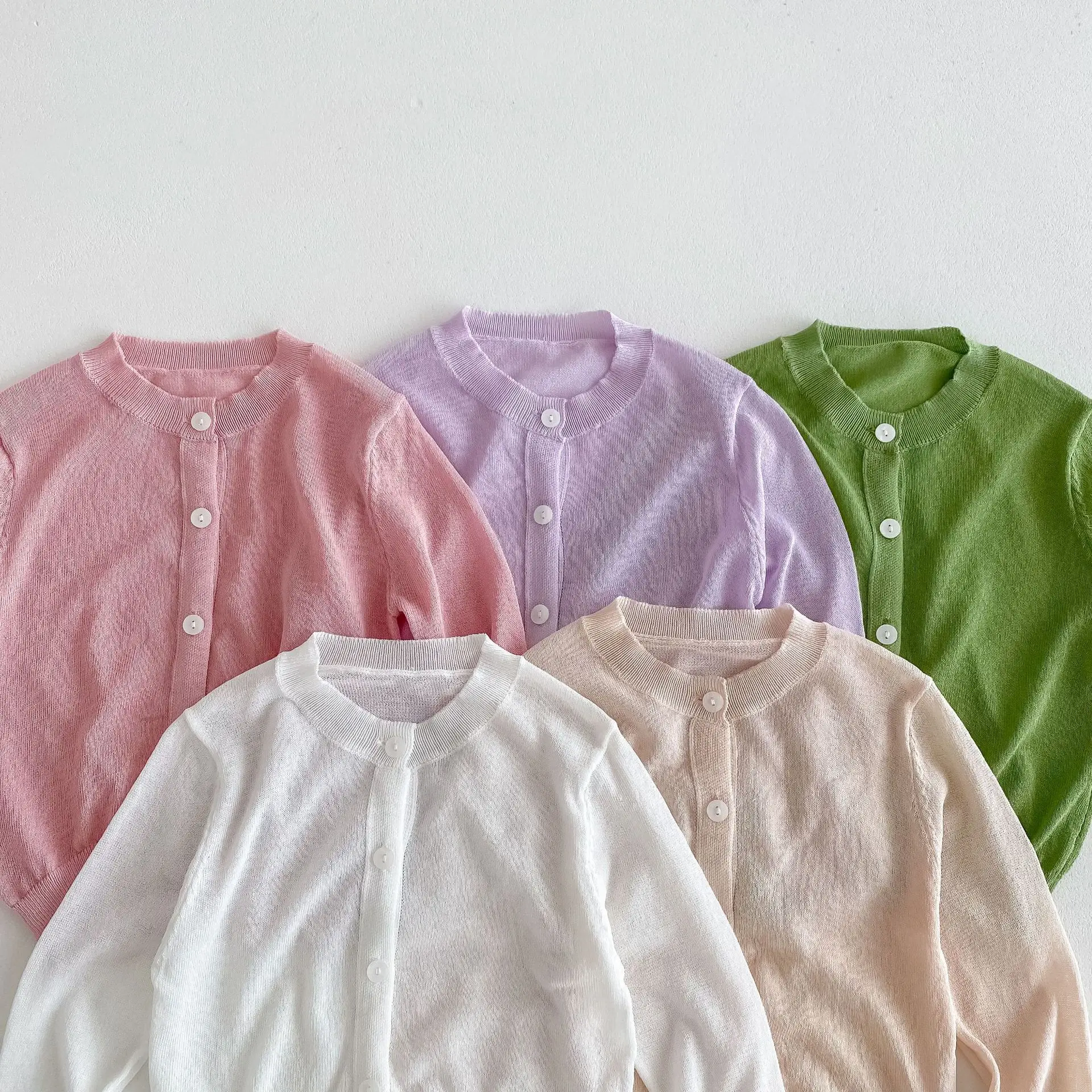キッズカーディガン サマーカーディガンジャケット 薄手 シンプルベーシック 日除け クーラー冷房対策 5カラー【mh0005577】