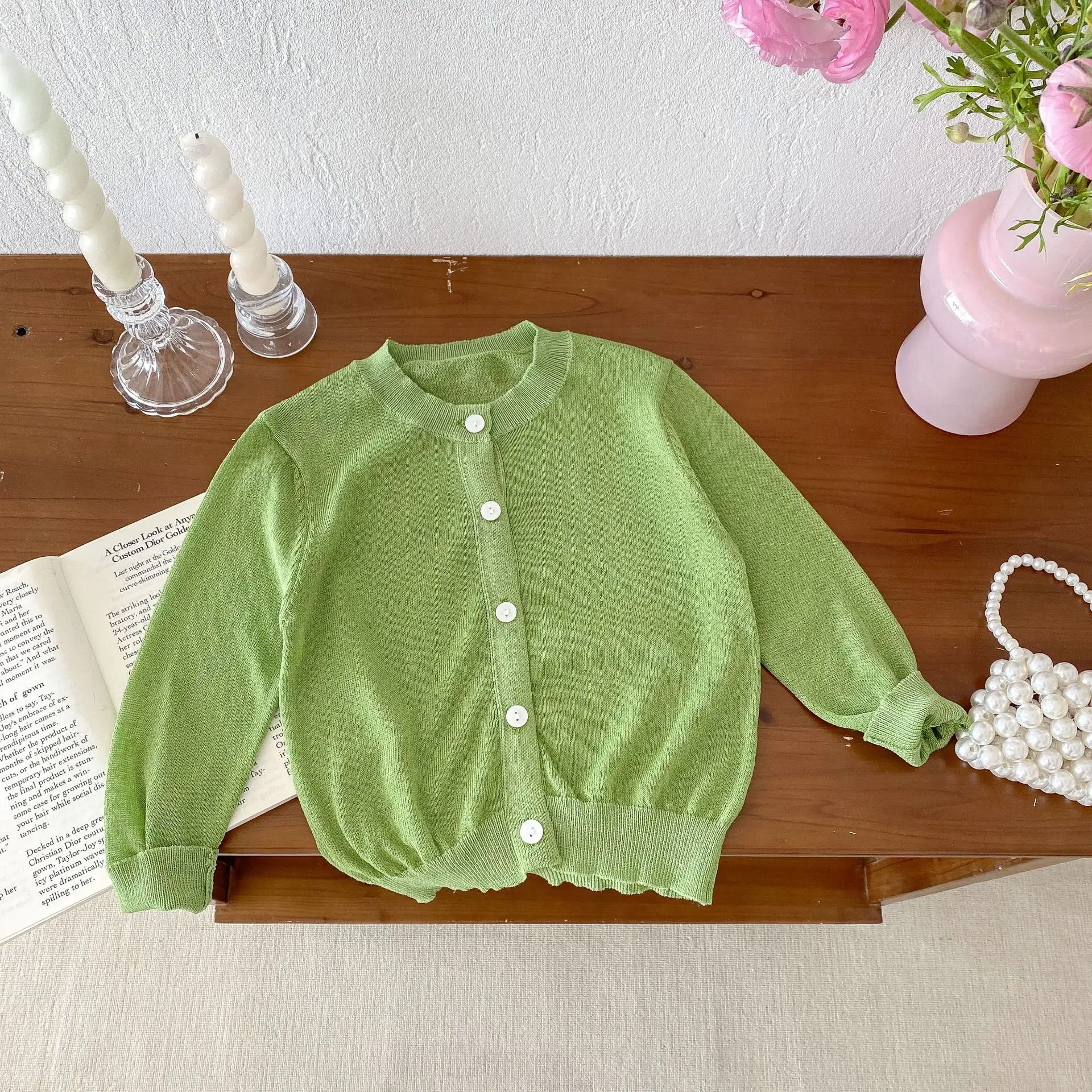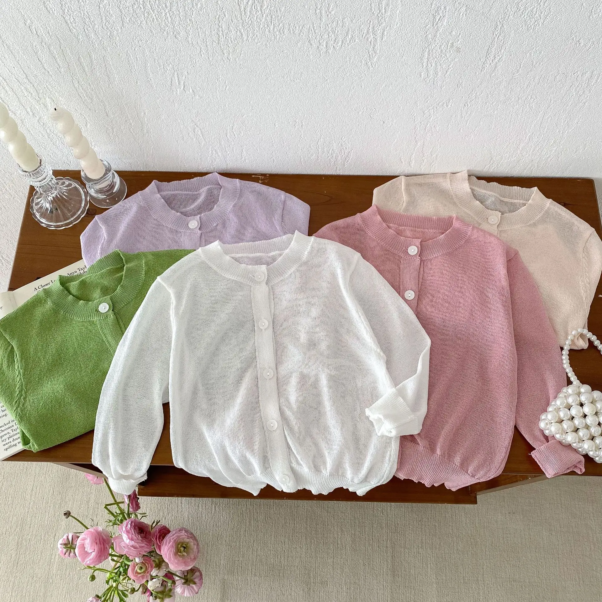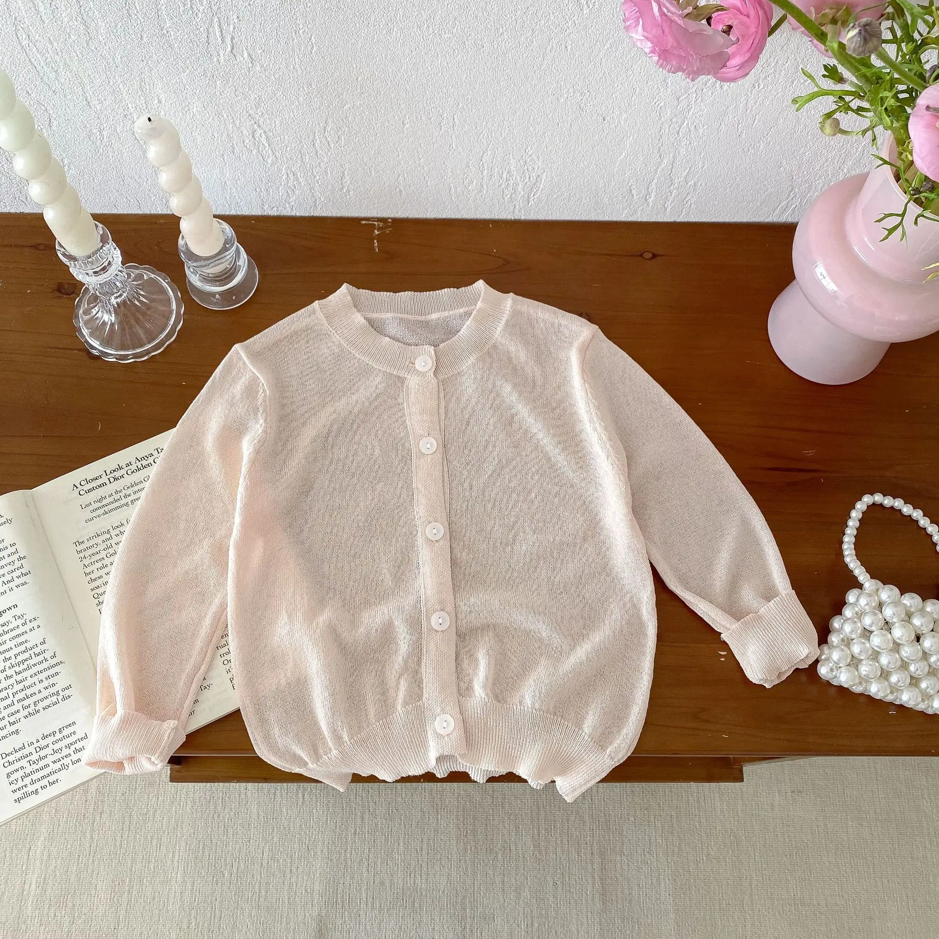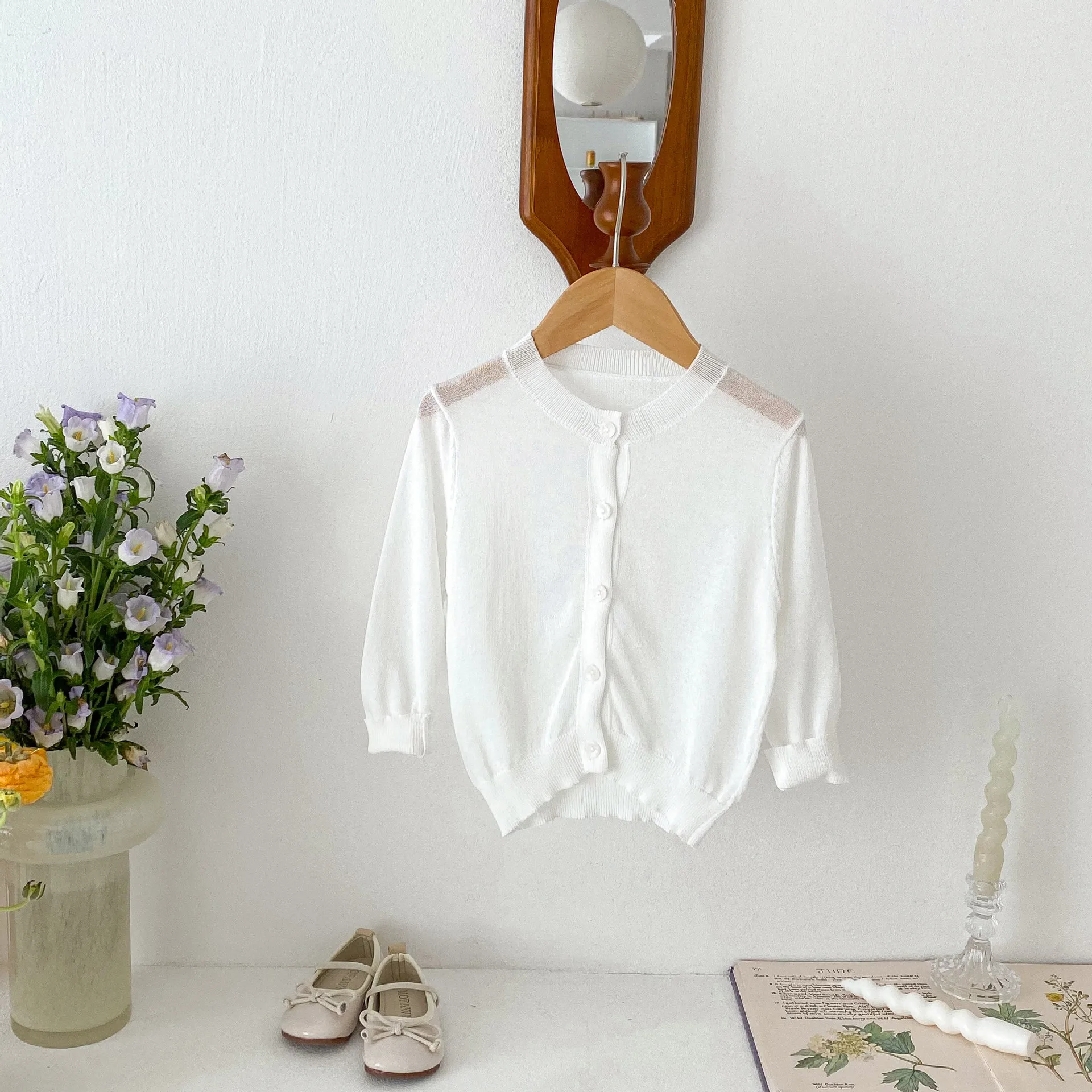 キッズカーディガン サマーカーディガンジャケット 薄手 シンプルベーシック 日除け クーラー冷房対策 5カラー【mh0005577】