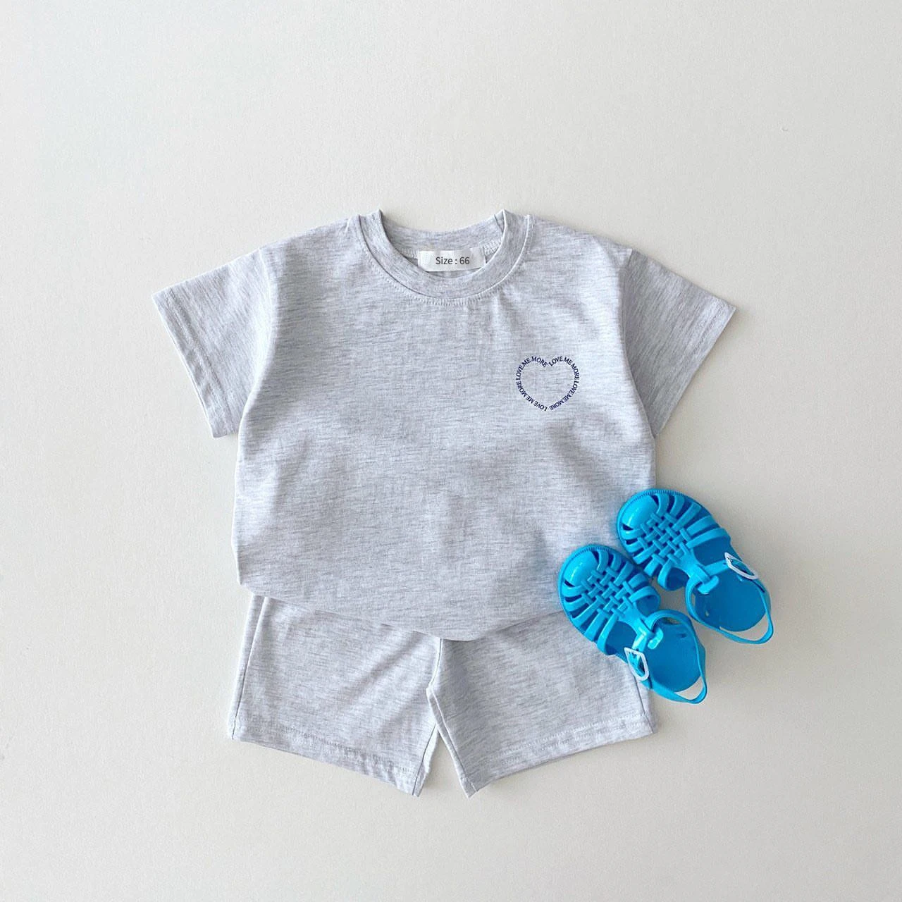 ベビーキッズセットアップ 2点セット 半袖プリントTシャツ+ショートパンツ ハート【mh0005642】