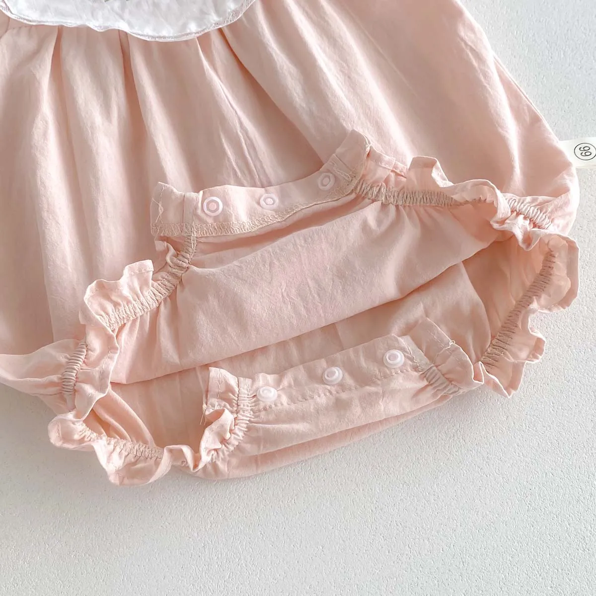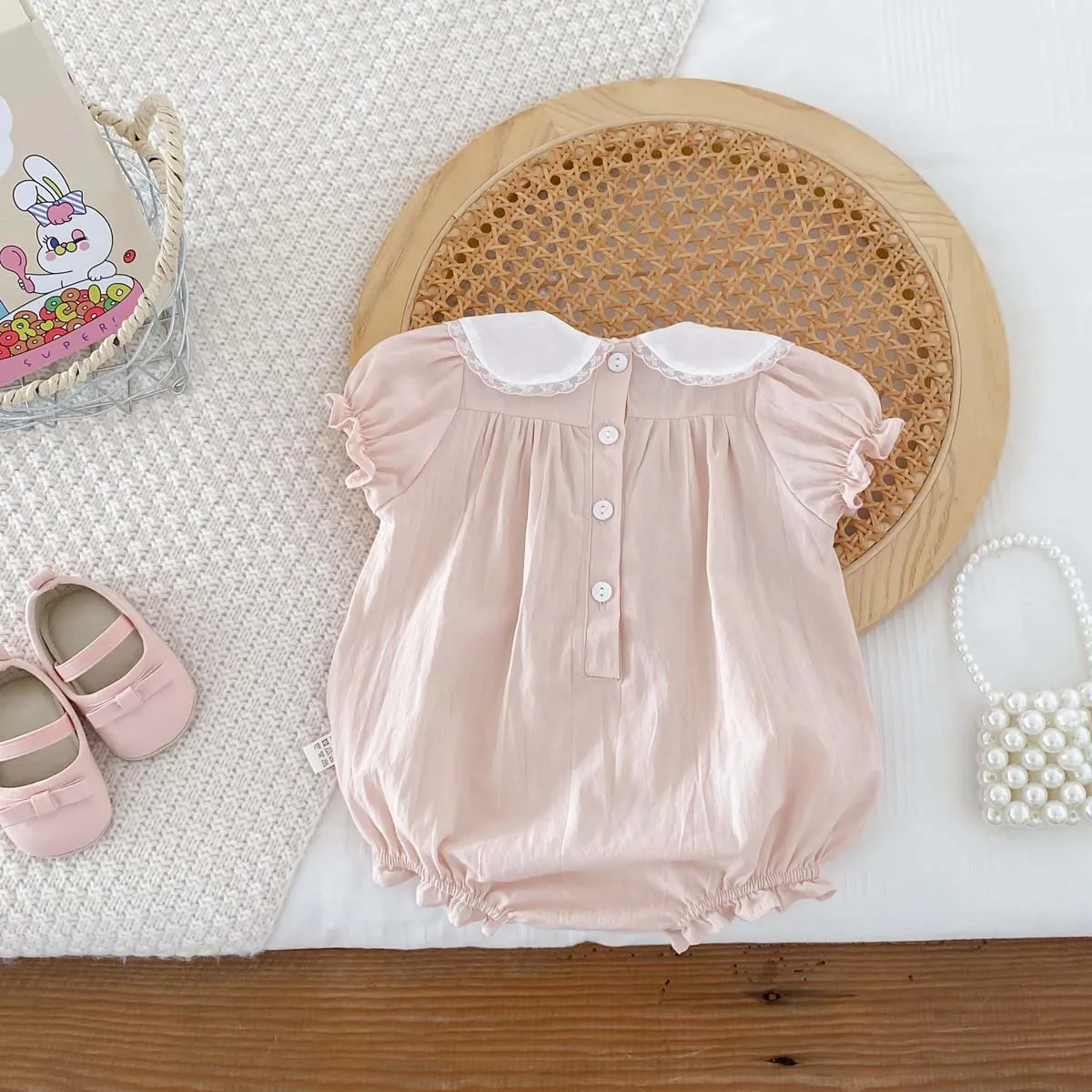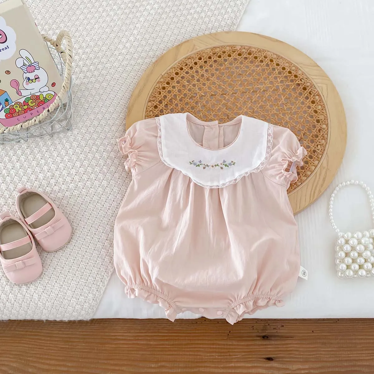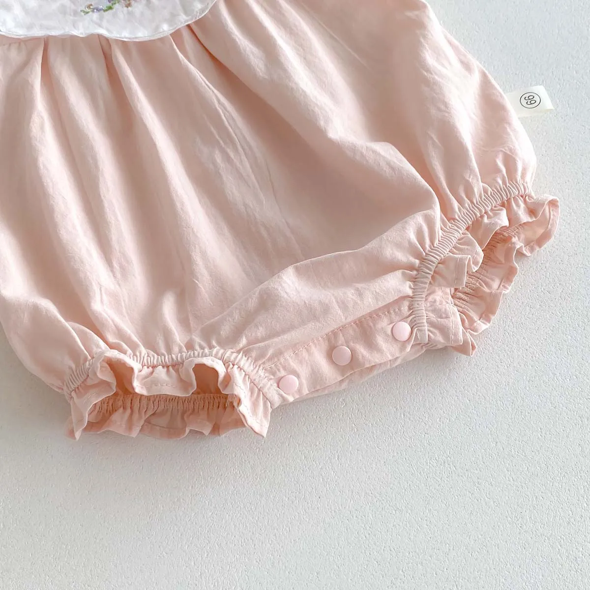 ベビーロンパース 半袖ボディスーツ フラワー刺繍 ピンク【mh0006272】