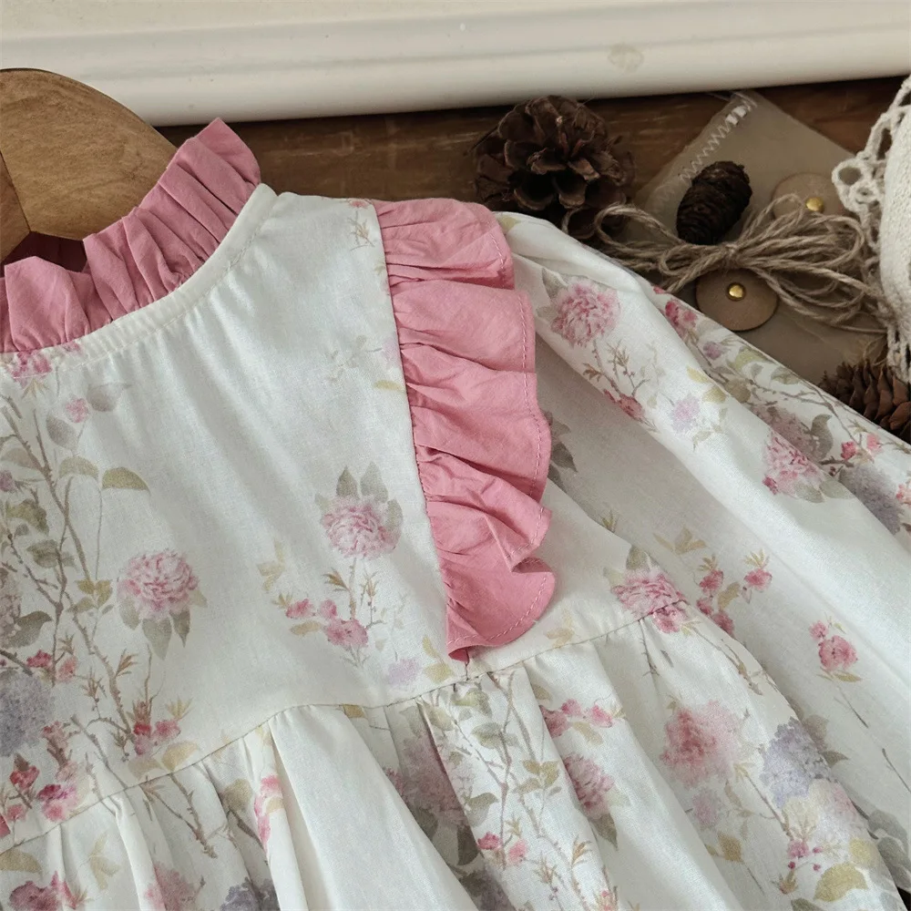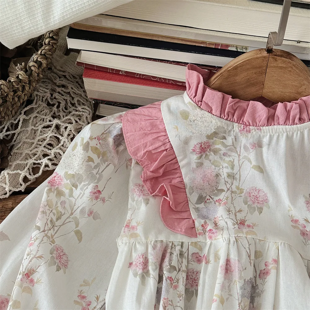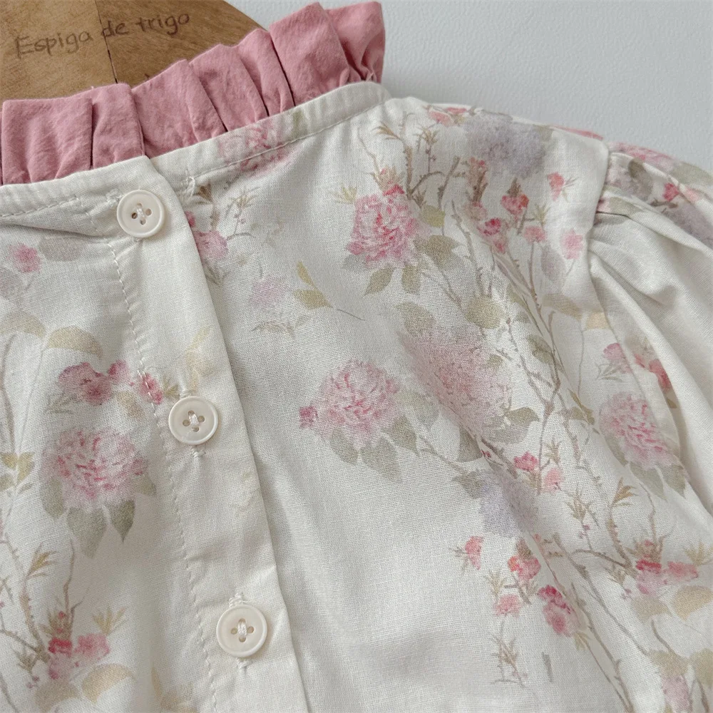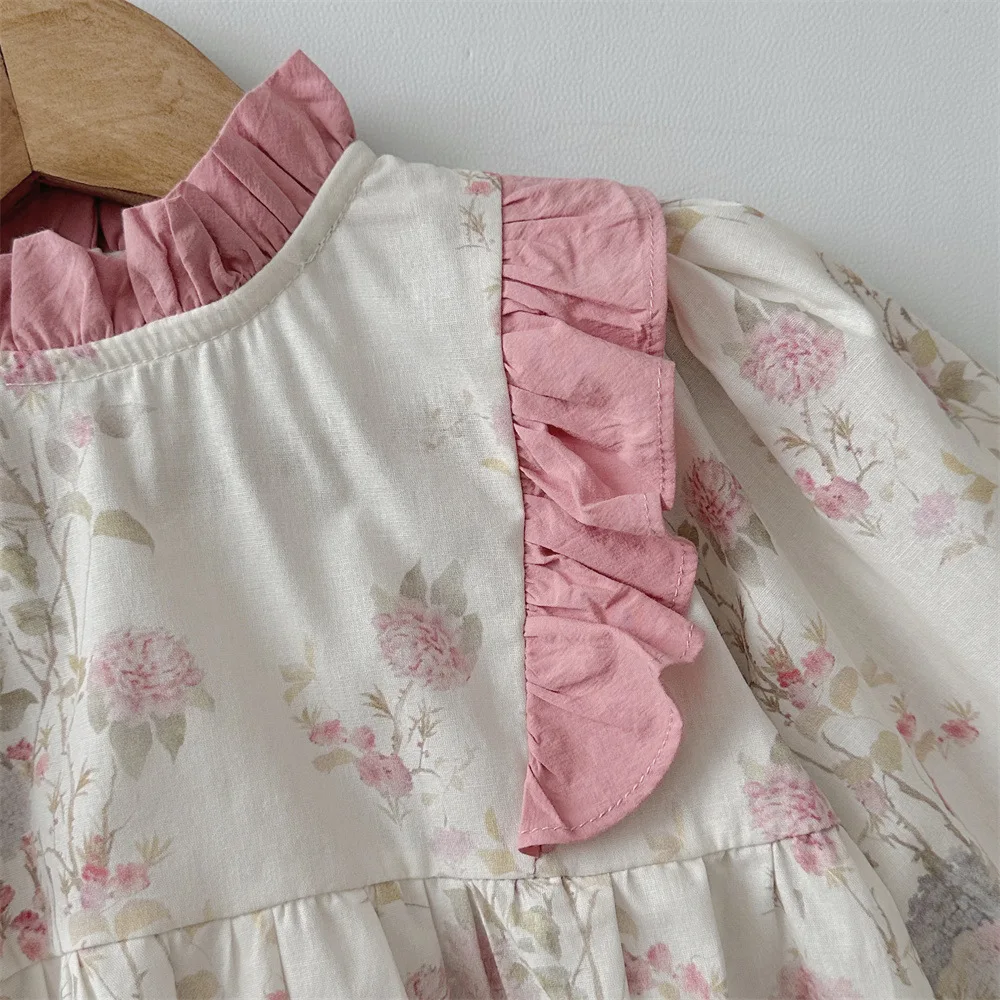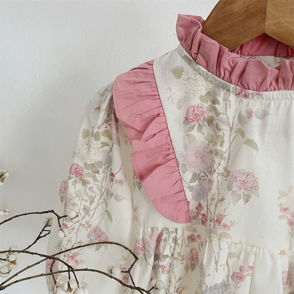 この秋新作の赤ちゃんのための可愛らしいロンパース。長袖で暖かく、お花の柄がとても華やかです。肌に優しいコットン製で、女の子らしいフリルやレースが可愛らしさを引き立たせます。甘いプリンセスのように着飾ることができる、贅沢な一着です。