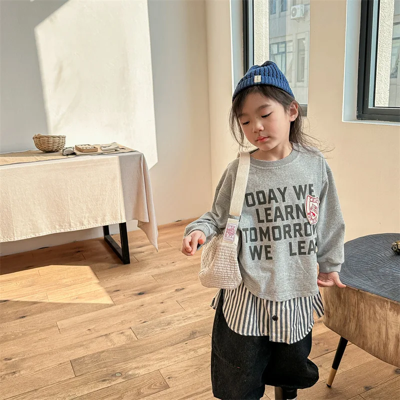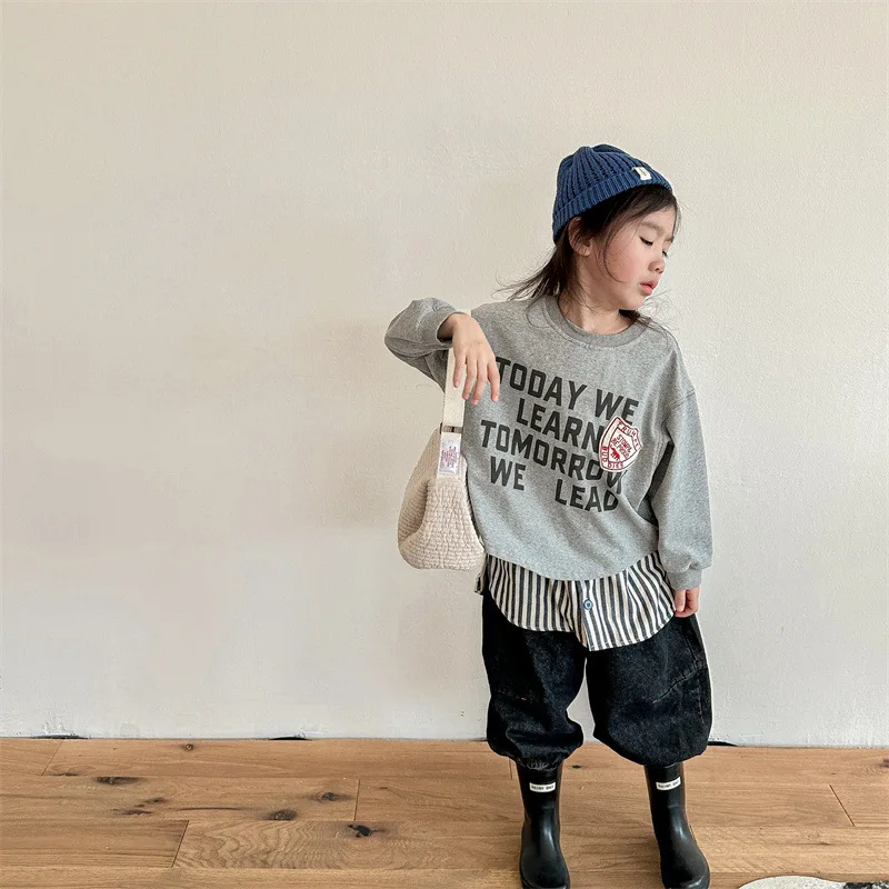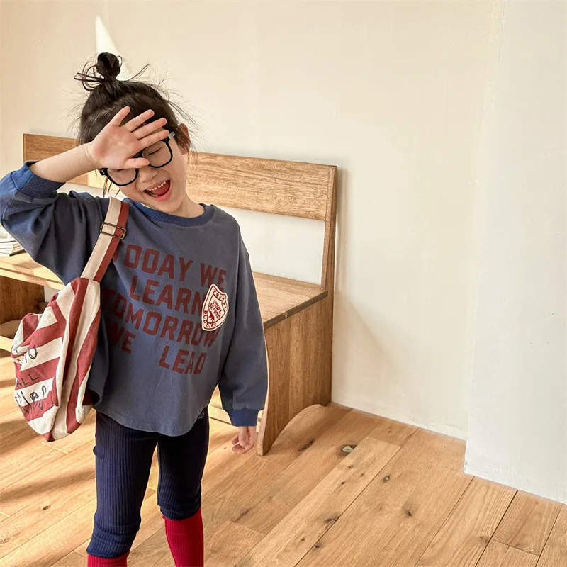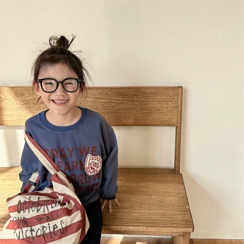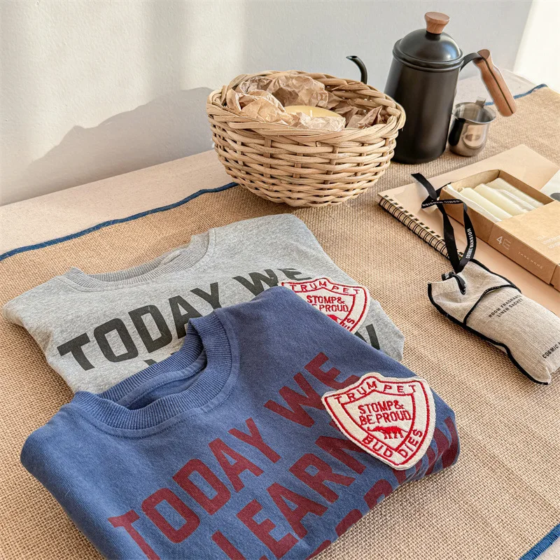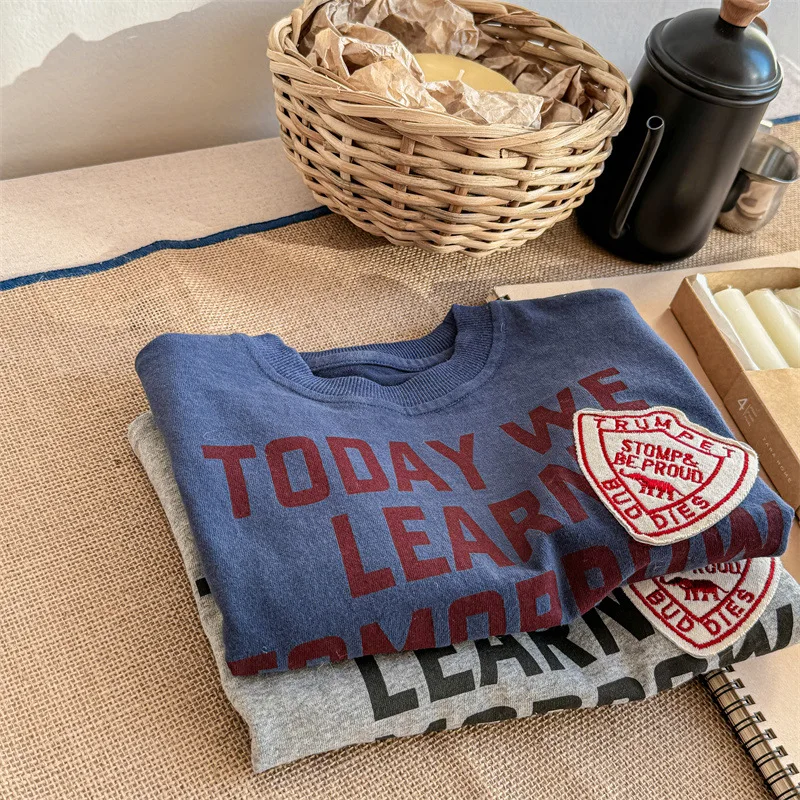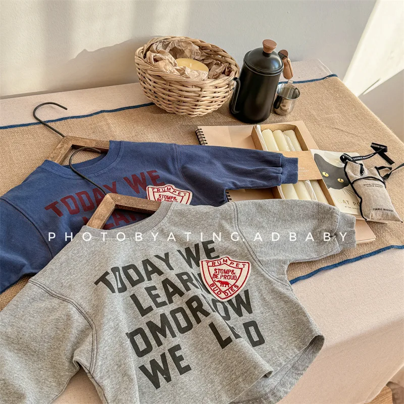 #キッズトップス #スウェットシャツ #長袖Tシャツ #レターロゴ #秋ファッション #レトロスタイル #子供服