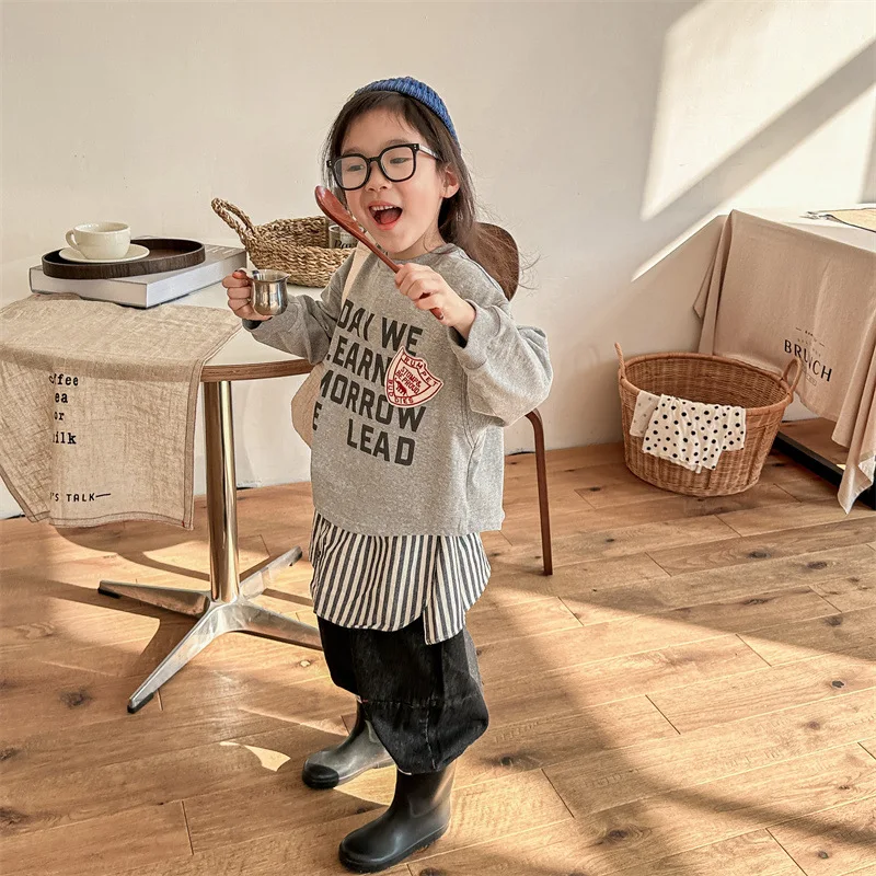 キッズトップス 長袖Tシャツ スウェットシャツ レターロゴプリント 2カラー【mh0006559】