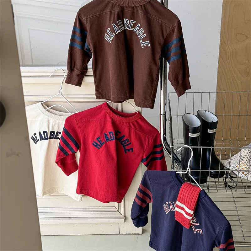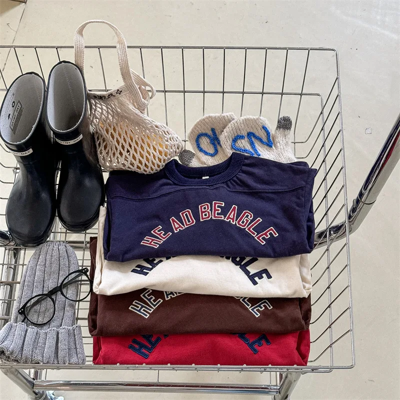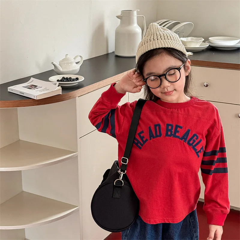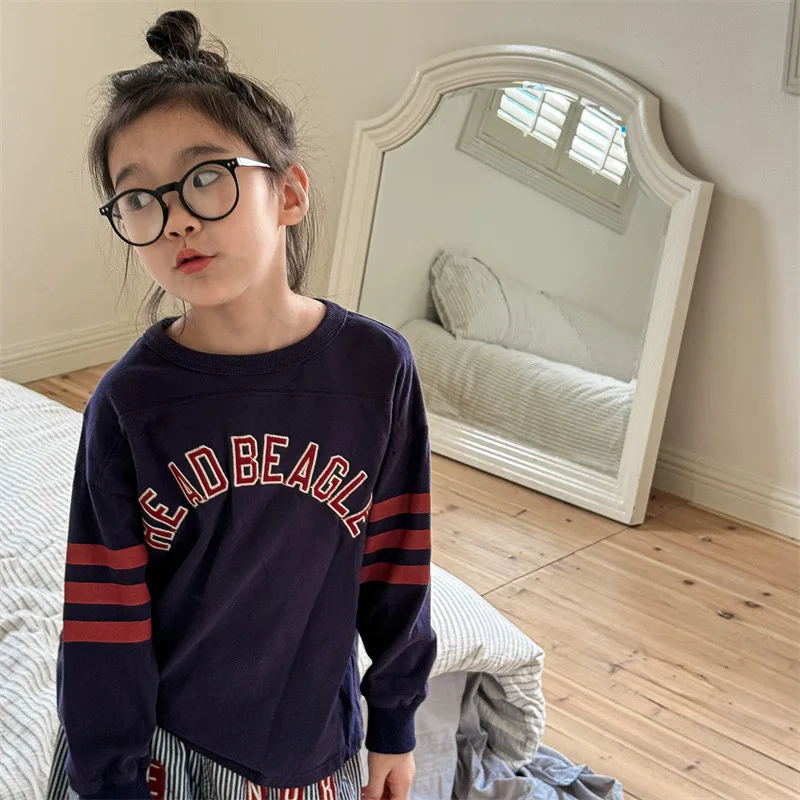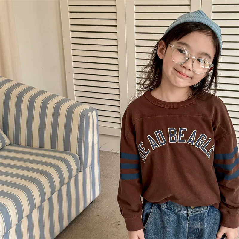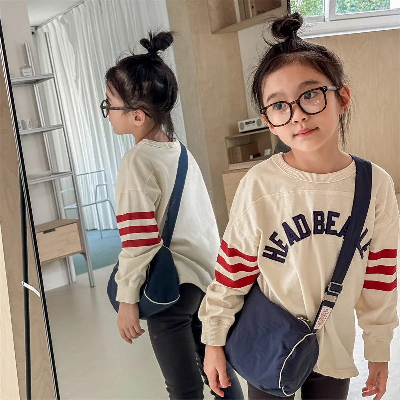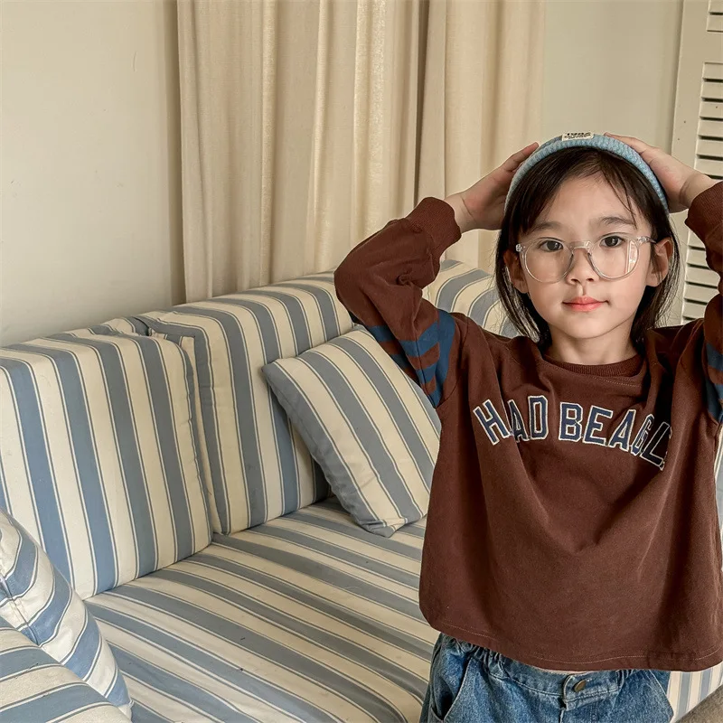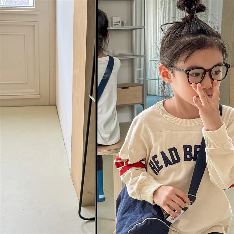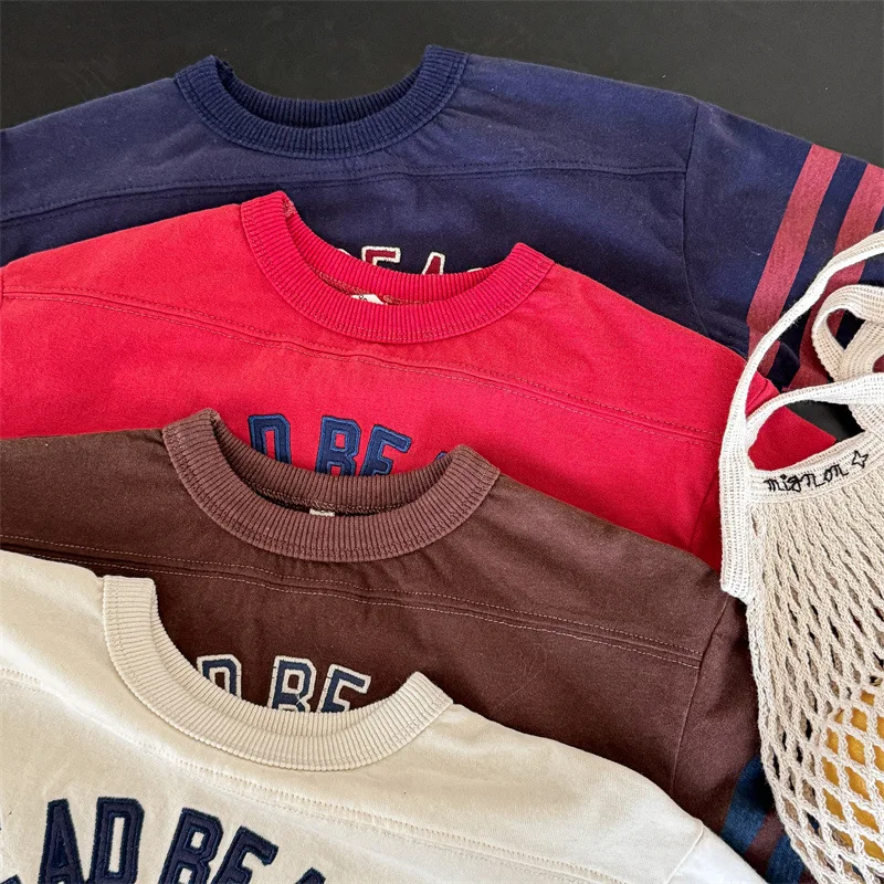#キッズトップス #レターロゴ刺繍 #子供服 #長袖Tシャツ #カジュアルスタイル #コットントップス