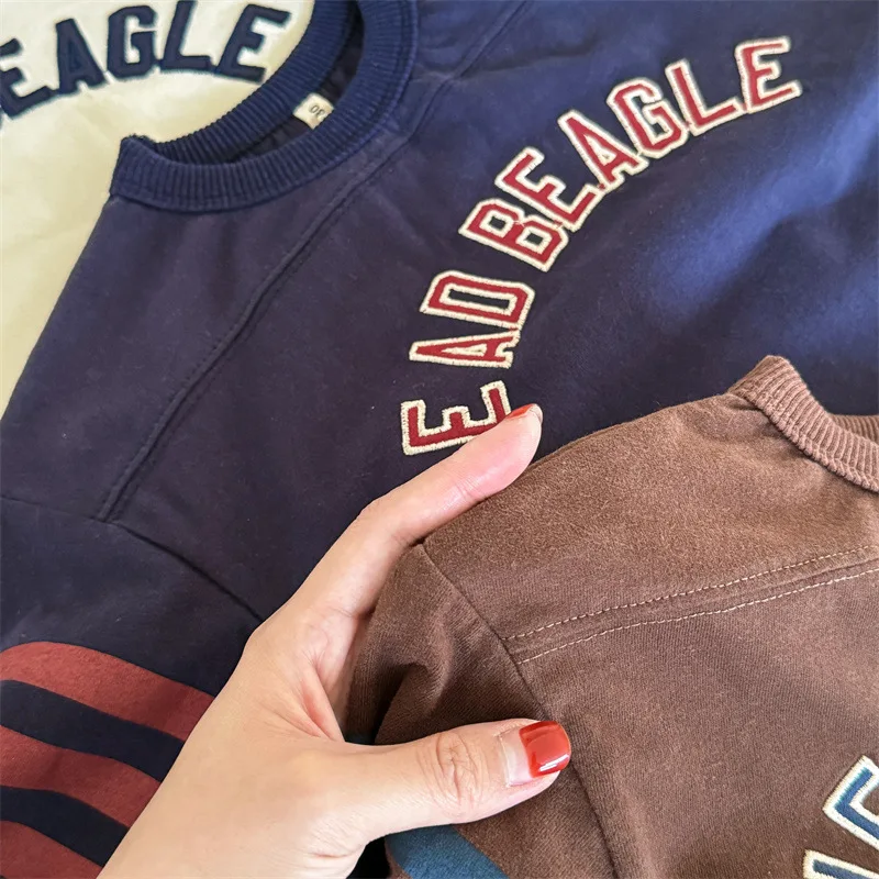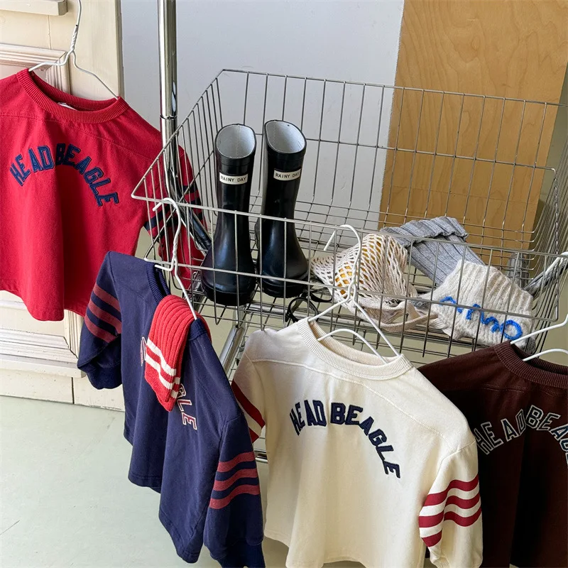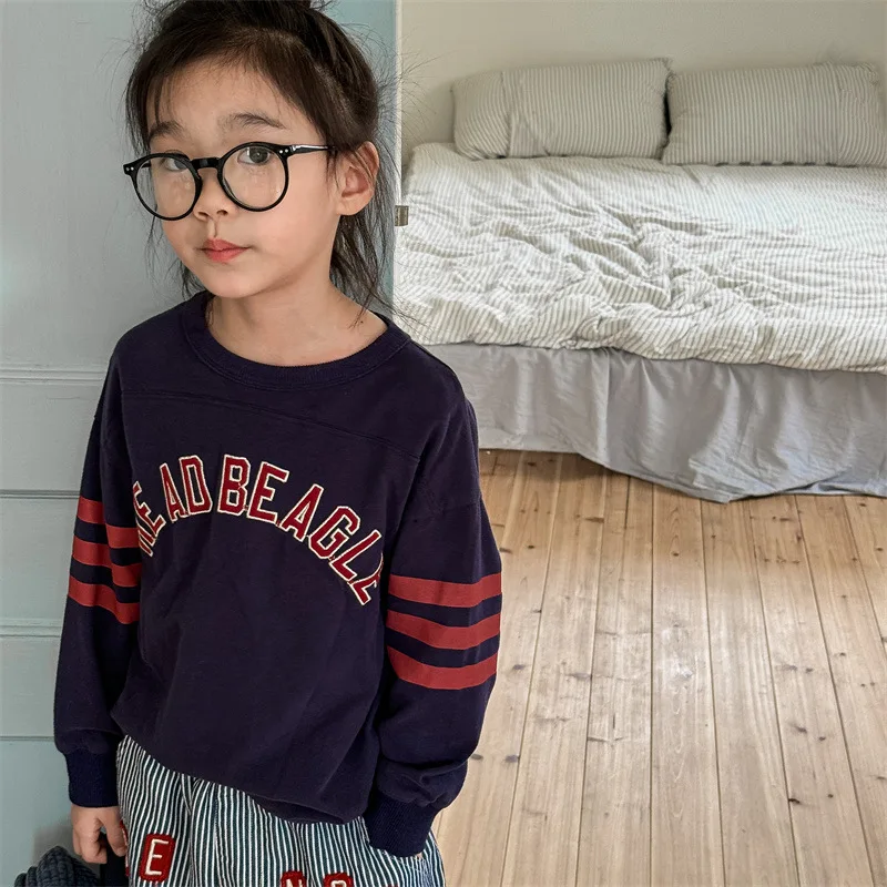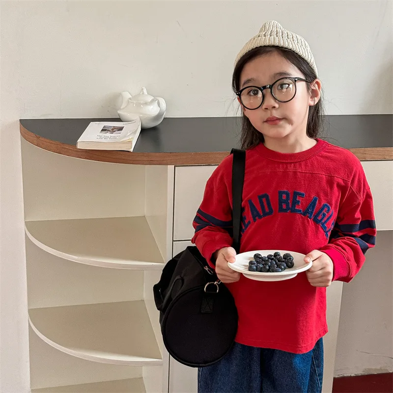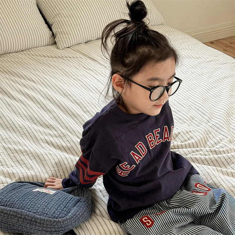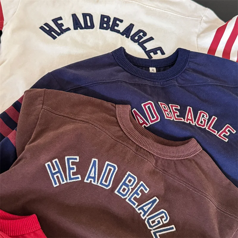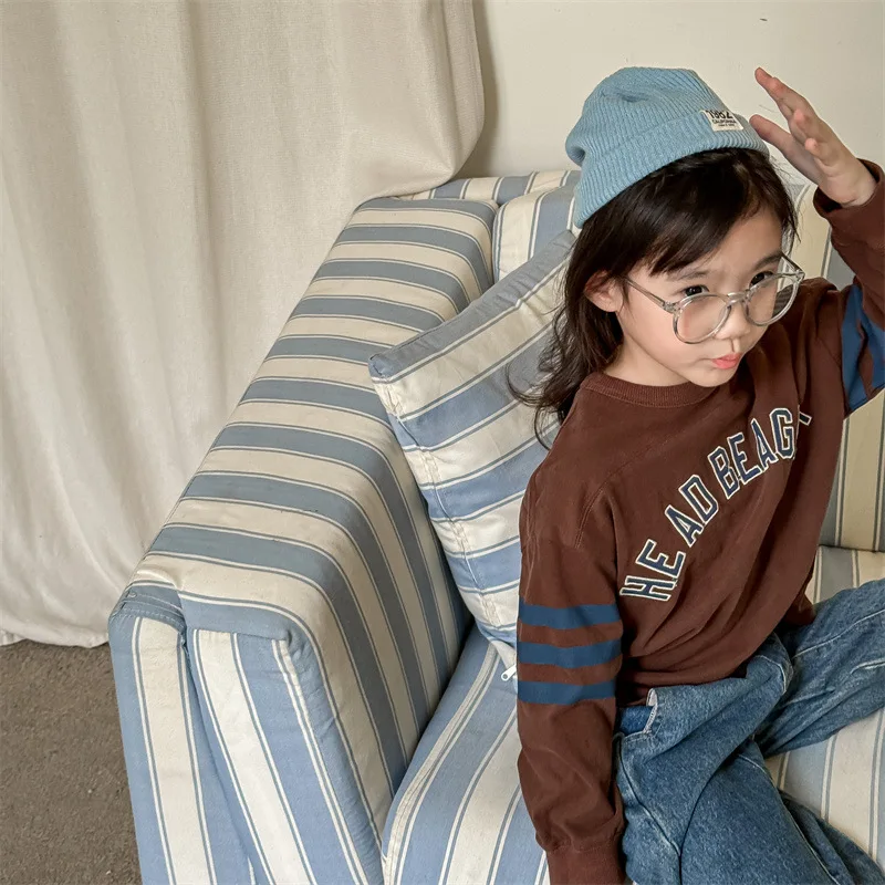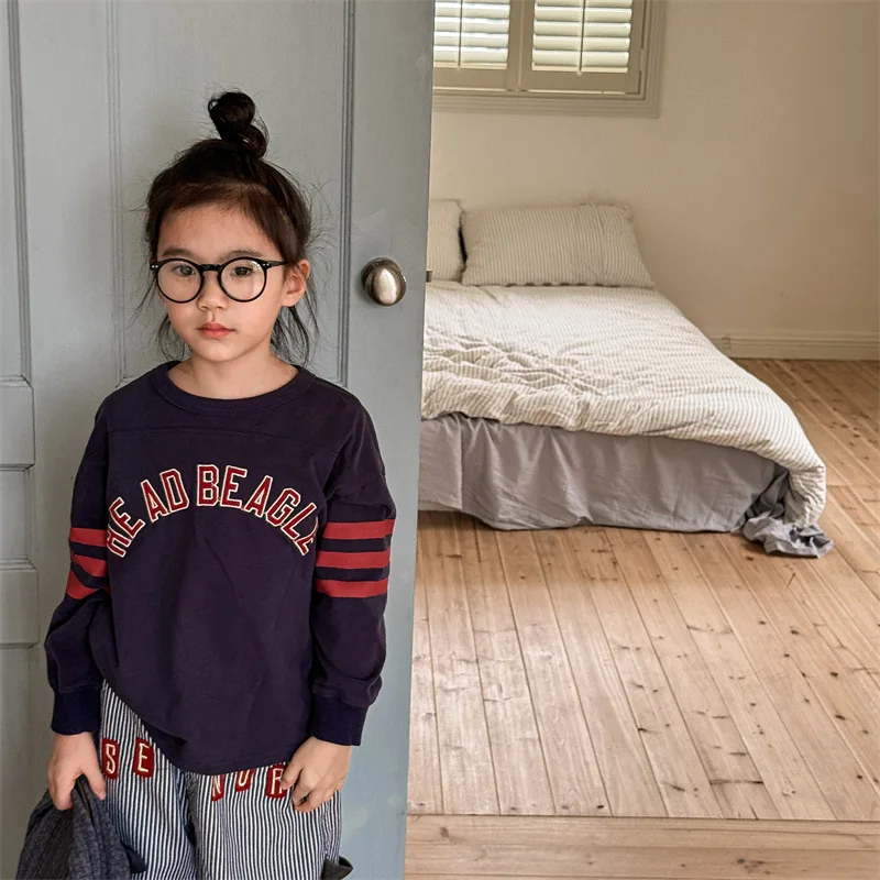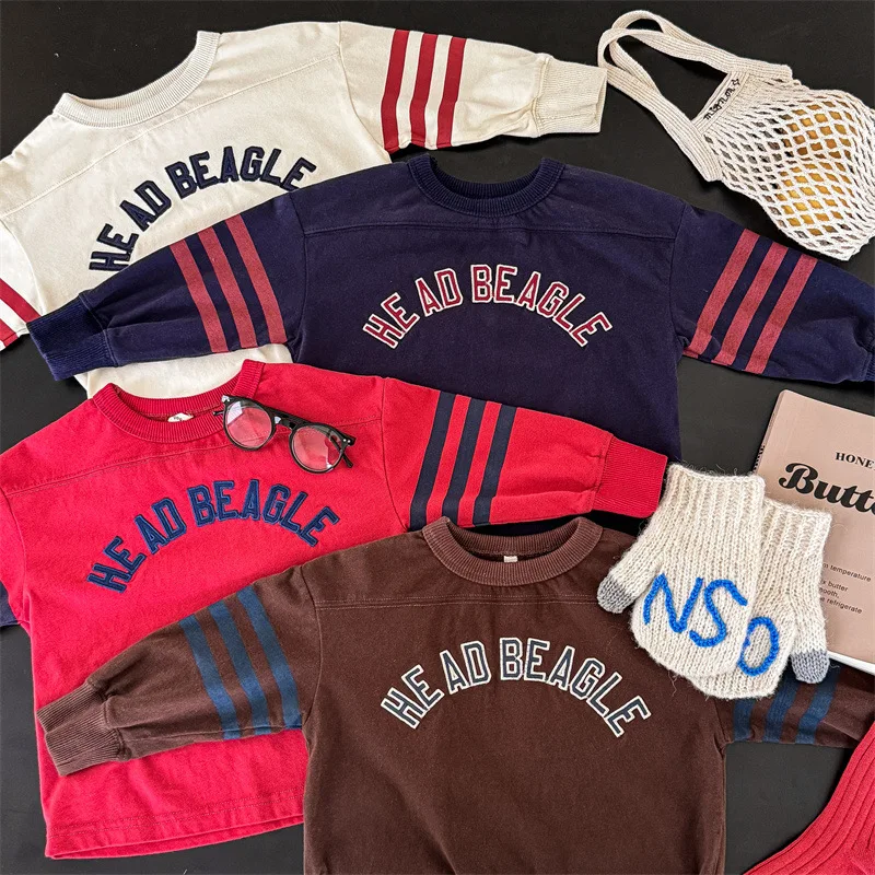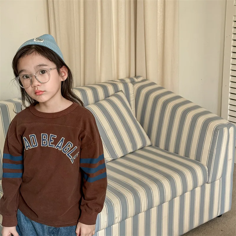 #キッズトップス #レターロゴ刺繍 #子供服 #長袖Tシャツ #カジュアルスタイル #コットントップス