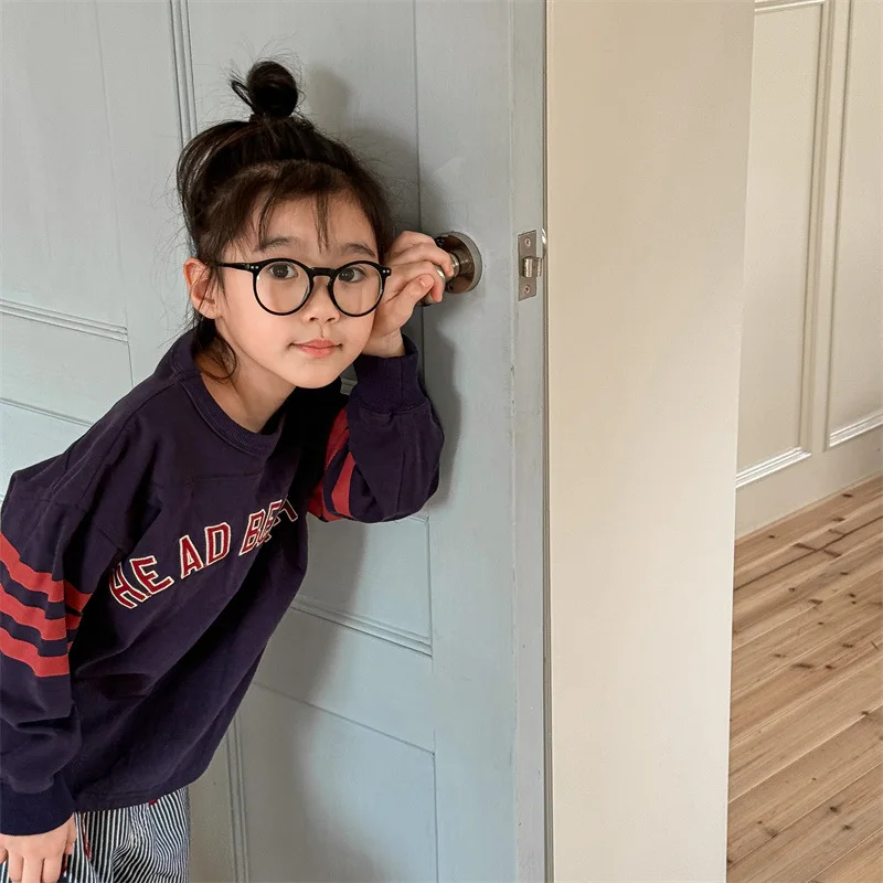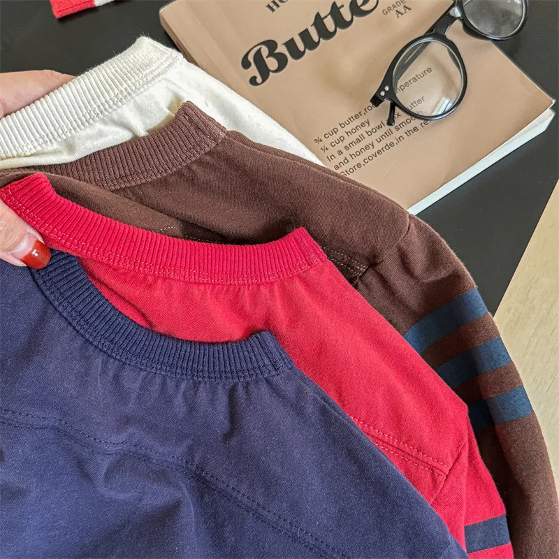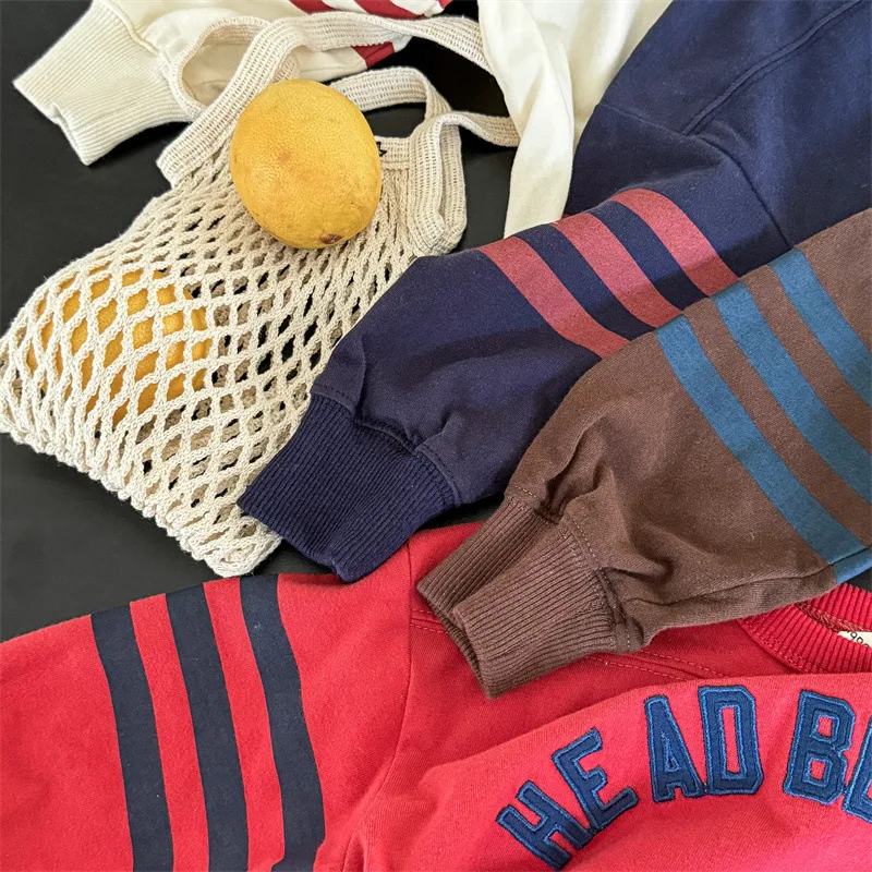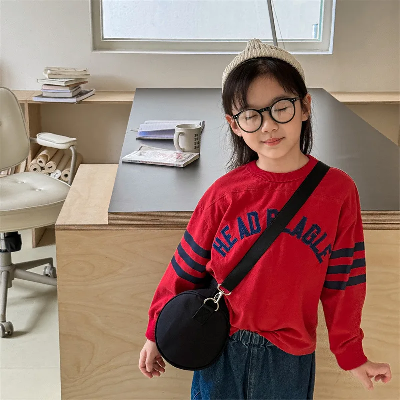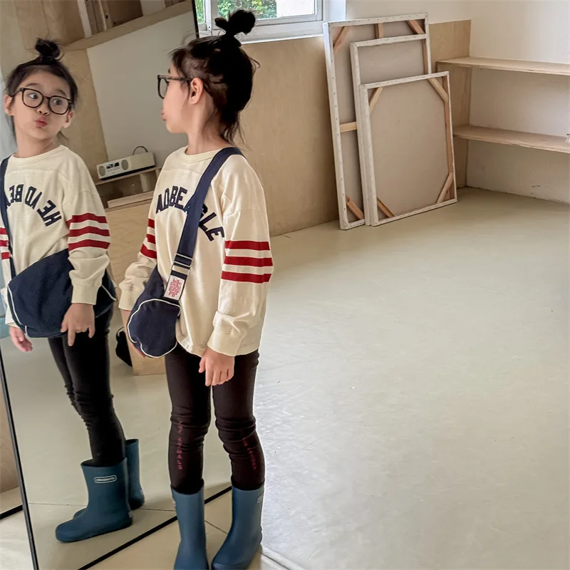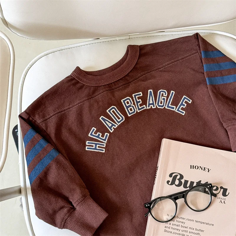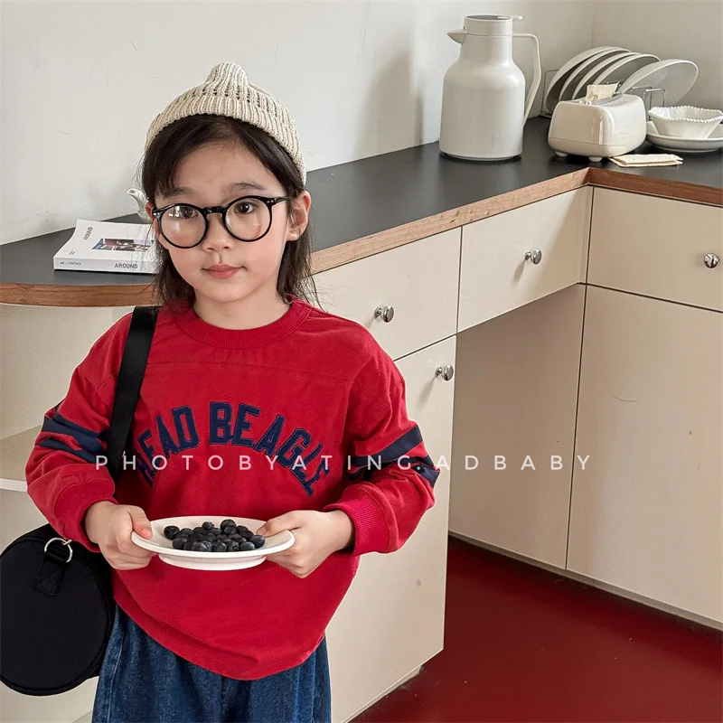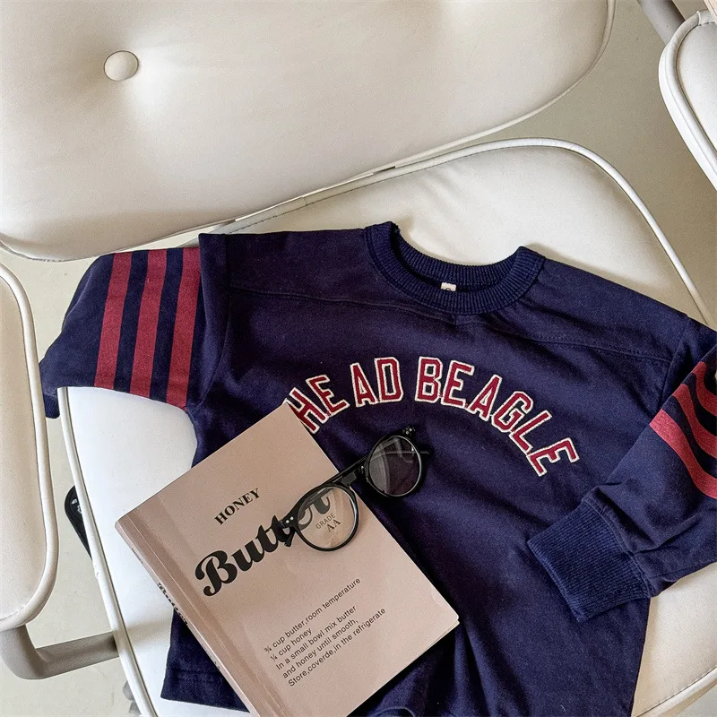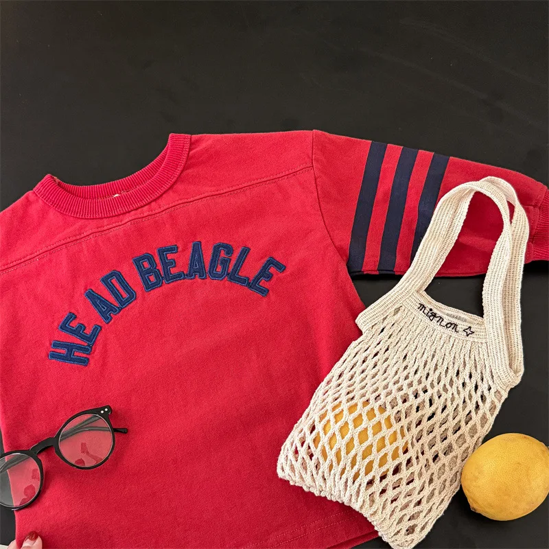 #キッズトップス #レターロゴ刺繍 #子供服 #長袖Tシャツ #カジュアルスタイル #コットントップス