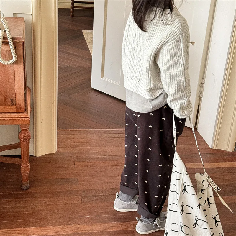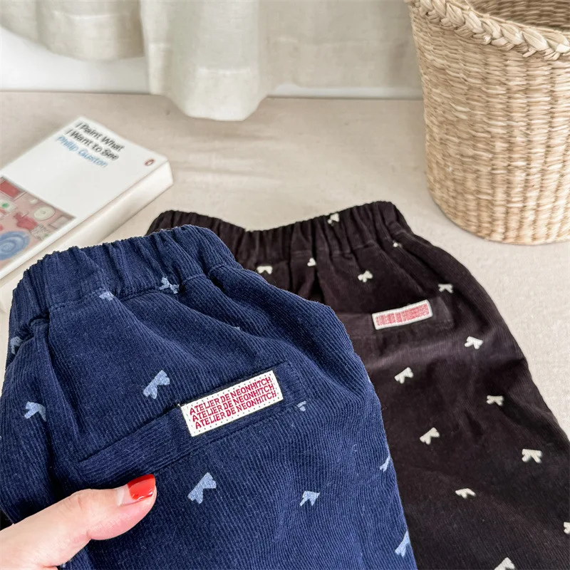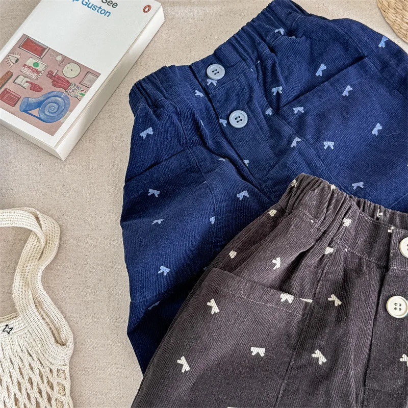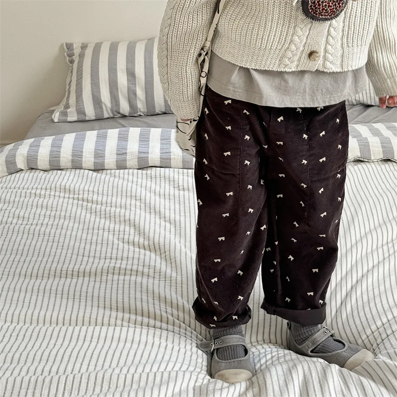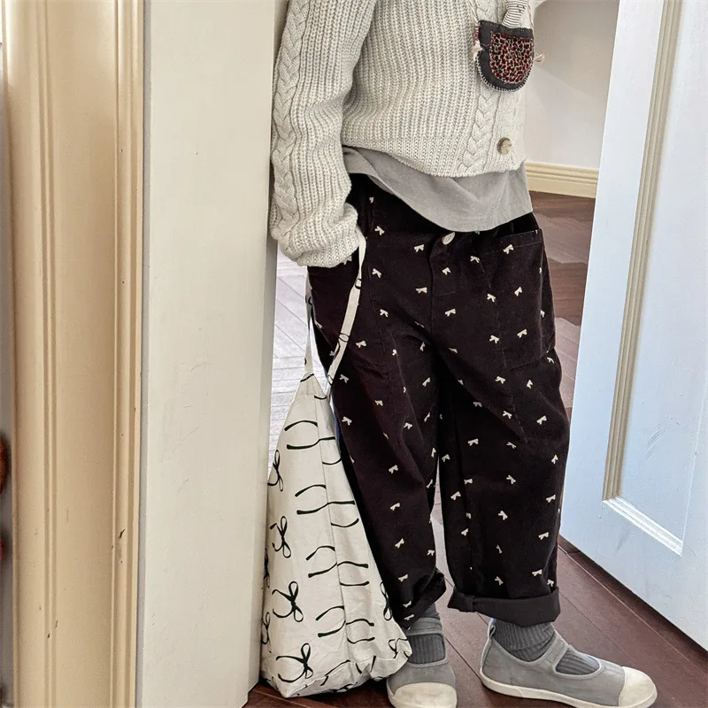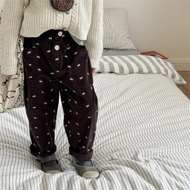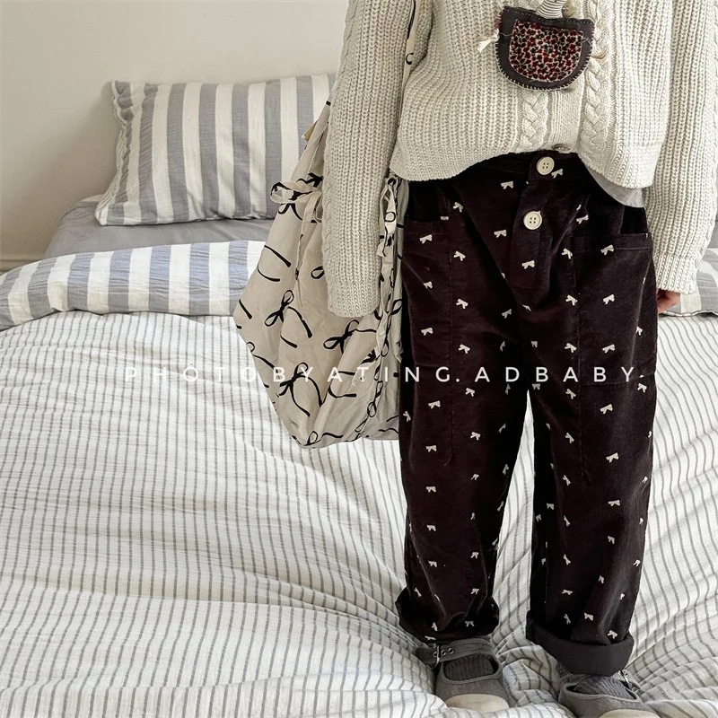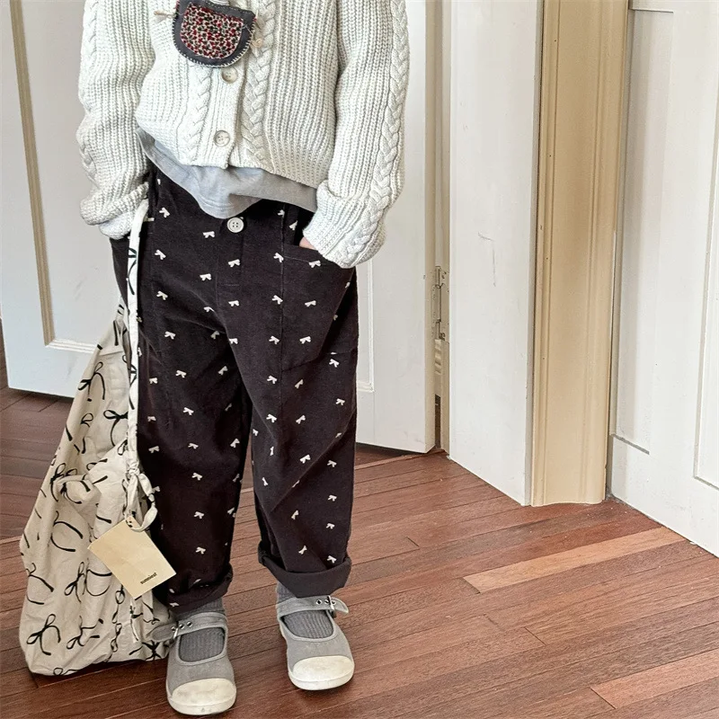 #キッズパンツ #リボンプリント #コーデュロイパンツ #子供服 #カジュアルスタイル #ルーズパンツ