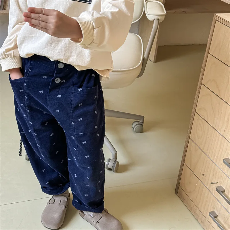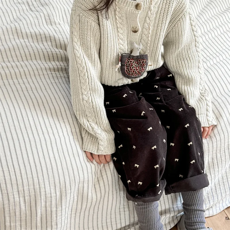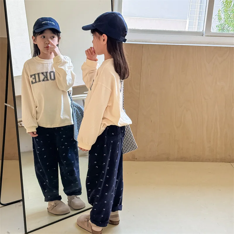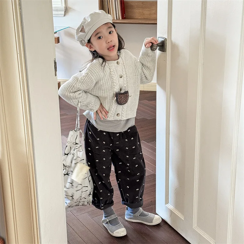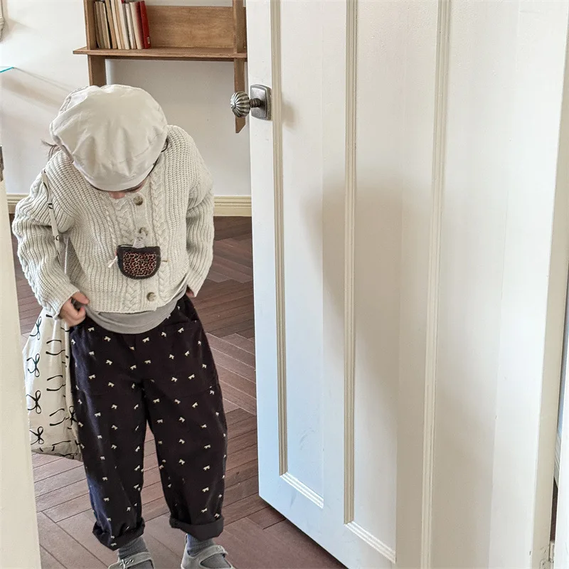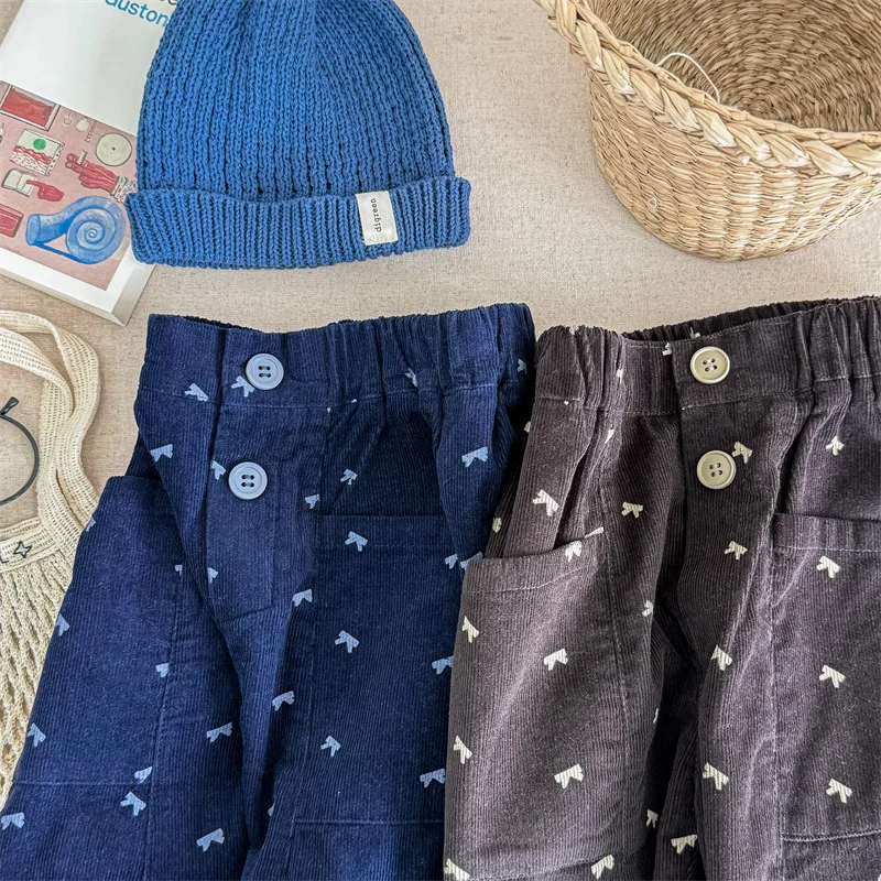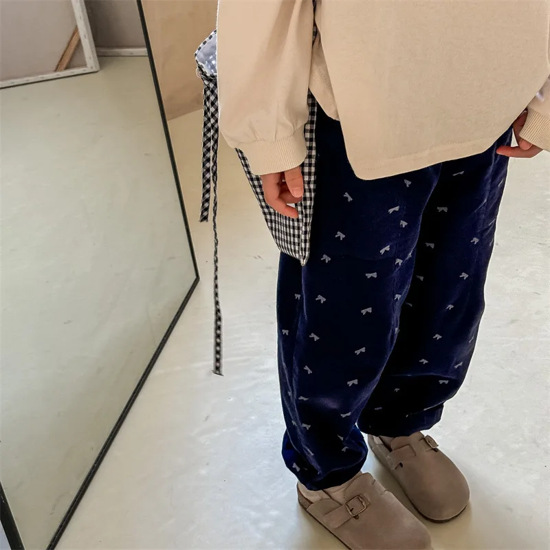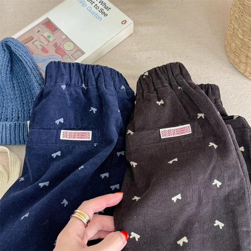 #キッズパンツ #リボンプリント #コーデュロイパンツ #子供服 #カジュアルスタイル #ルーズパンツ
