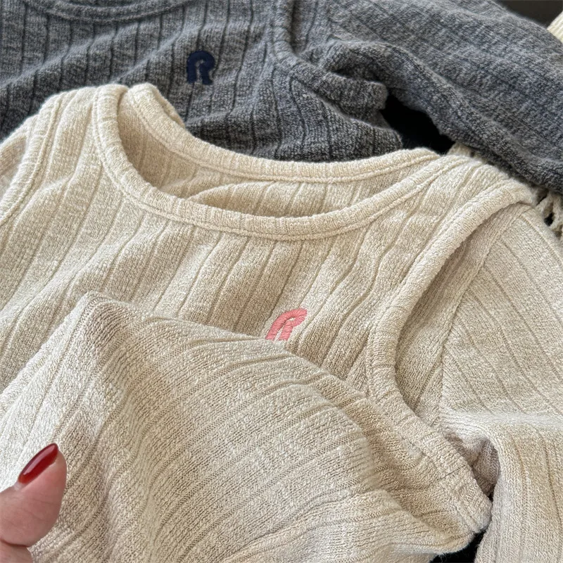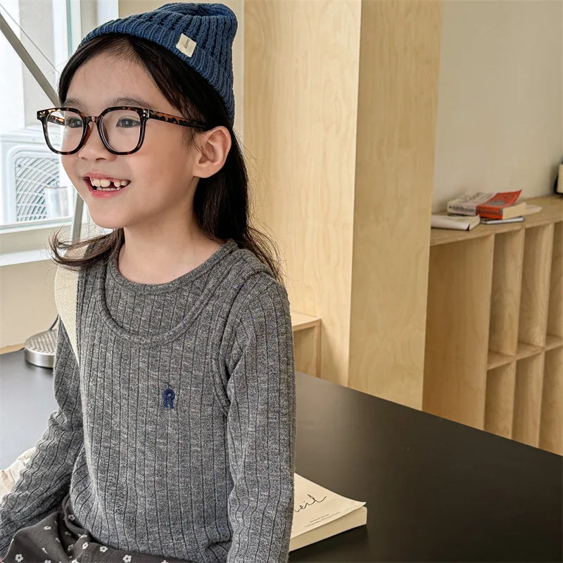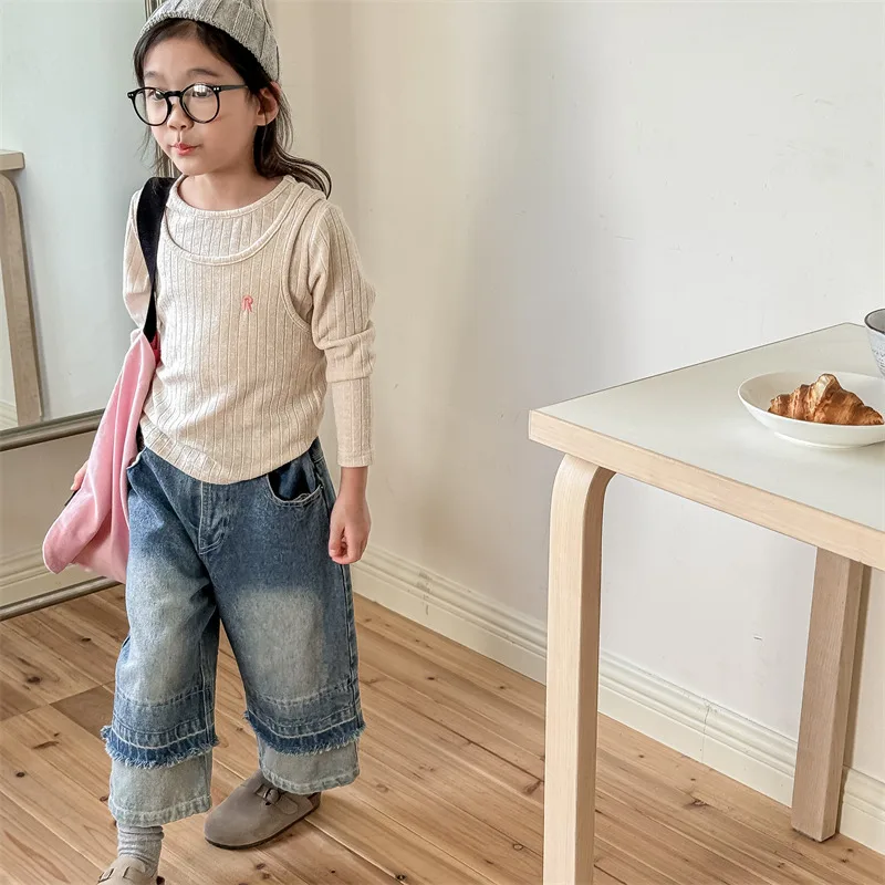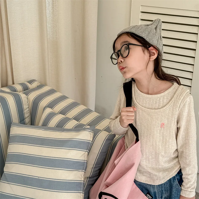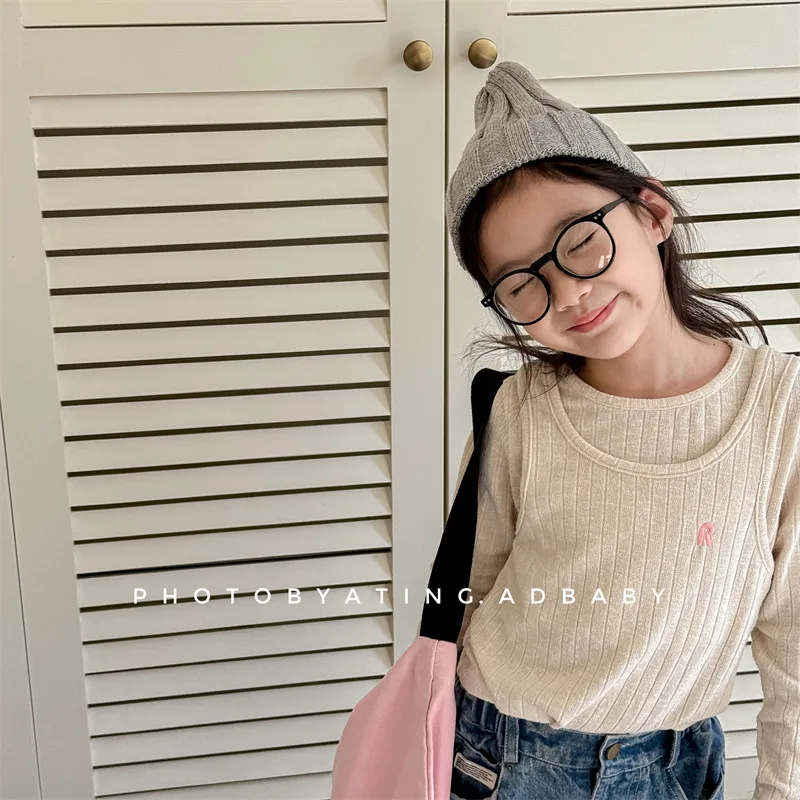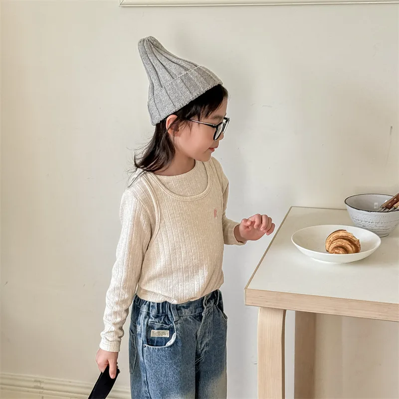 #キッズトップス #ニットカットソー #フェイク2ピース #子供服 #長袖Tシャツ #カジュアルスタイル