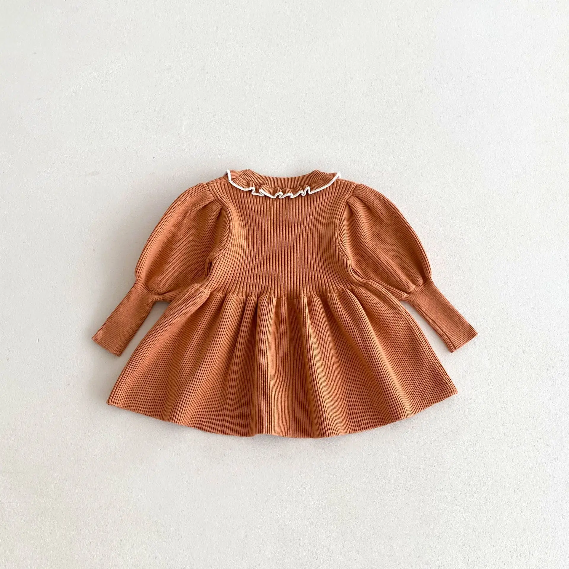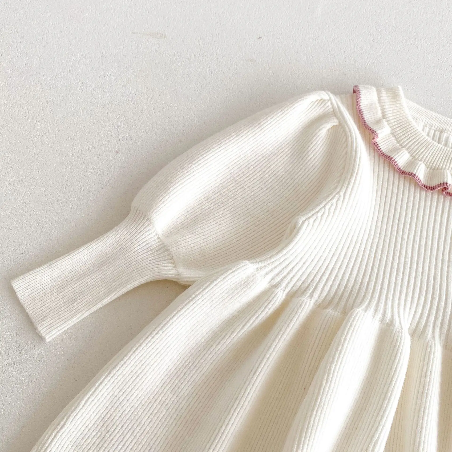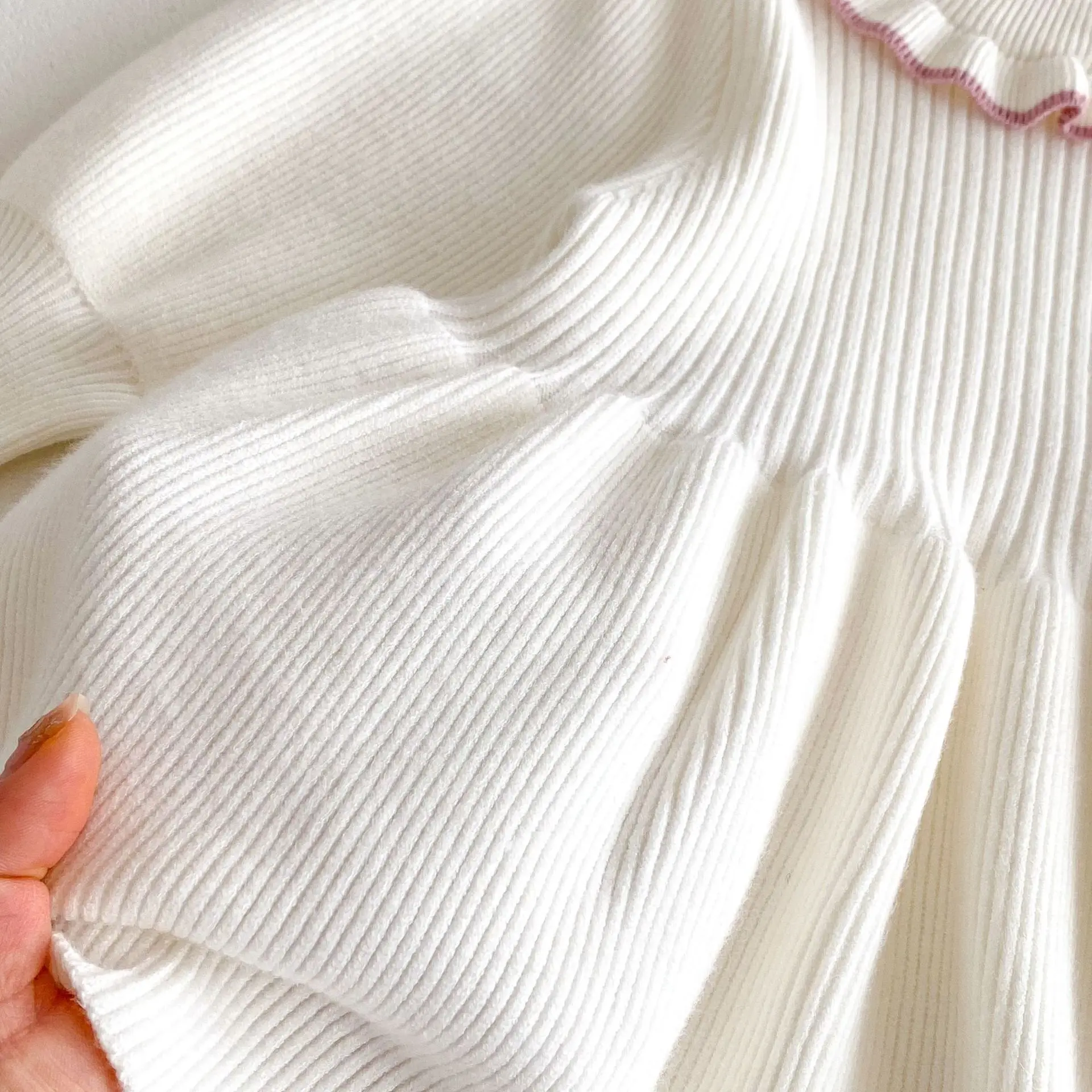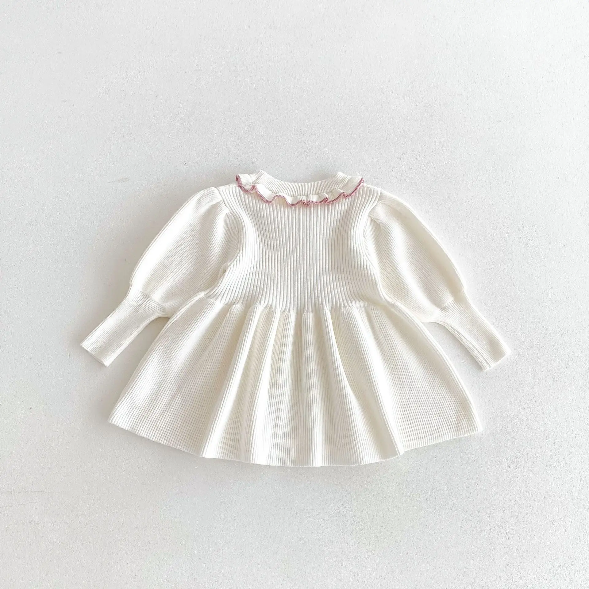 #キッズワンピース #ニットワンピース #パフスリーブ #レース襟 #子供服 #カジュアルスタイル #おしゃれキッズ