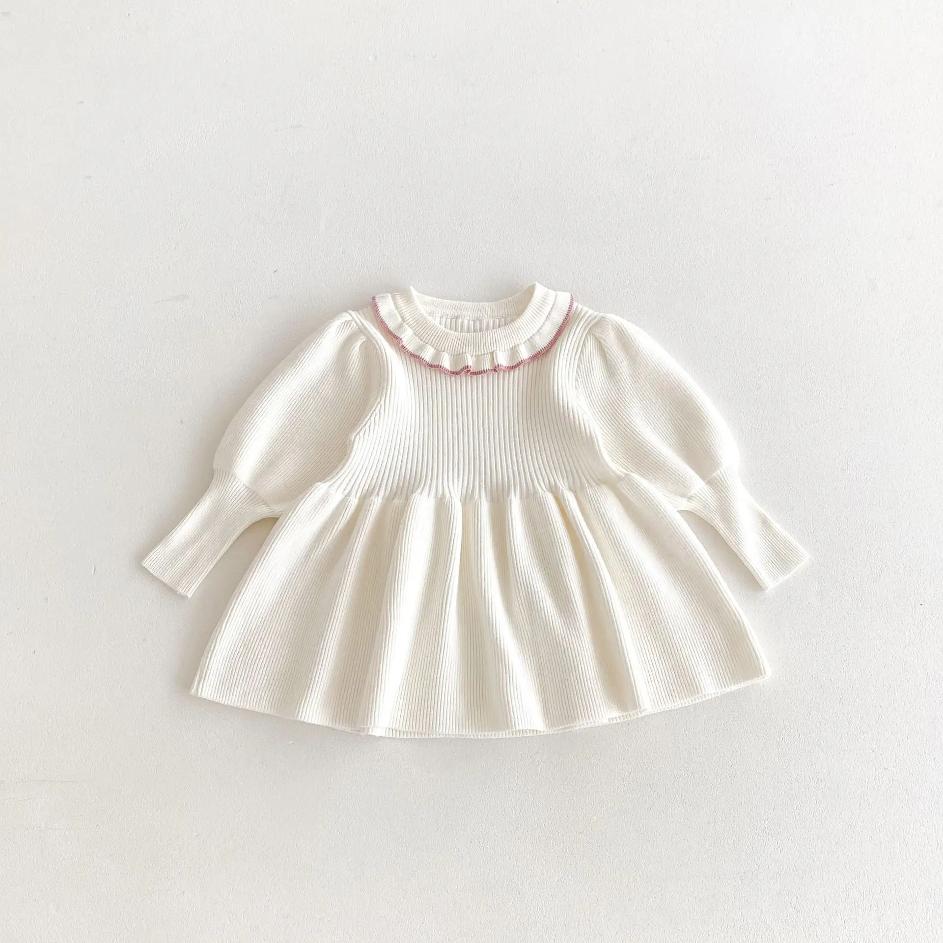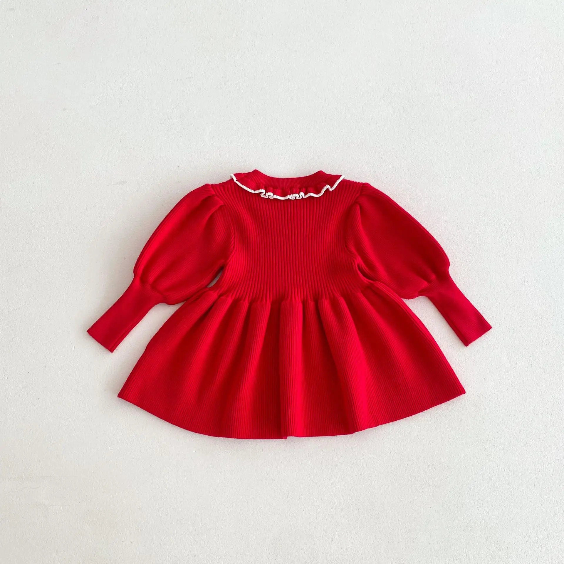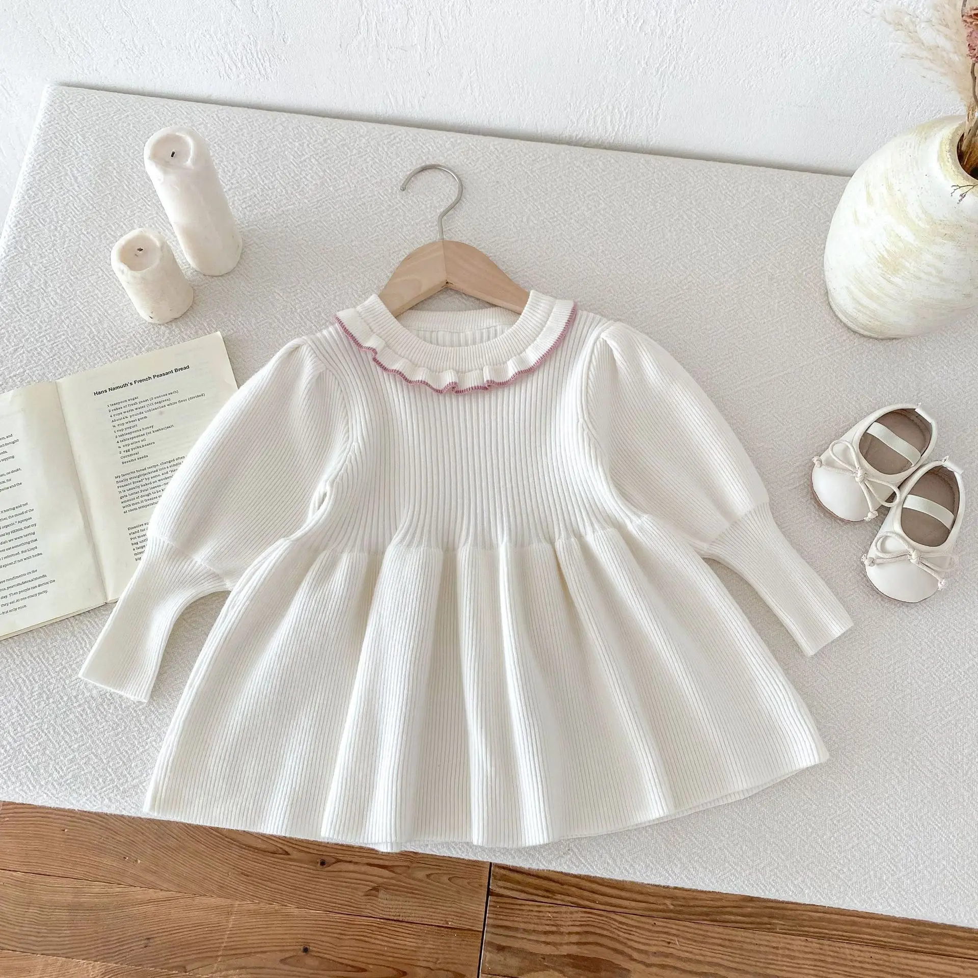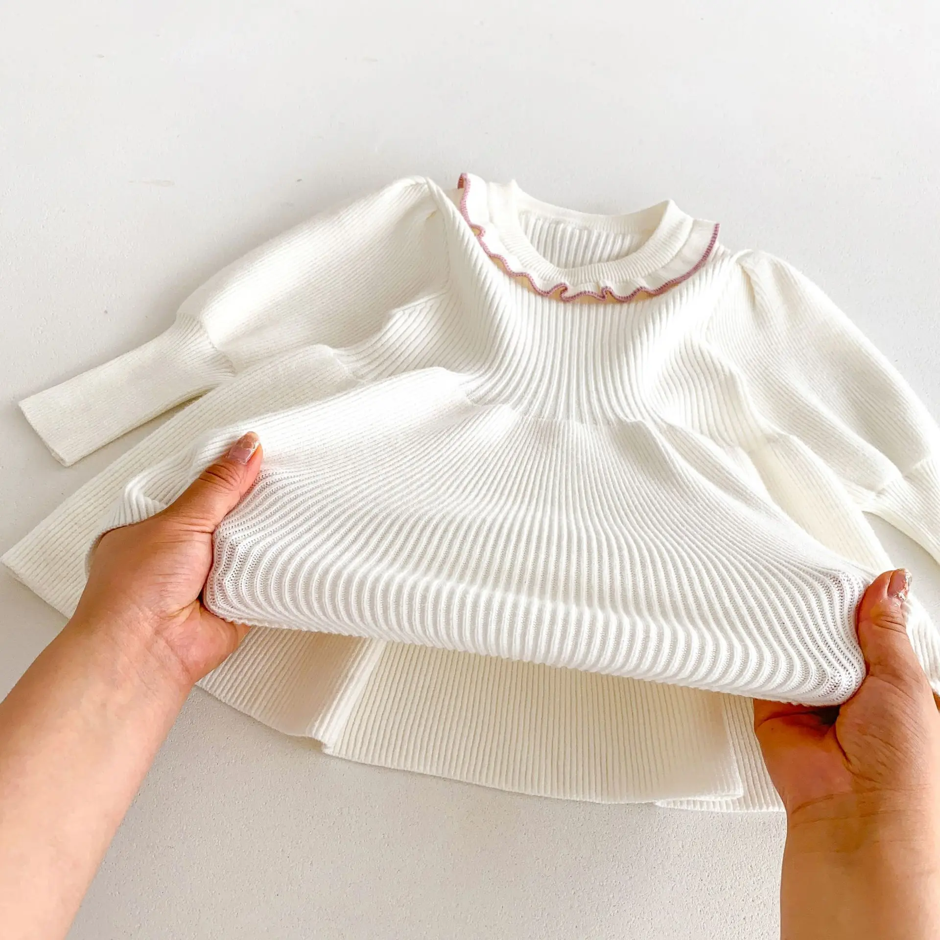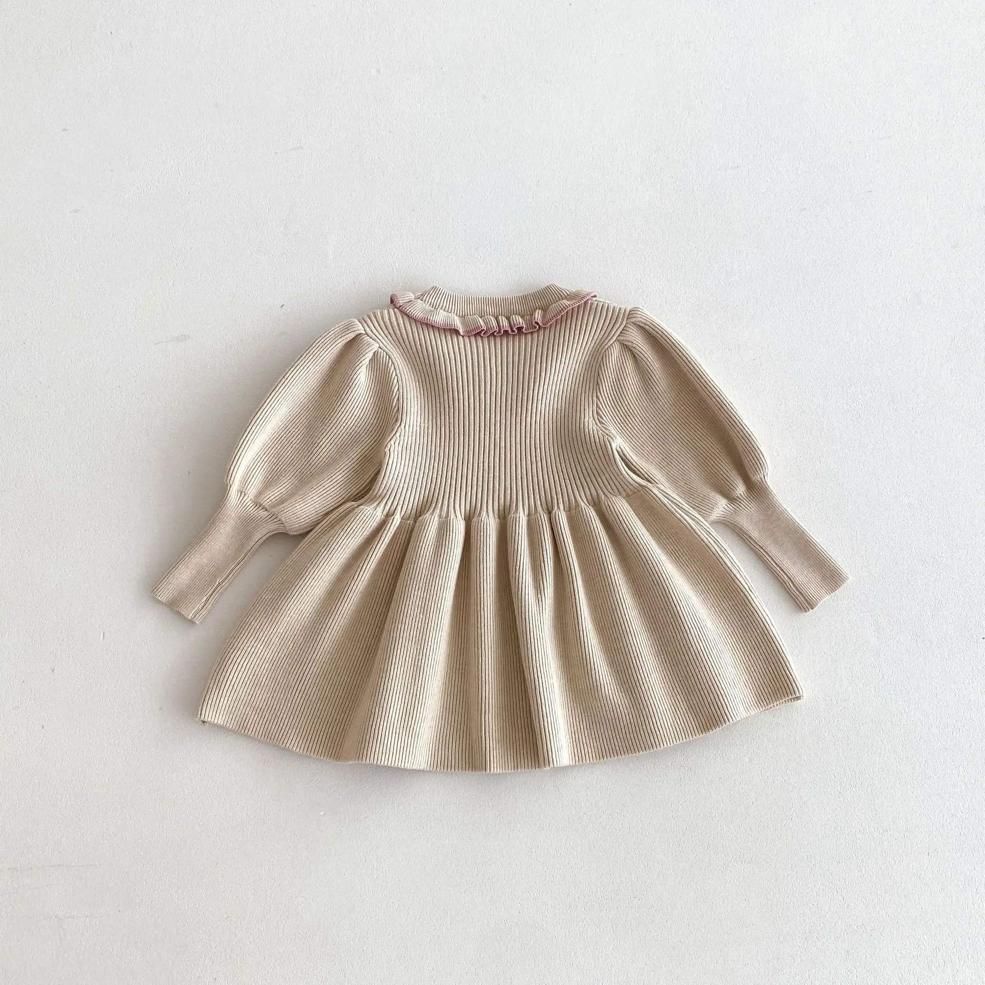 #キッズワンピース #ニットワンピース #パフスリーブ #レース襟 #子供服 #カジュアルスタイル #おしゃれキッズ