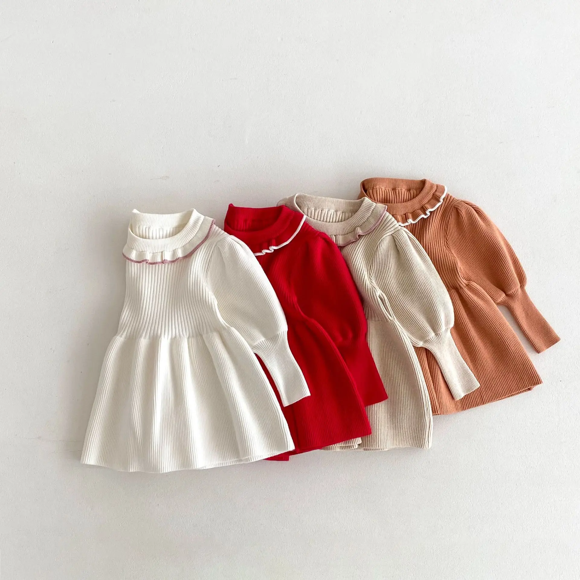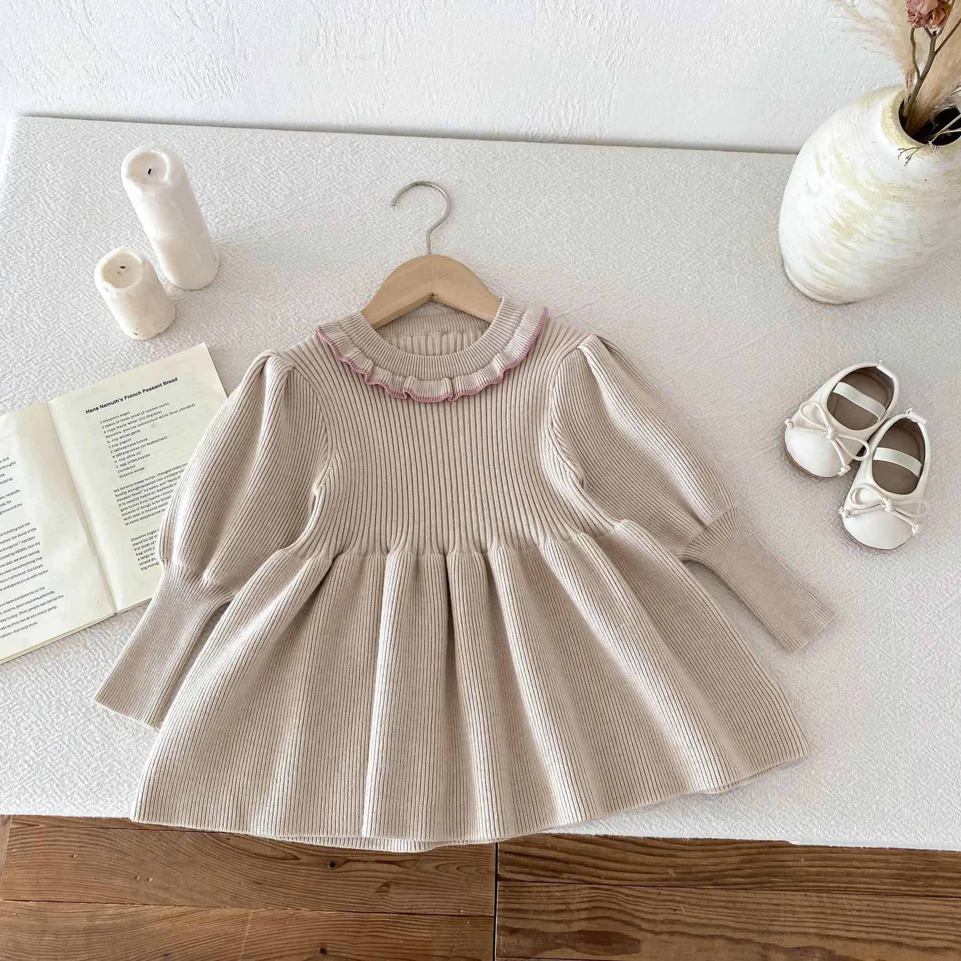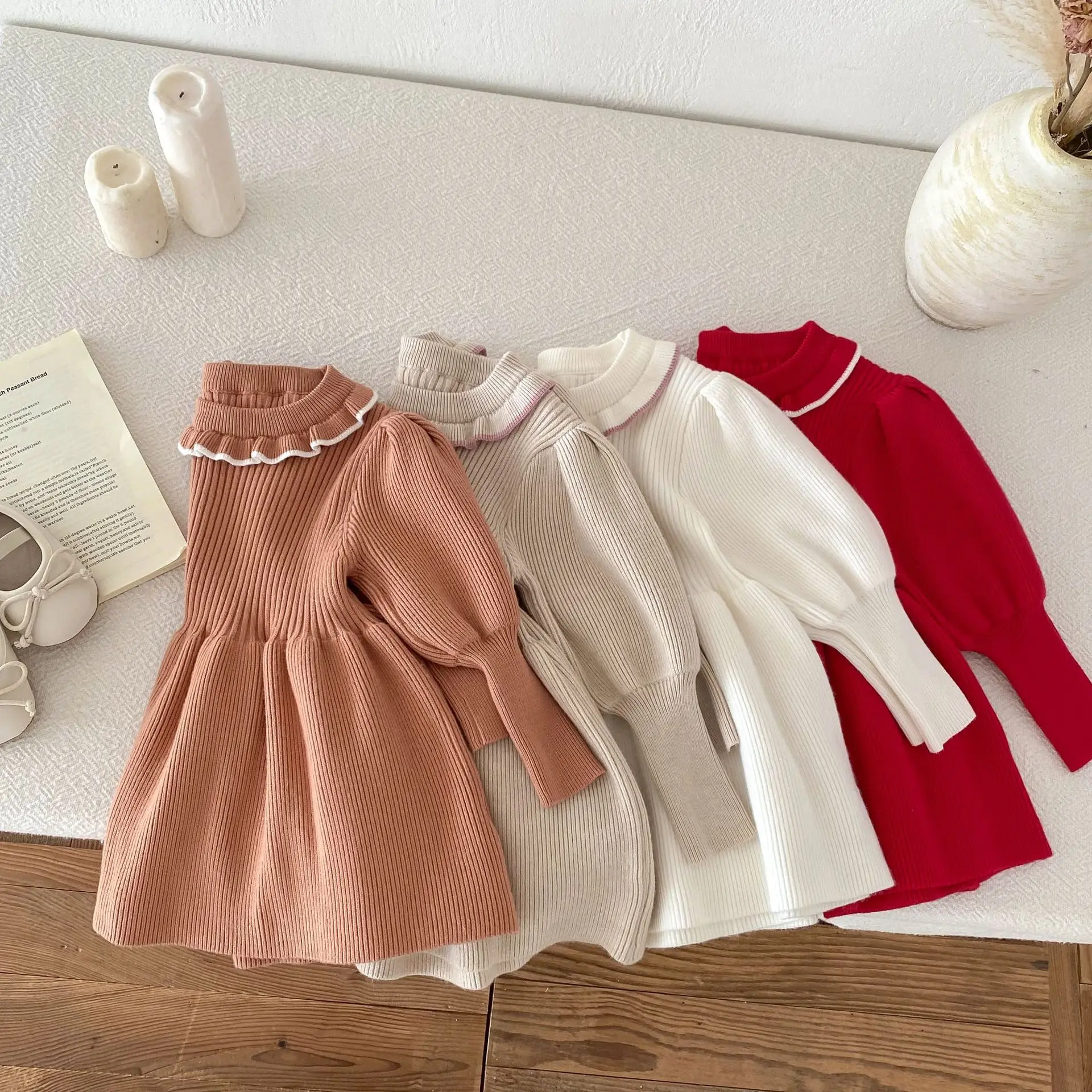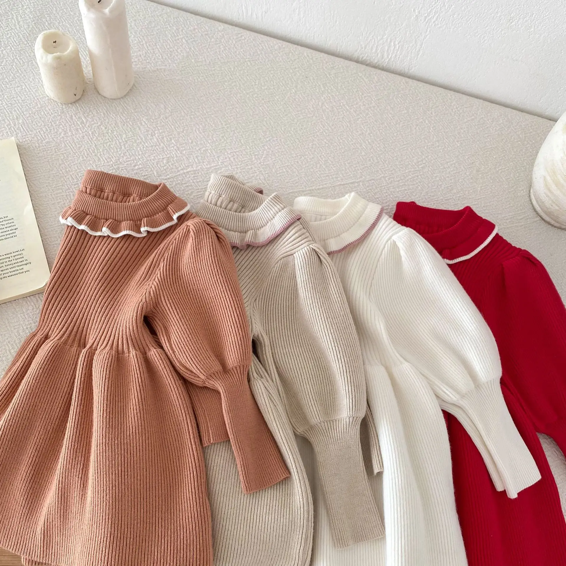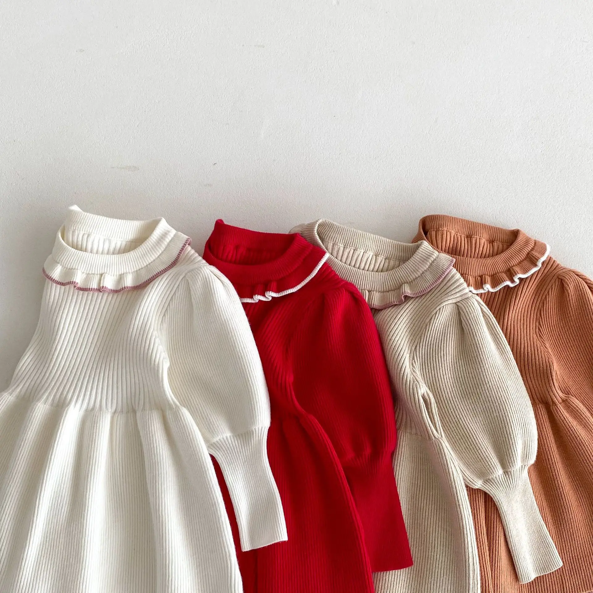 キッズワンピース ニット 長袖パフスリーブワンピース 4カラー【mh0006628】