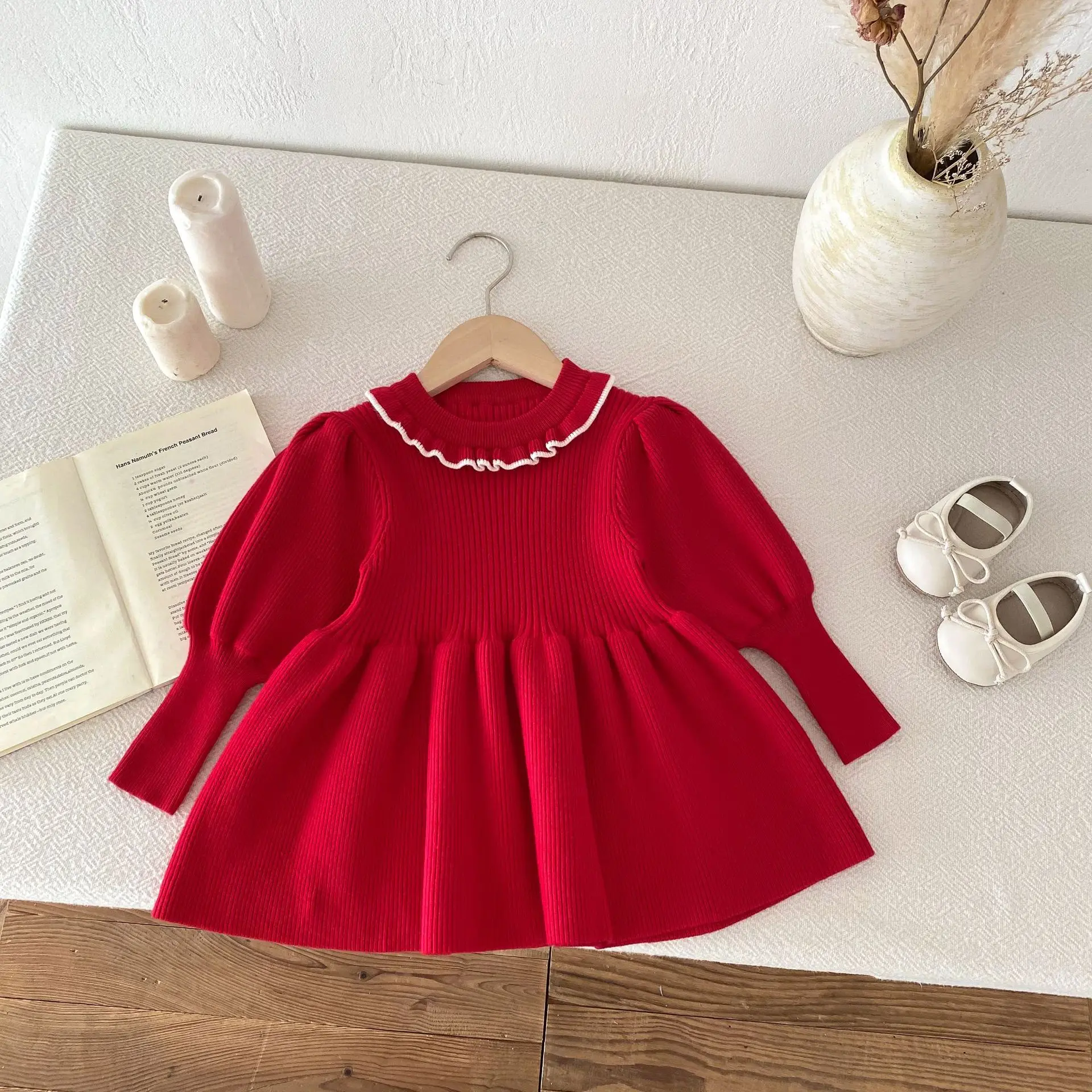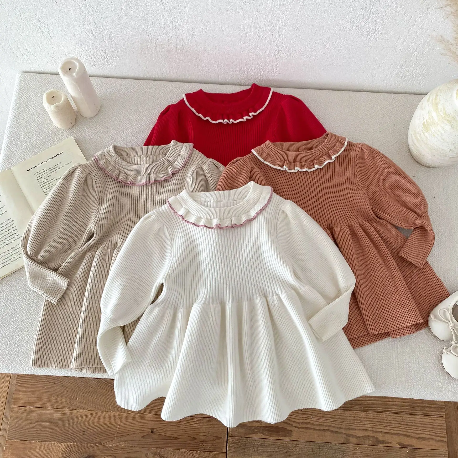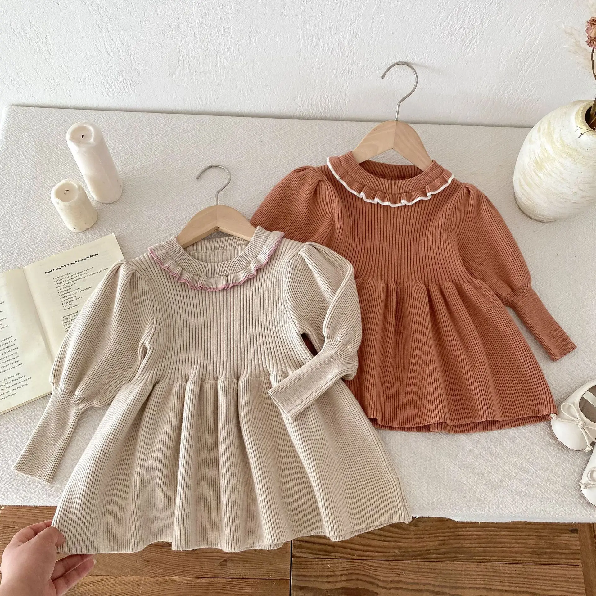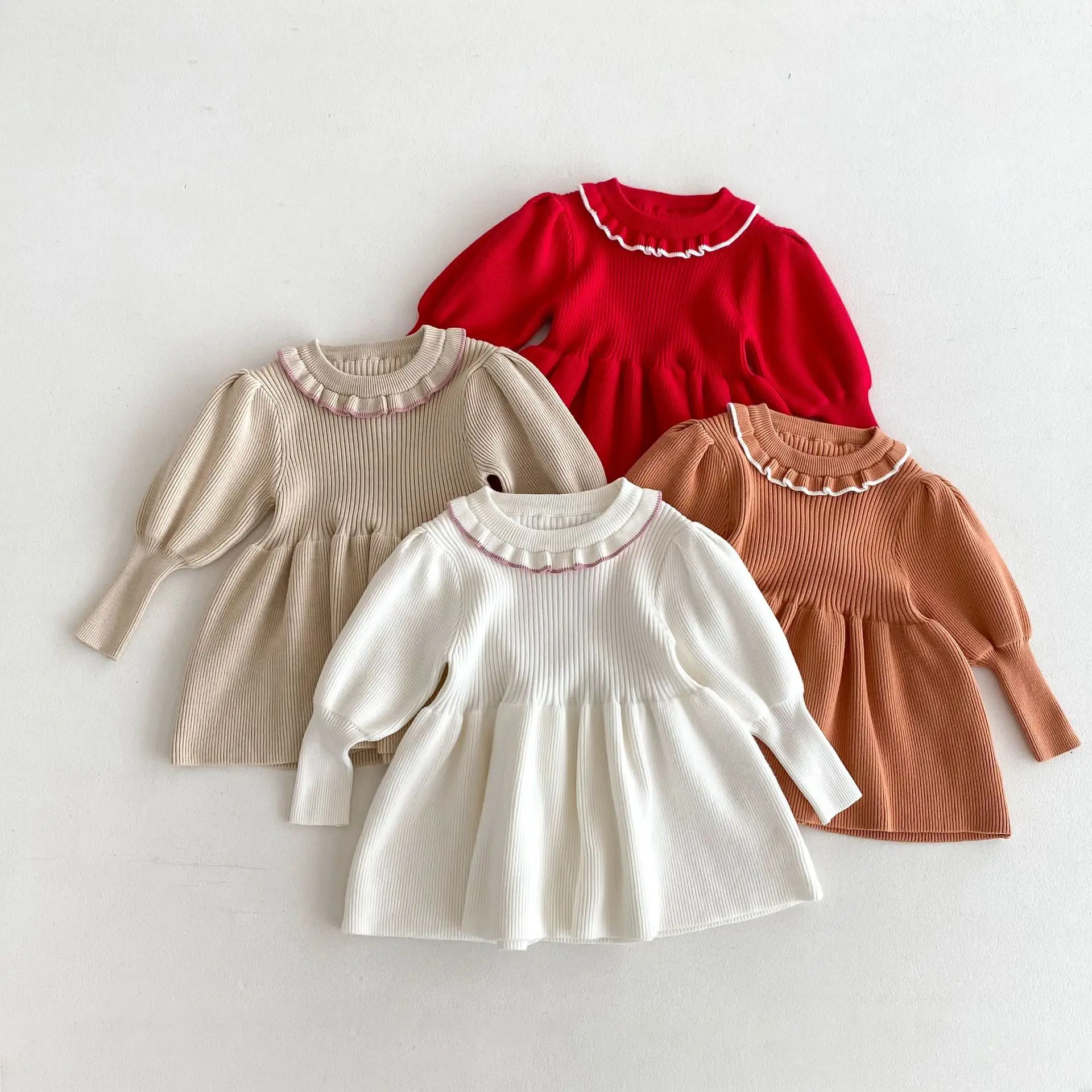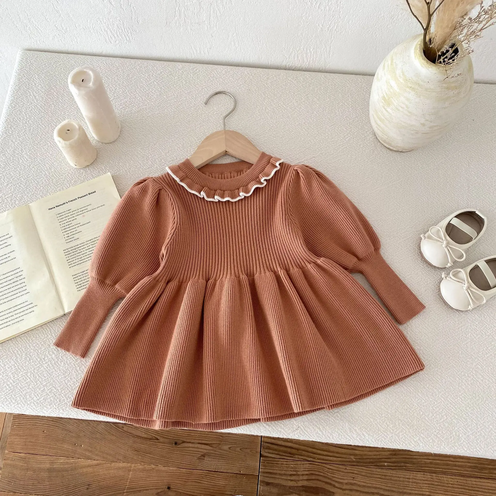 キッズワンピース ニット 長袖パフスリーブワンピース 4カラー【mh0006628】