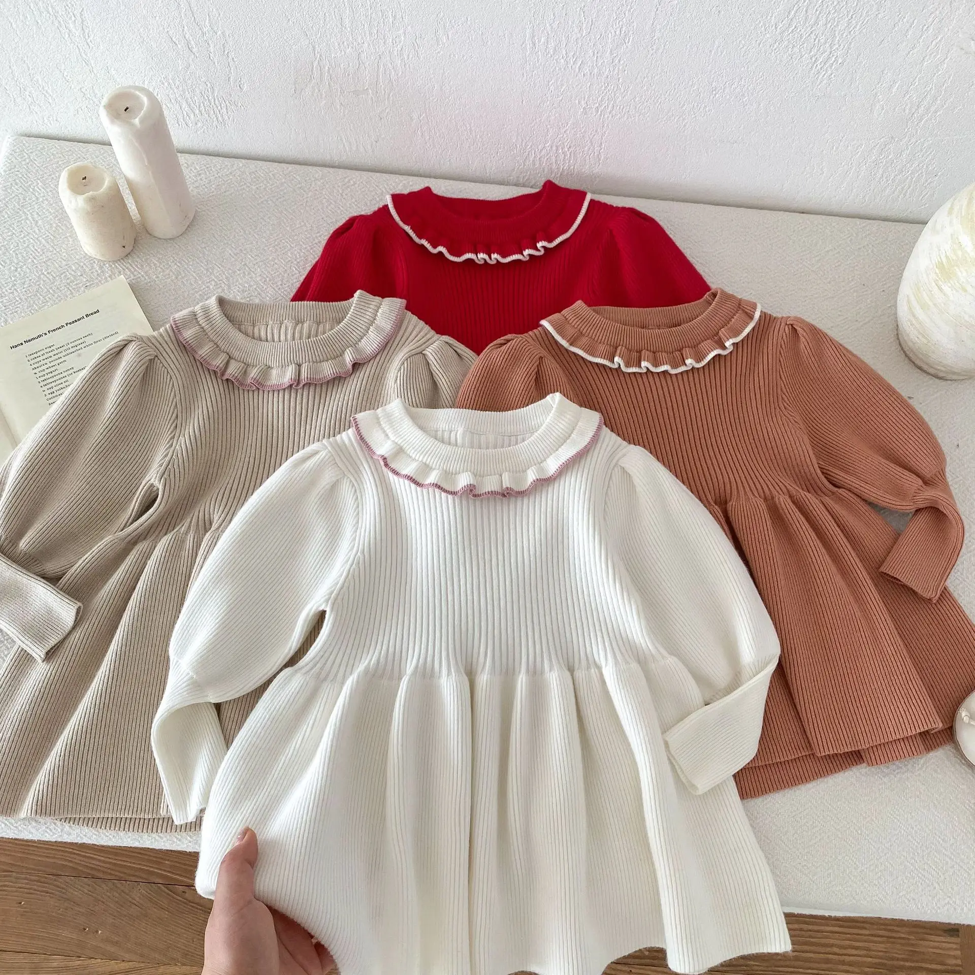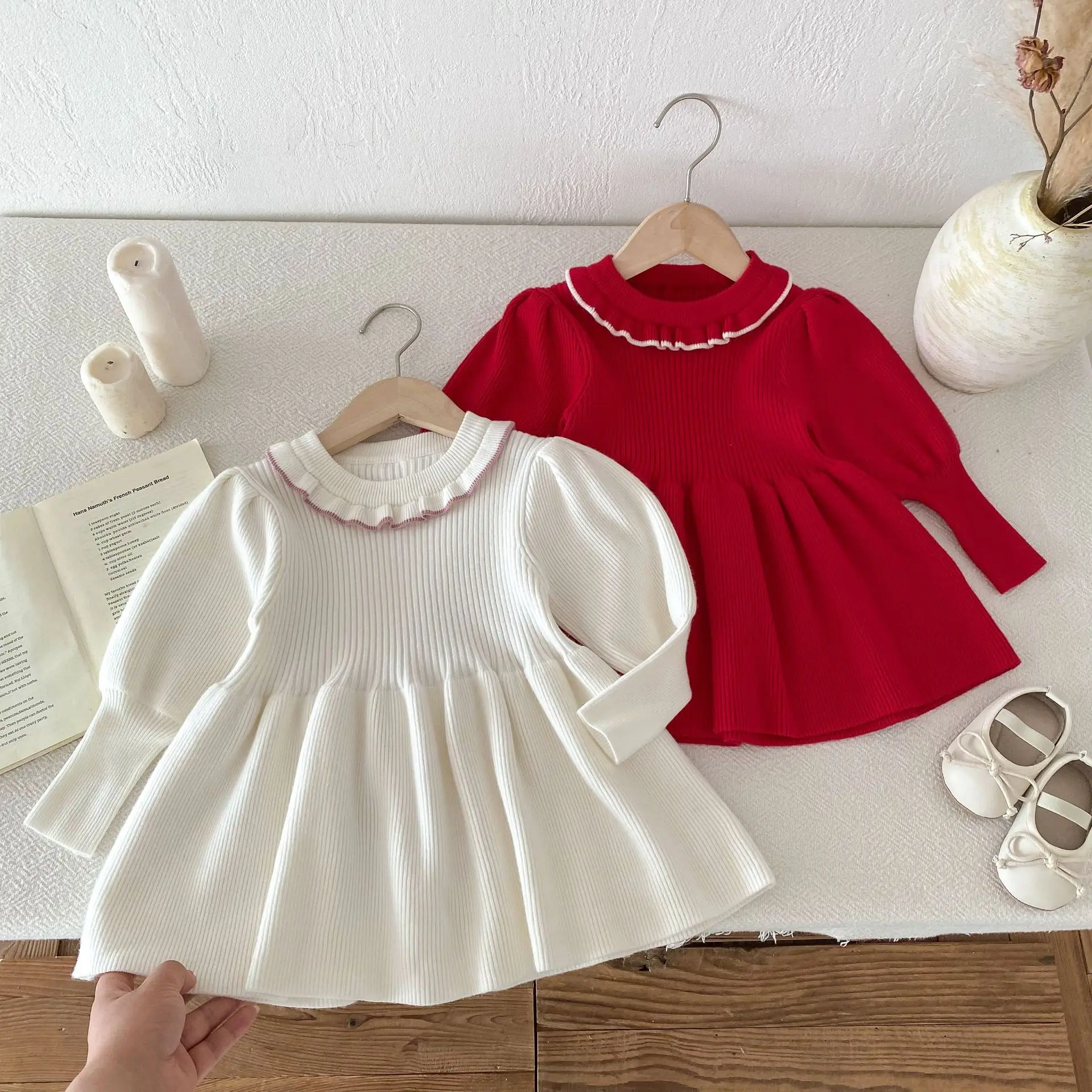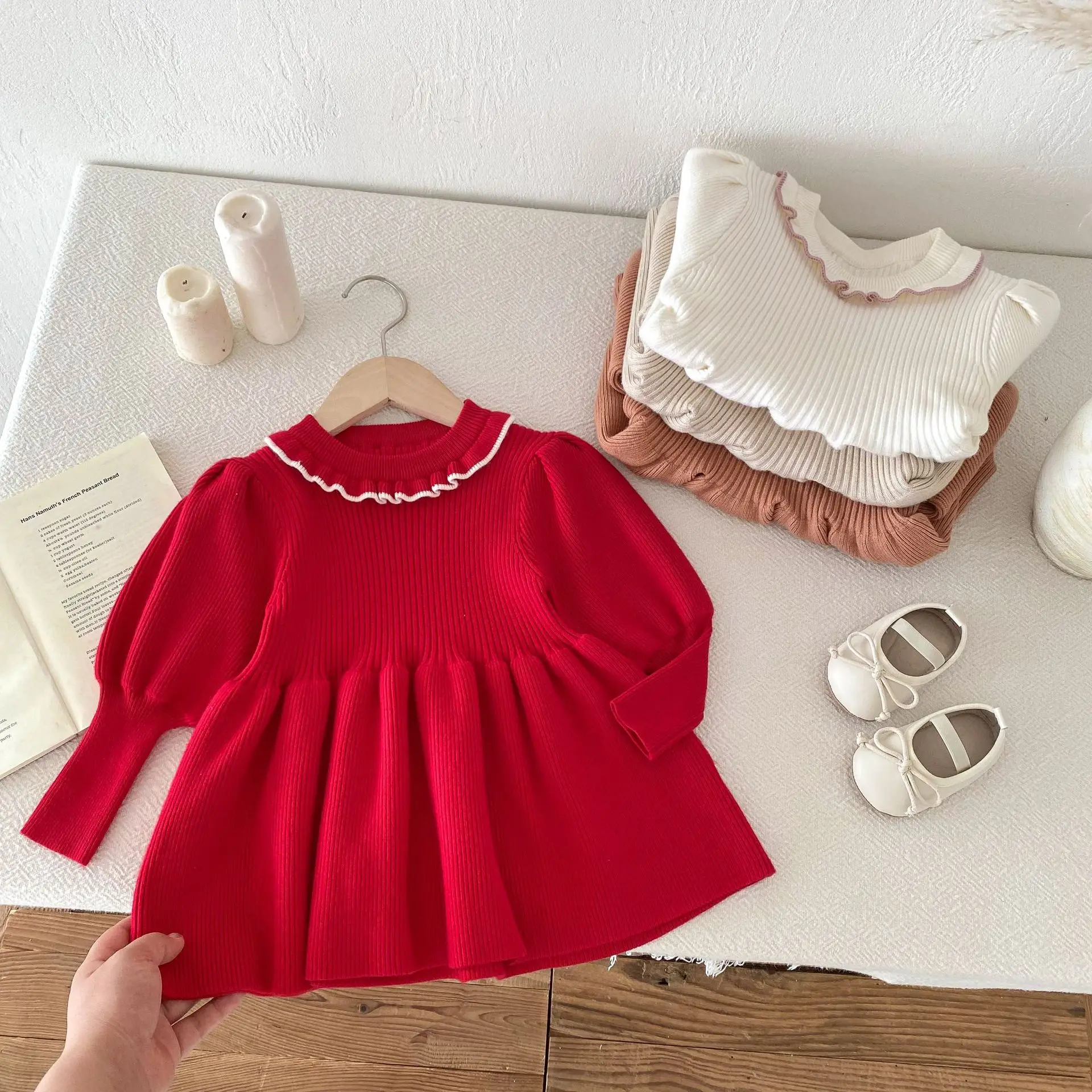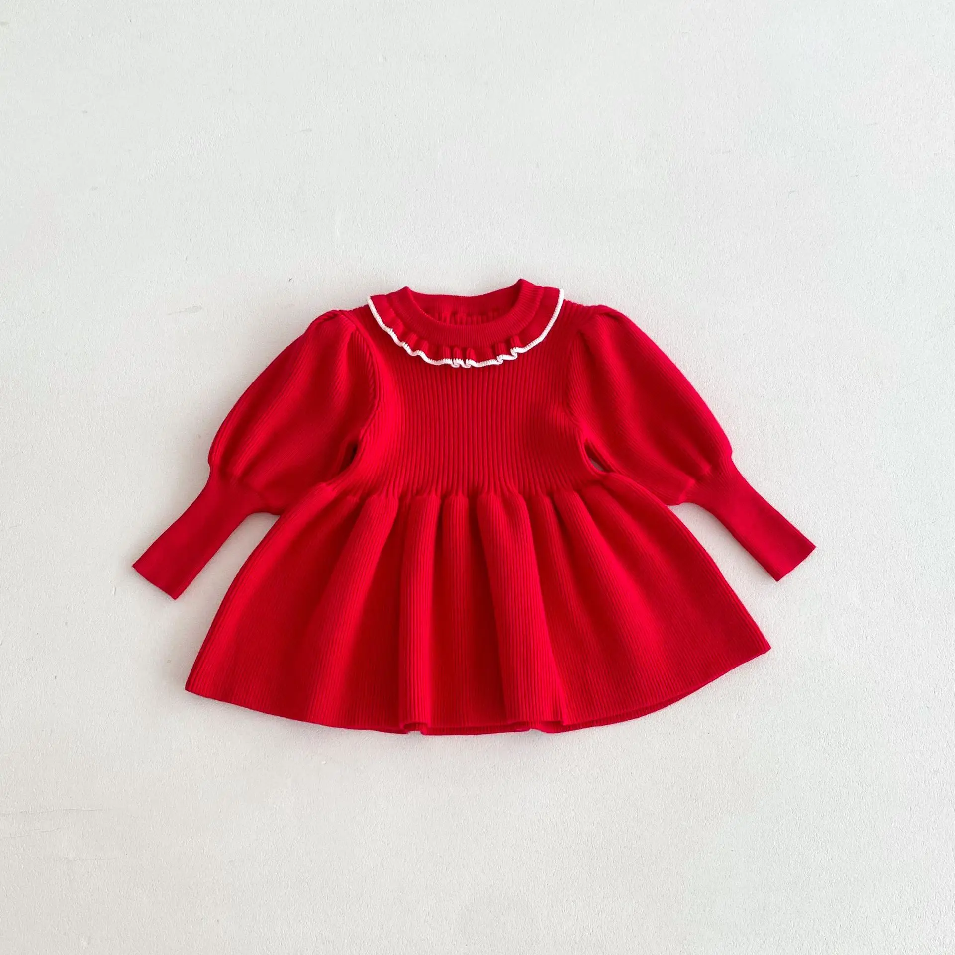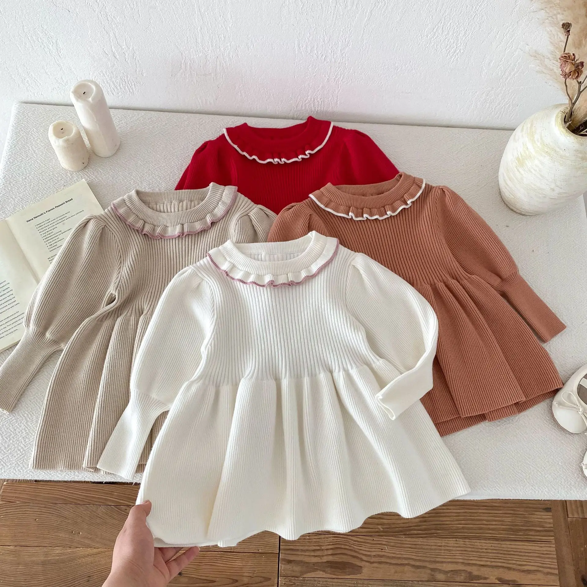 キッズワンピース ニット 長袖パフスリーブワンピース 4カラー【mh0006628】