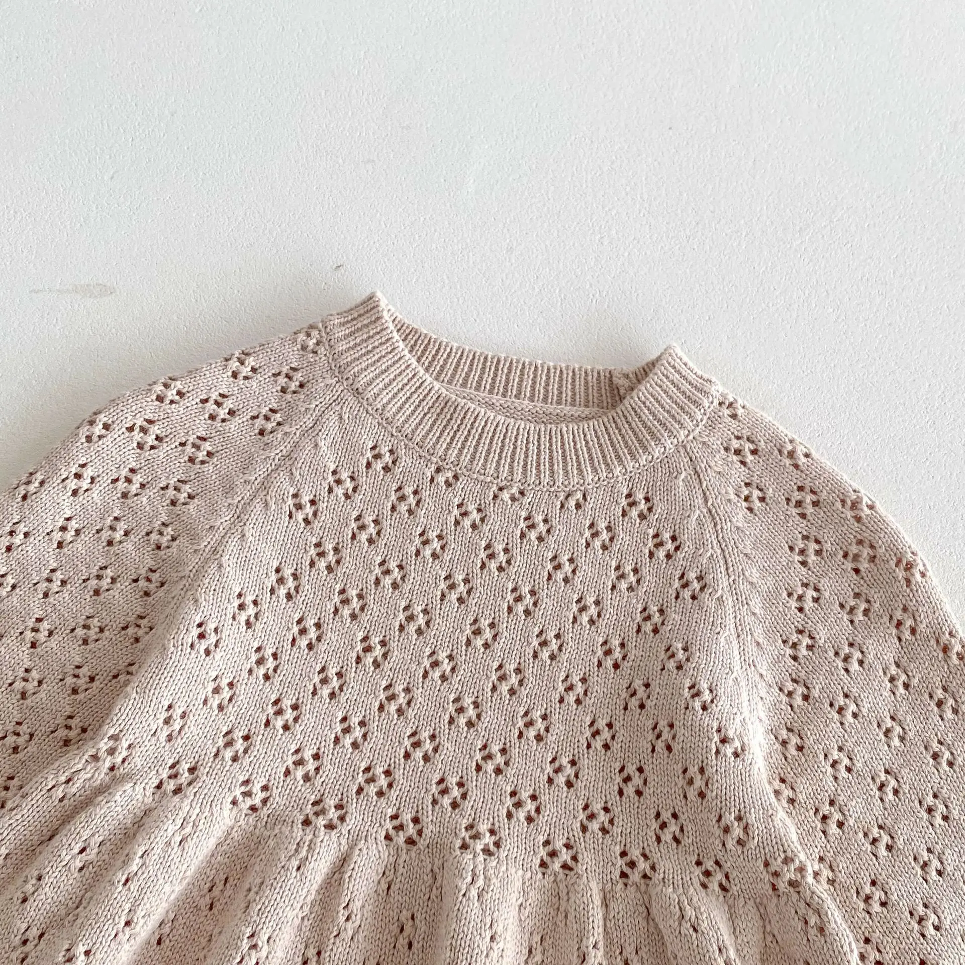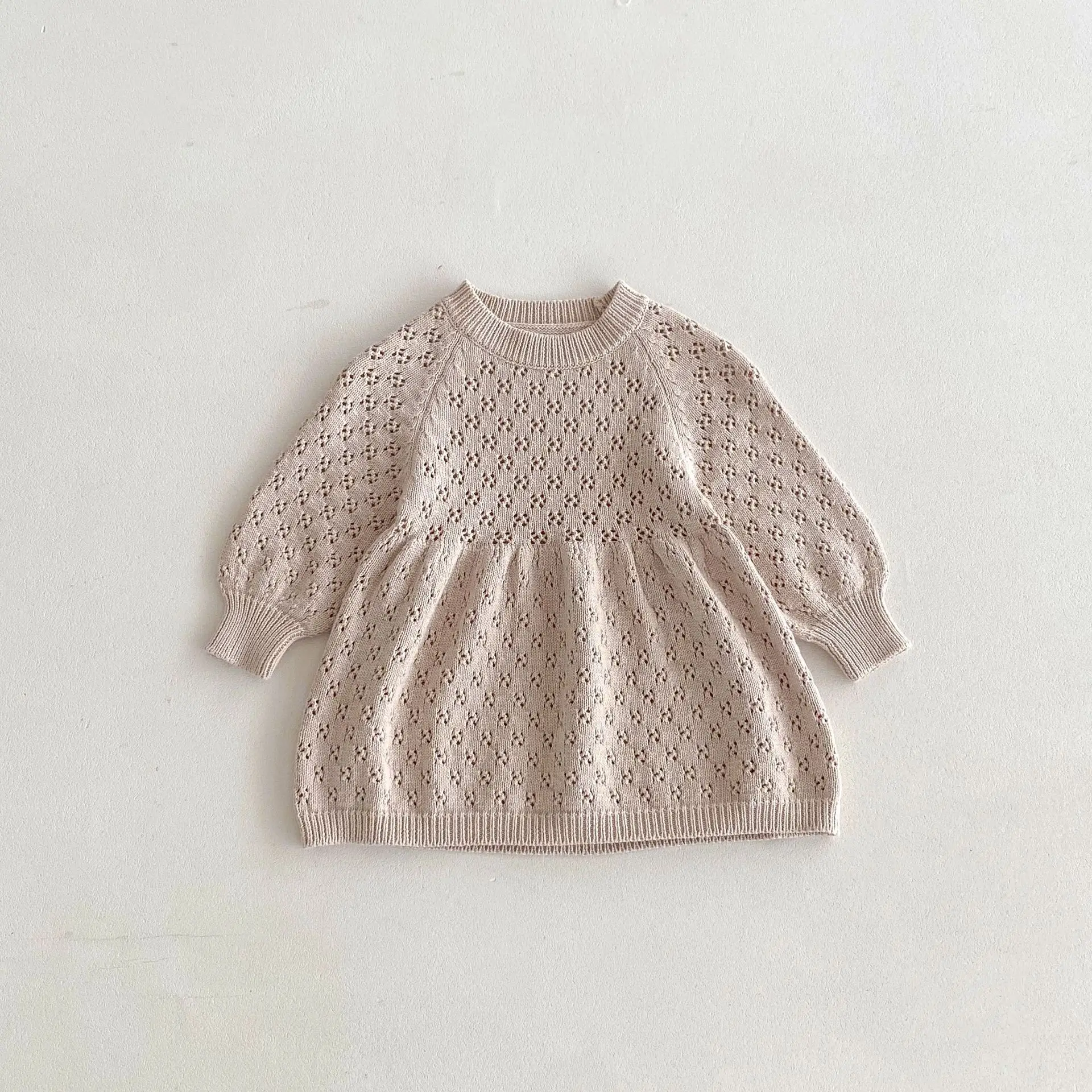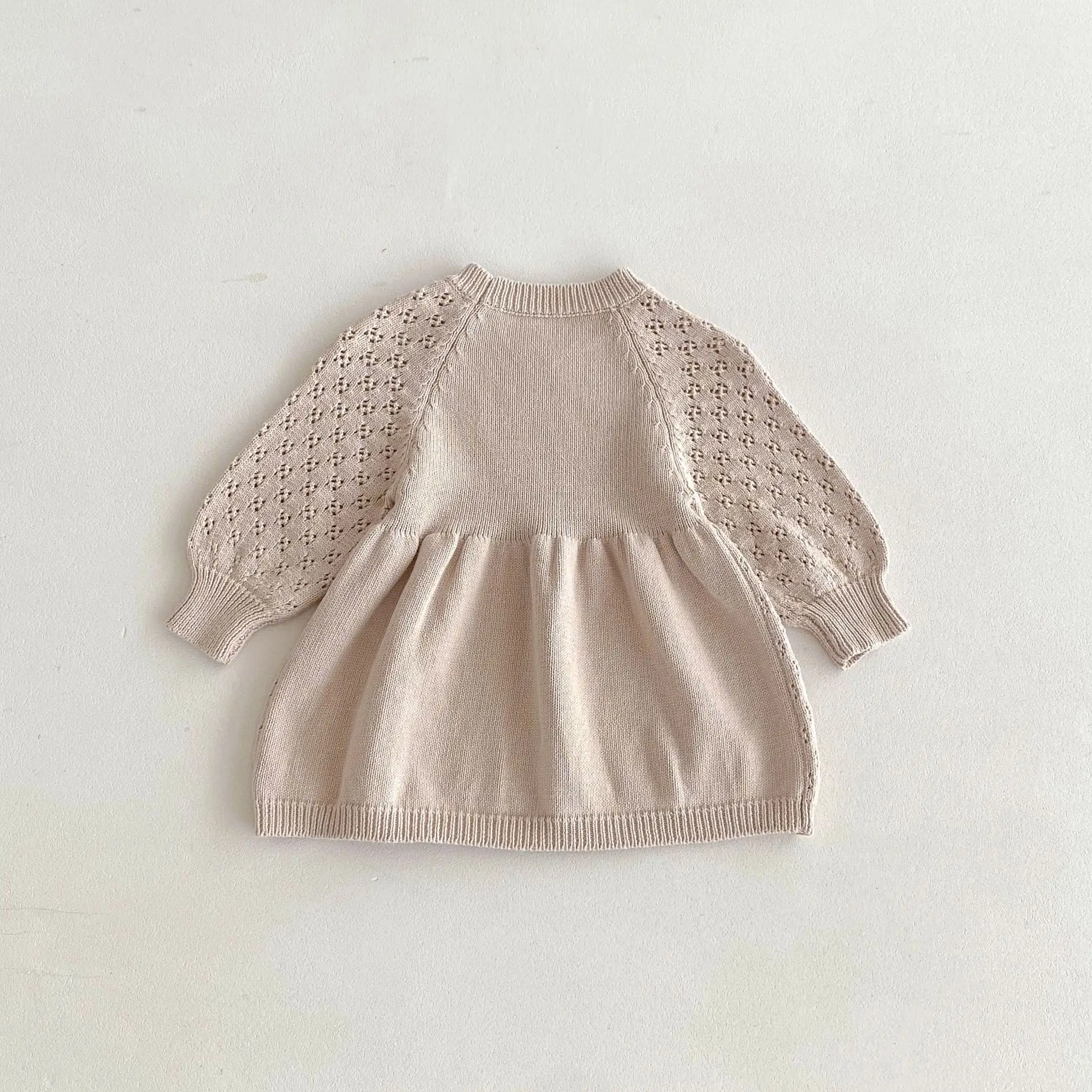 #キッズワンピース #レースニットワンピース #ヴィンテージスタイル #パフスリーブ #カーキ #子供服 #カジュアルスタイル