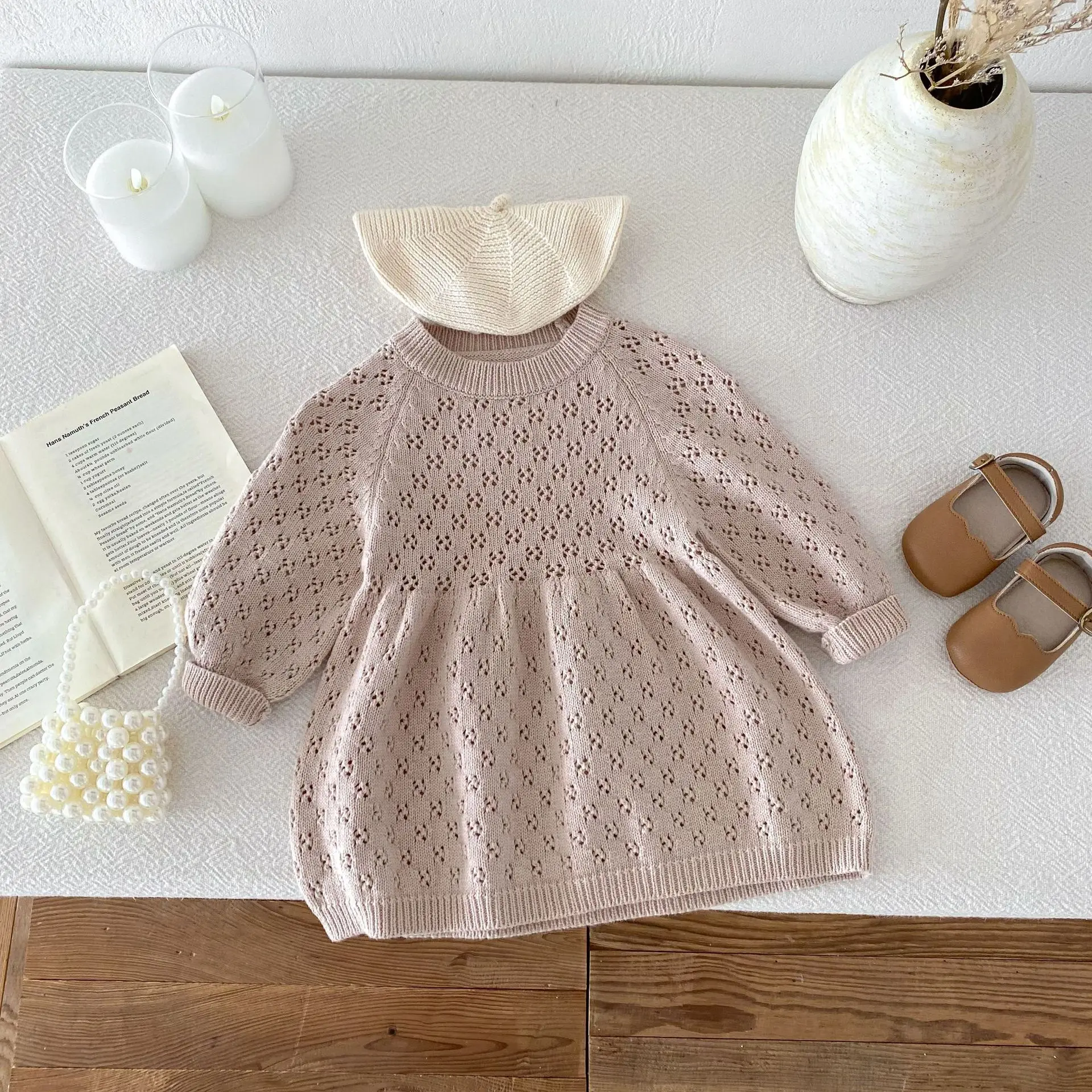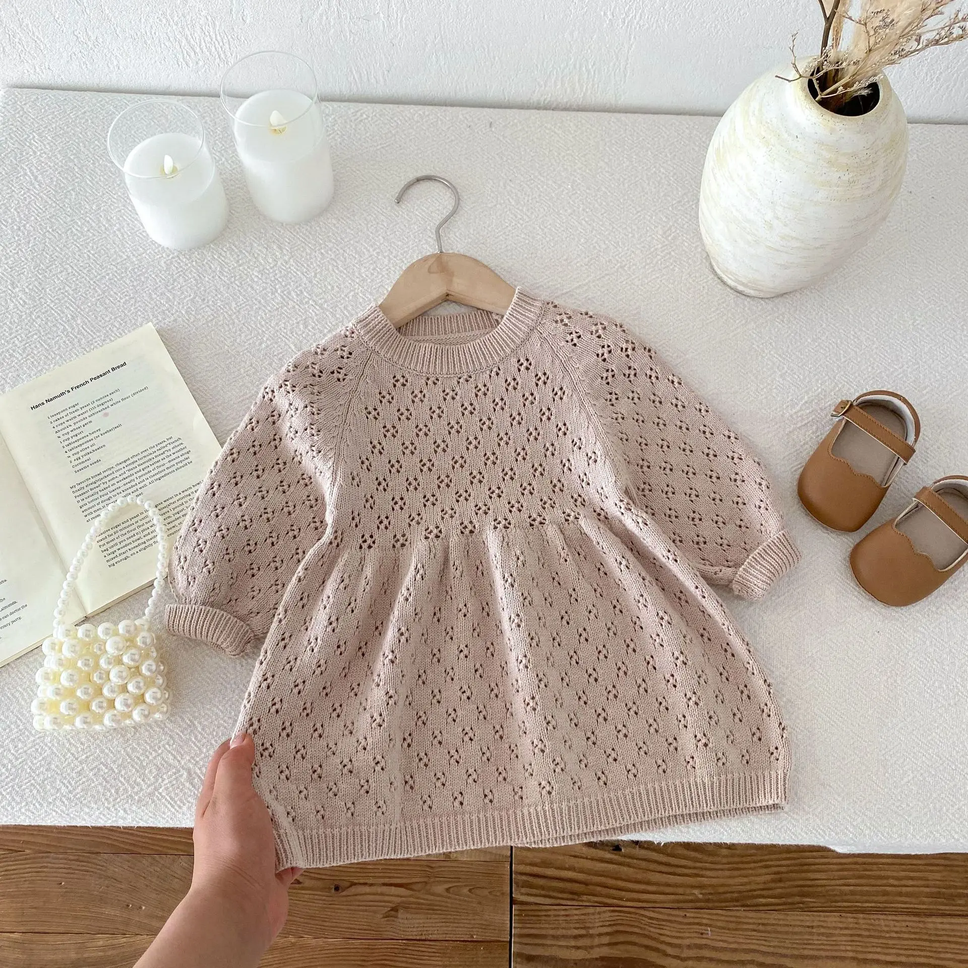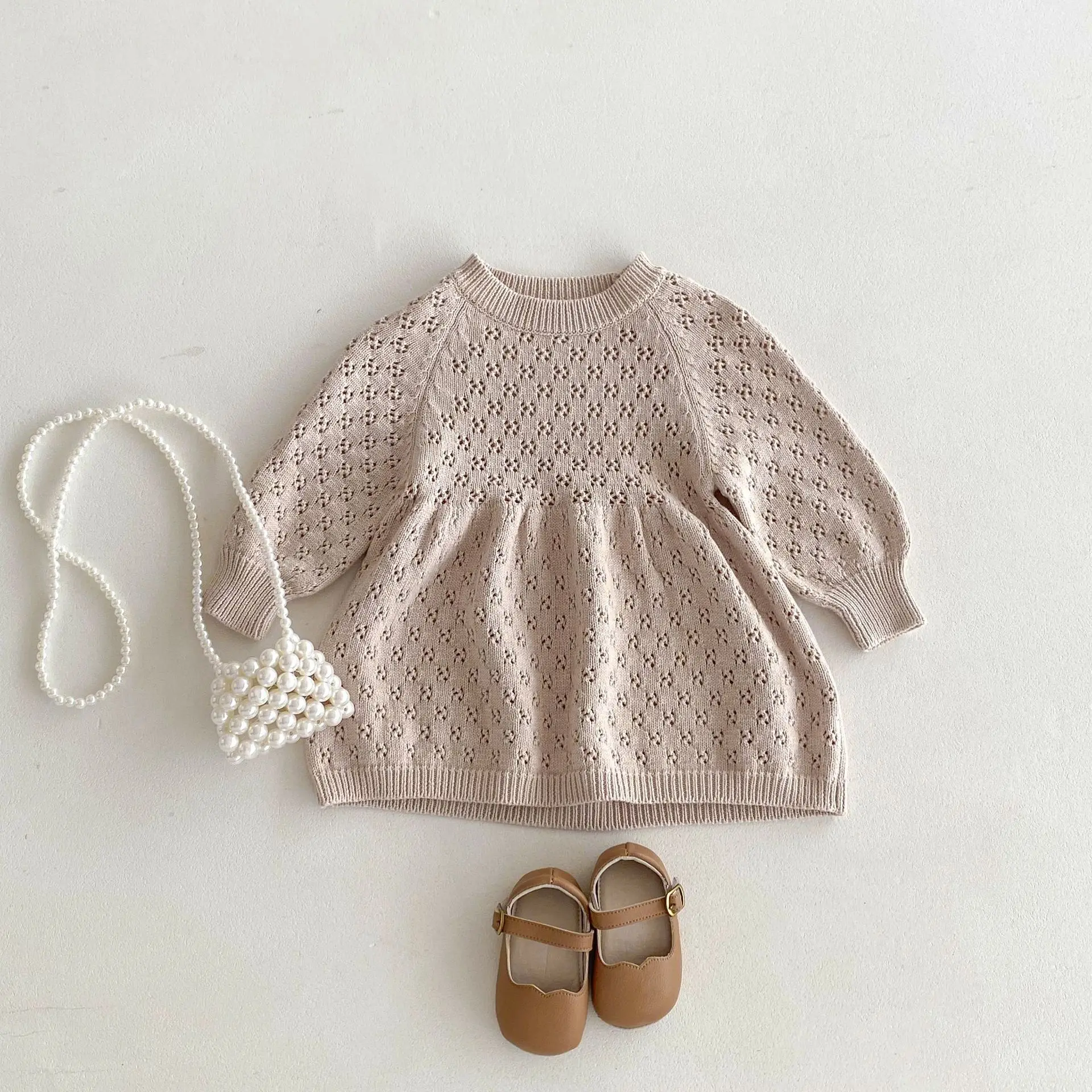 #キッズワンピース #レースニットワンピース #ヴィンテージスタイル #パフスリーブ #カーキ #子供服 #カジュアルスタイル