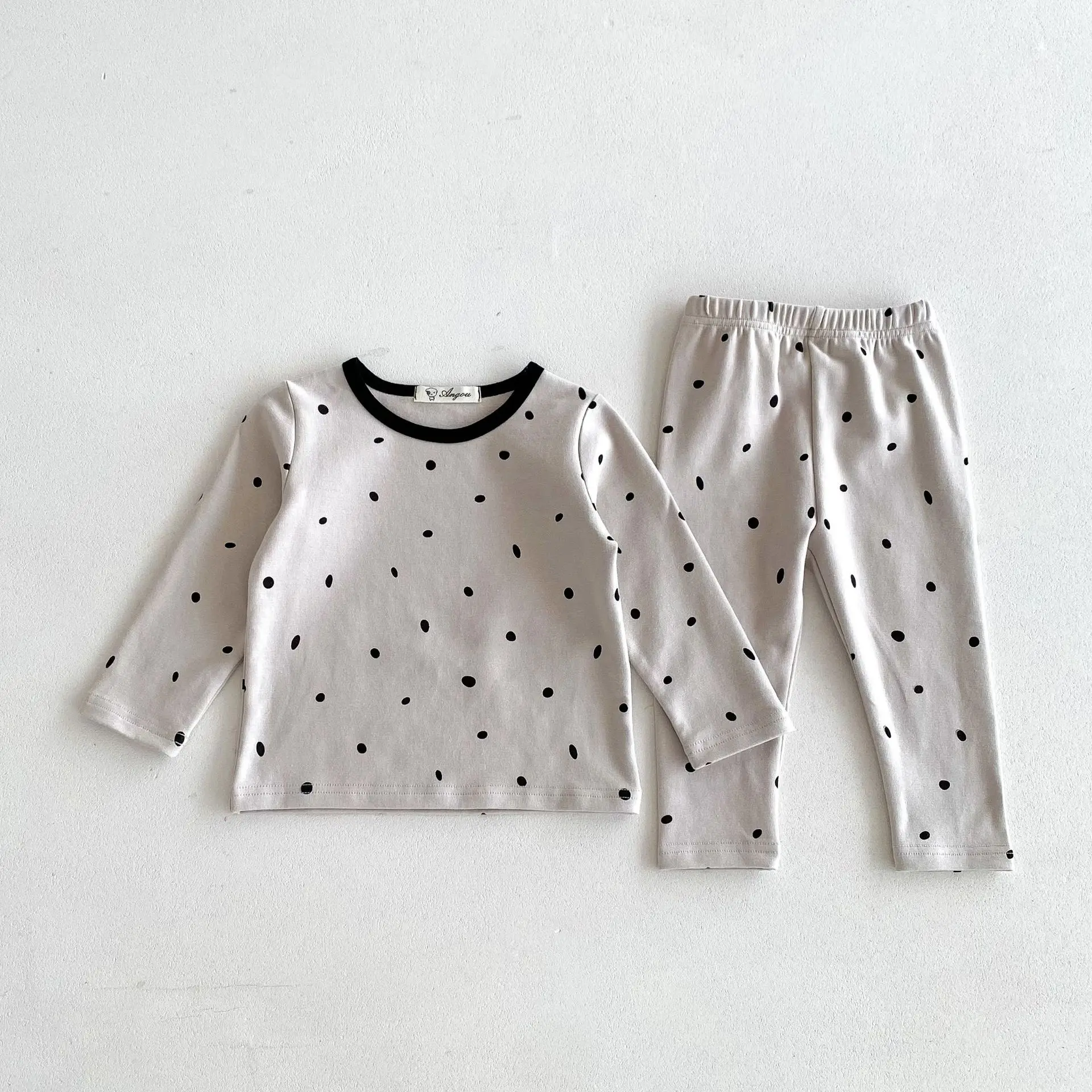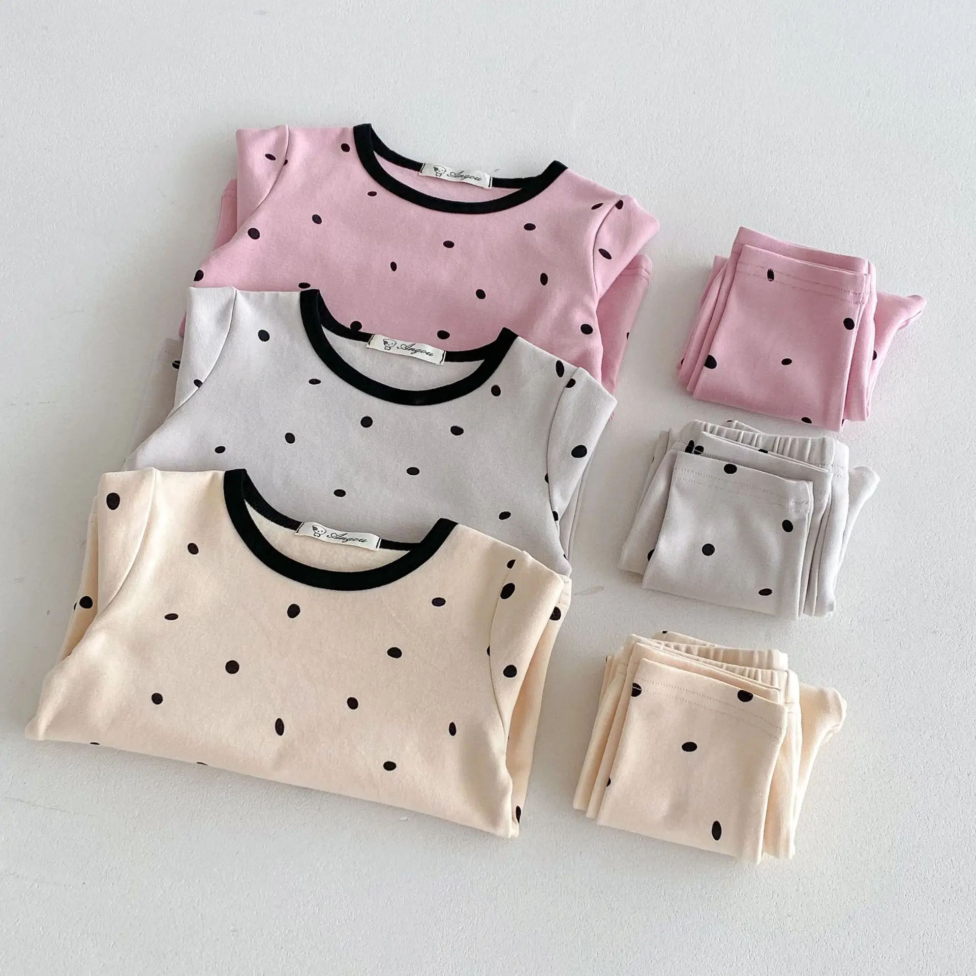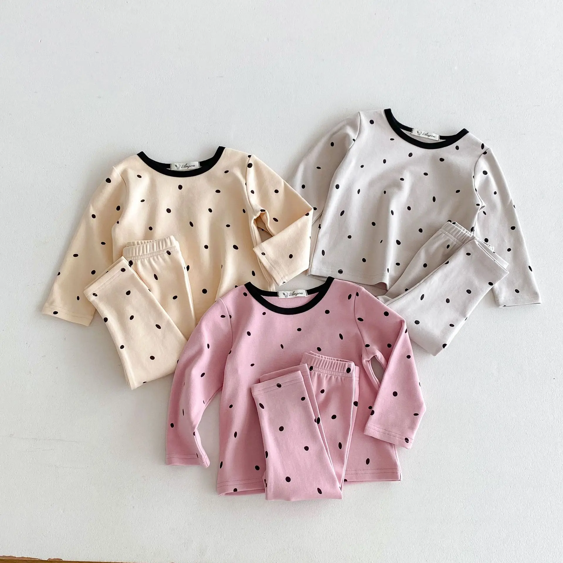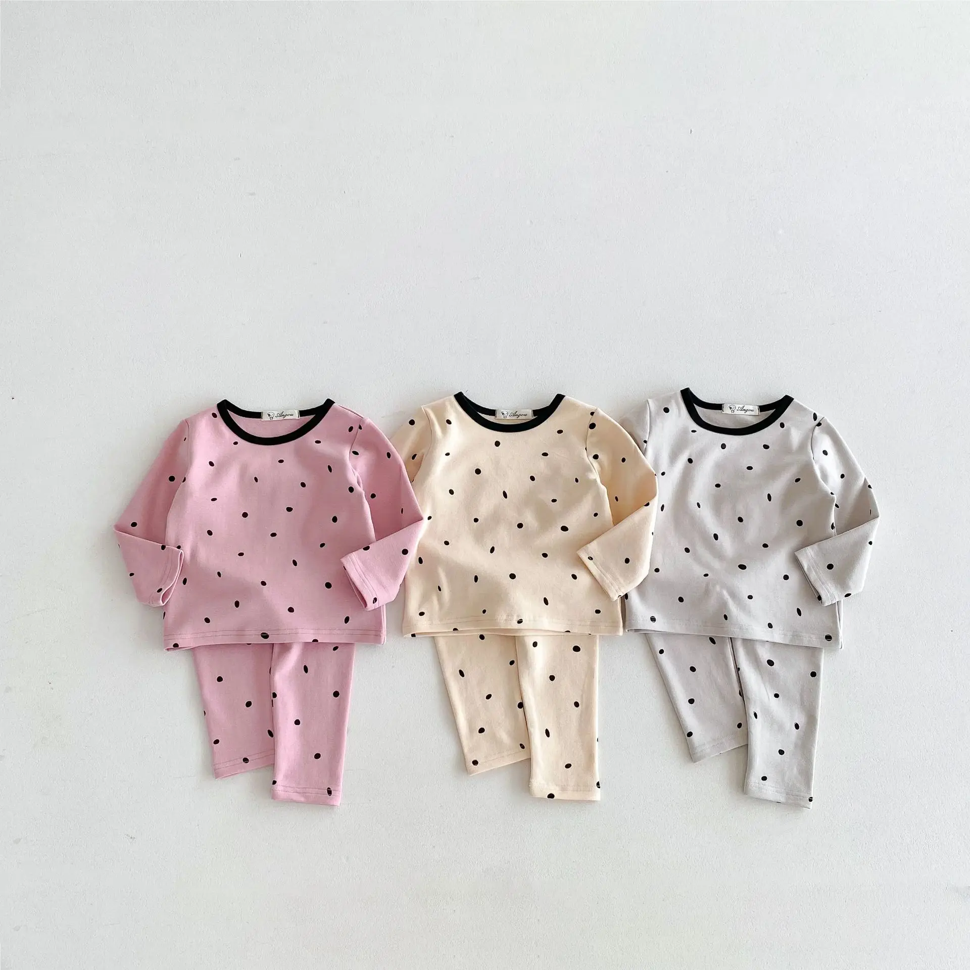 キッズパジャマセット 長袖Tシャツ+ロングパンツ 水玉ドットプリント ルームウェア 3カラー【mh0006647】