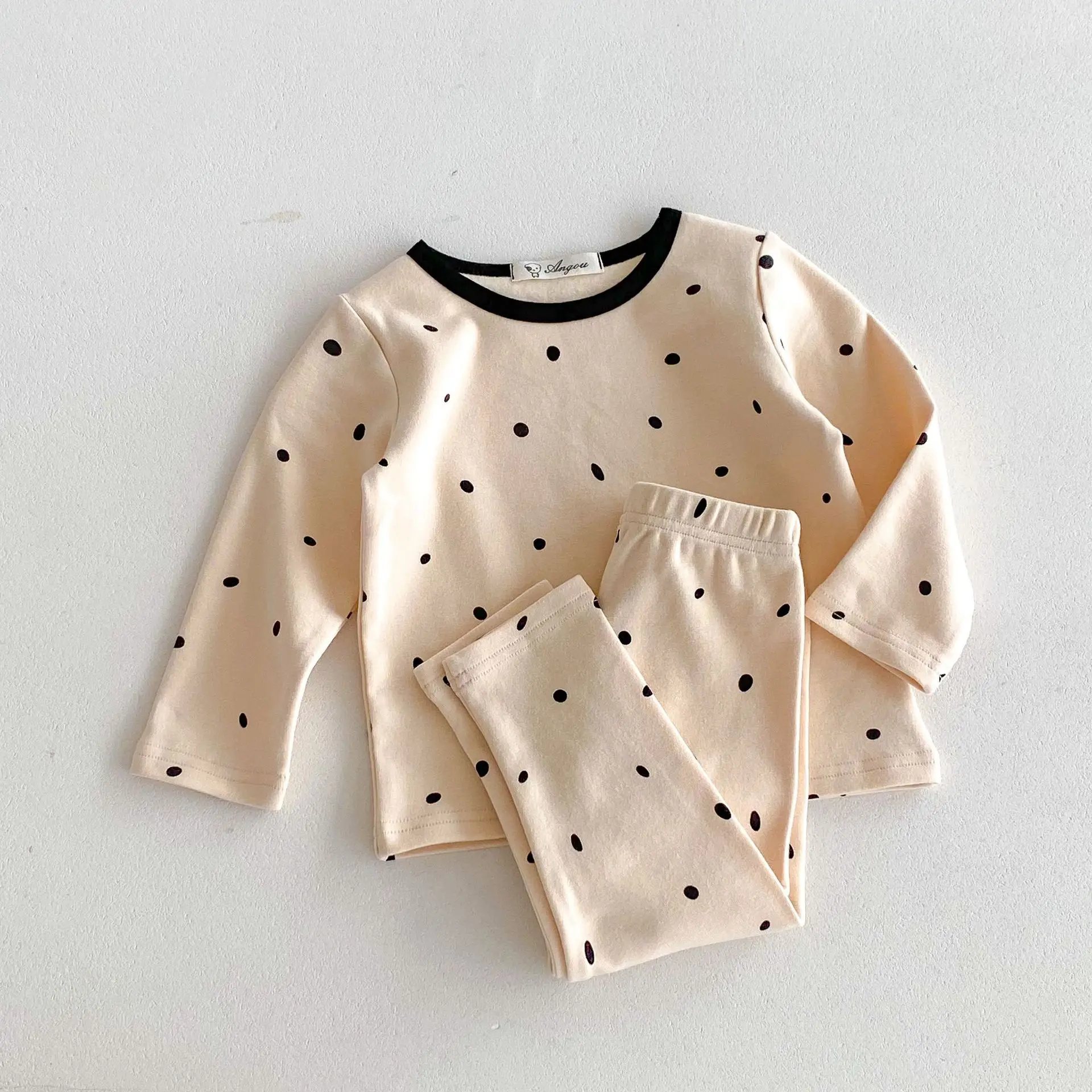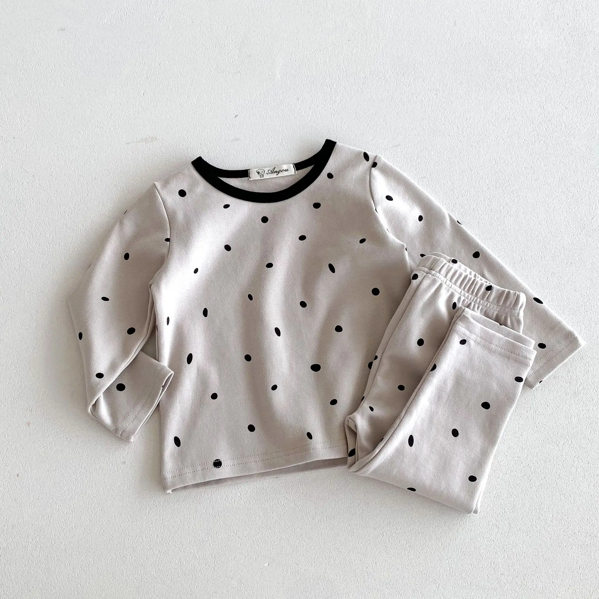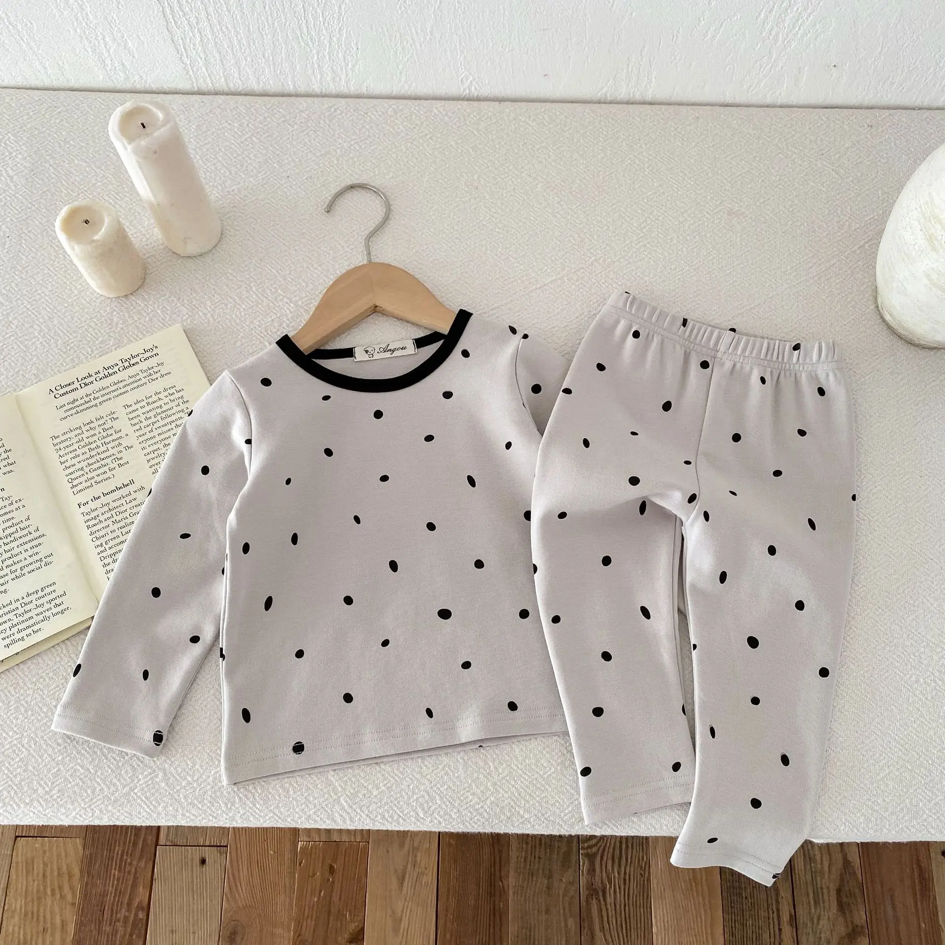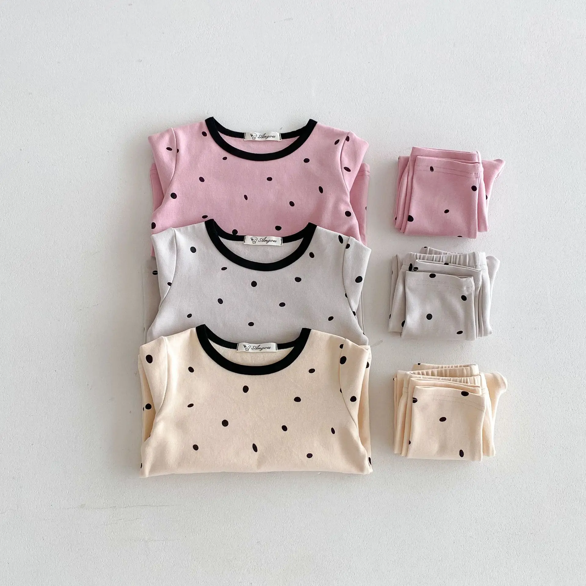 キッズパジャマセット 長袖Tシャツ+ロングパンツ 水玉ドットプリント ルームウェア 3カラー【mh0006647】