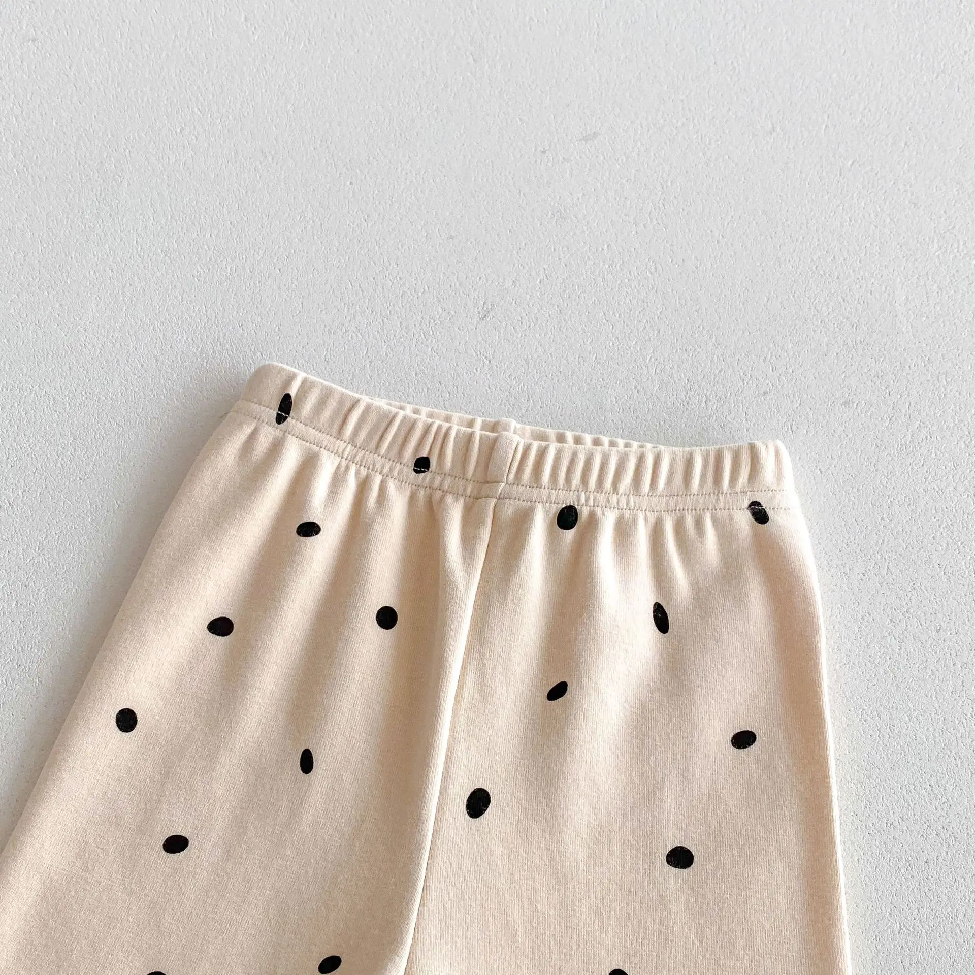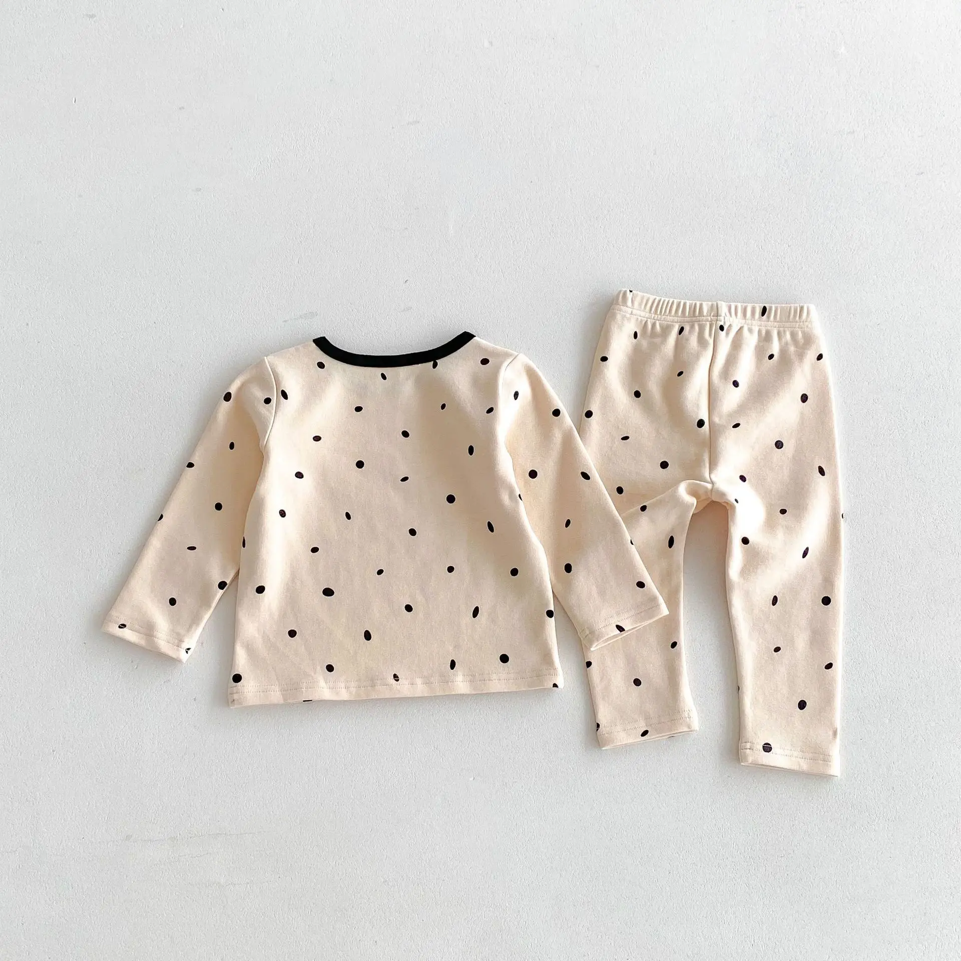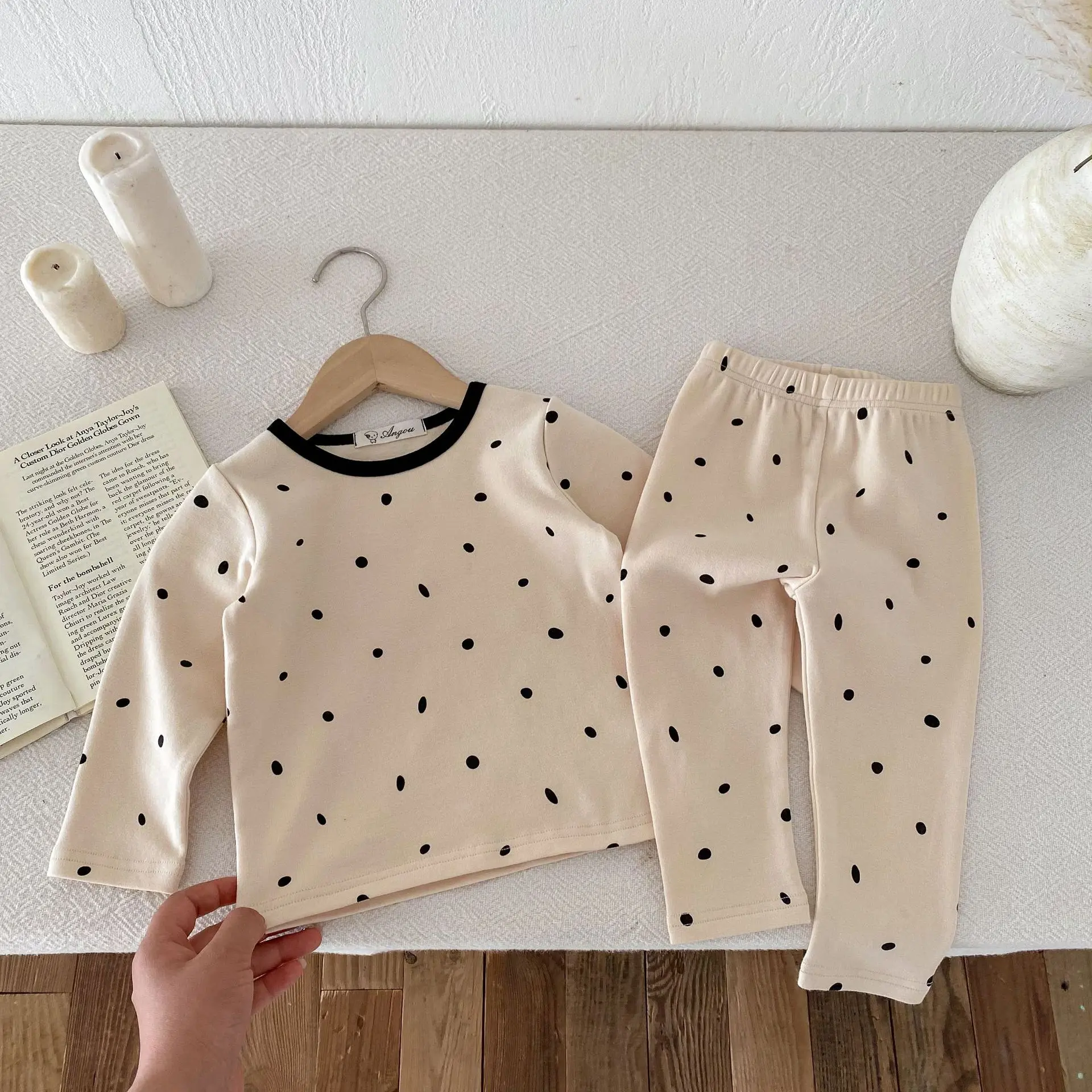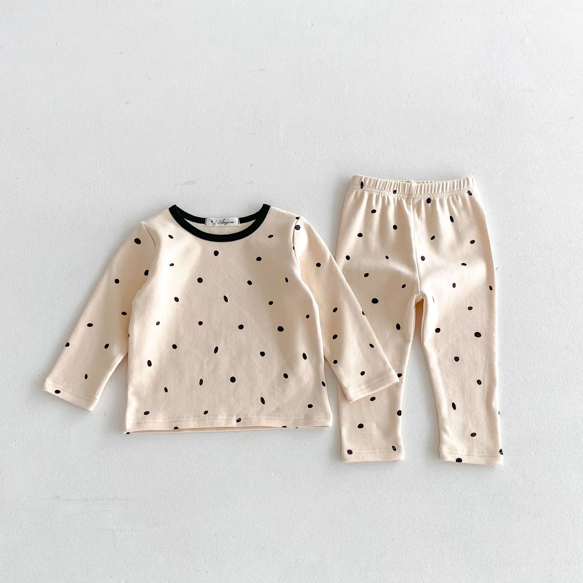 キッズパジャマセット 長袖Tシャツ+ロングパンツ 水玉ドットプリント ルームウェア 3カラー【mh0006647】
