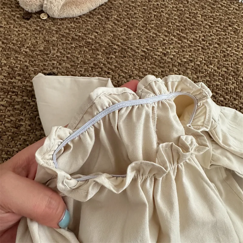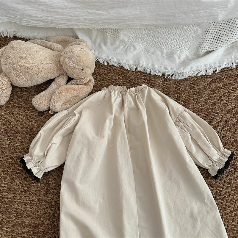 #キッズセットアップ #長袖ワンピース #フリルスタンドカラー #エプロンドレス #サイドリボン #エレガント #おしゃれ #お出かけコーデ