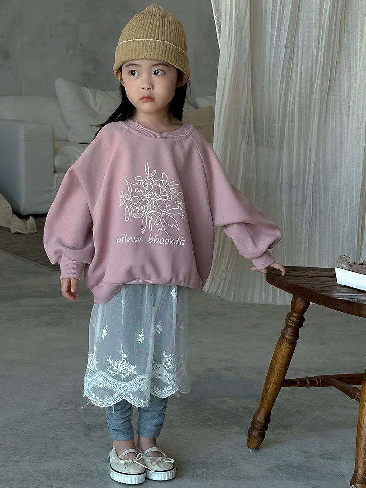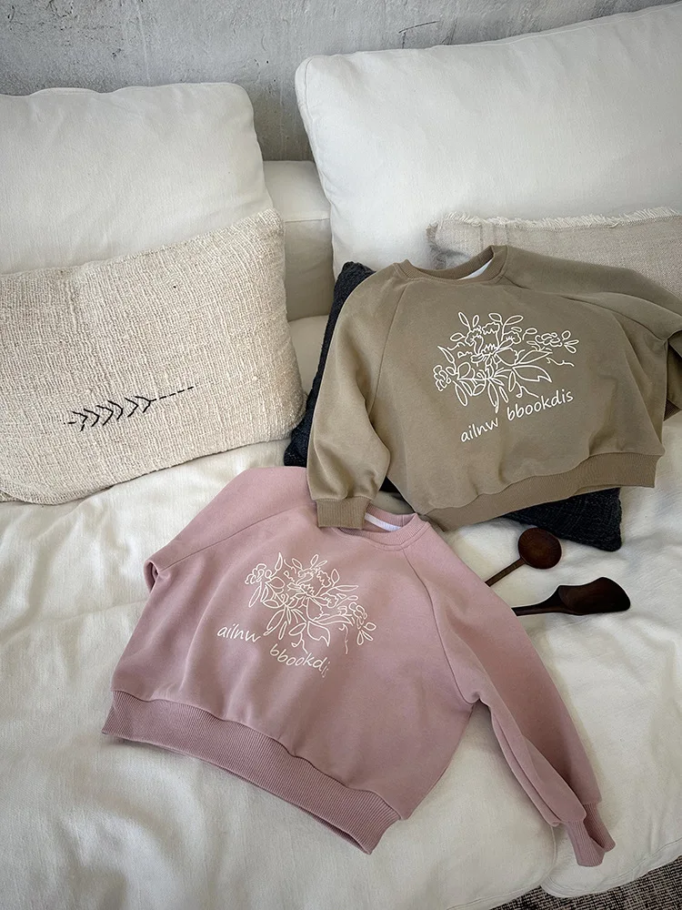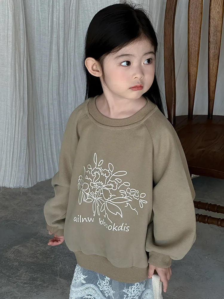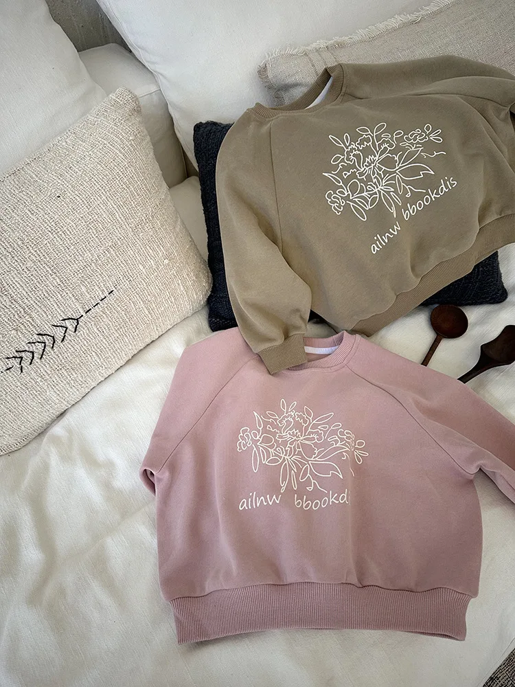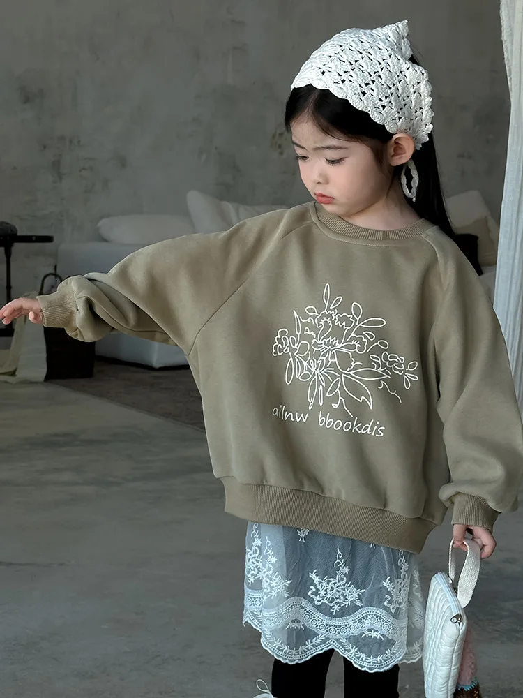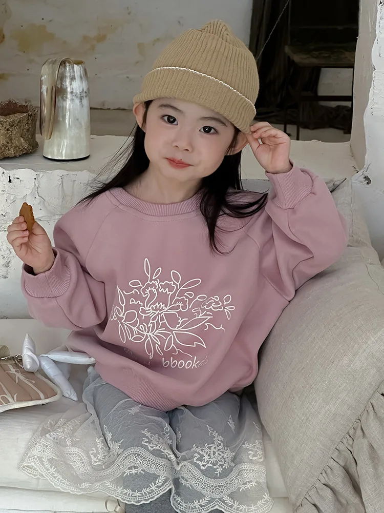 #キッズトップス #長袖スウェットシャツ #花柄プリント #カジュアルプルオーバー #コットン素材 #子供服